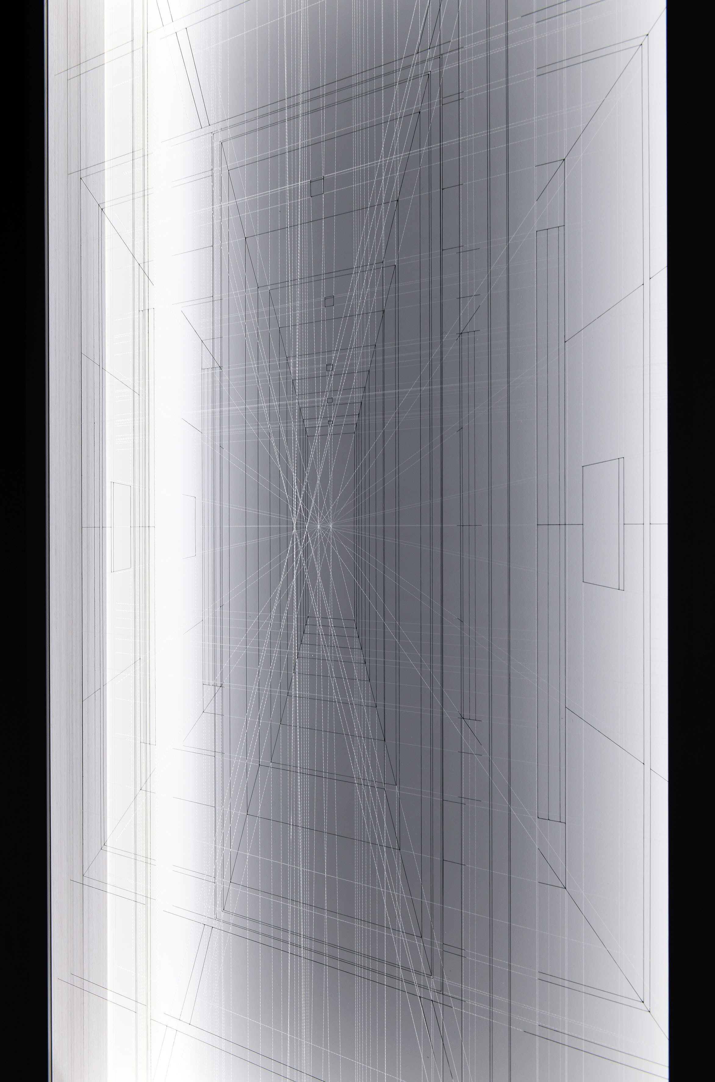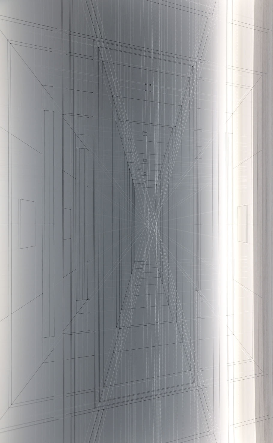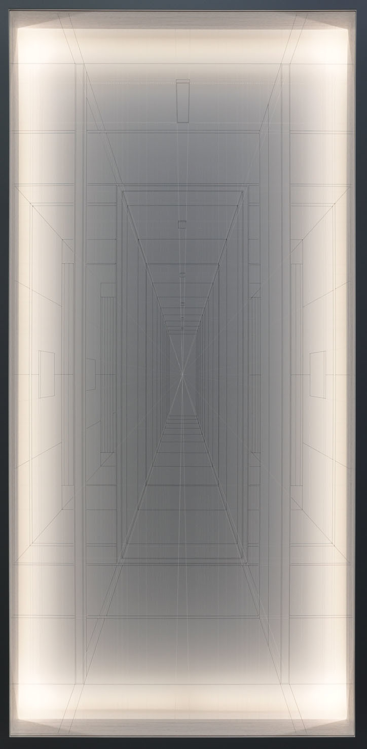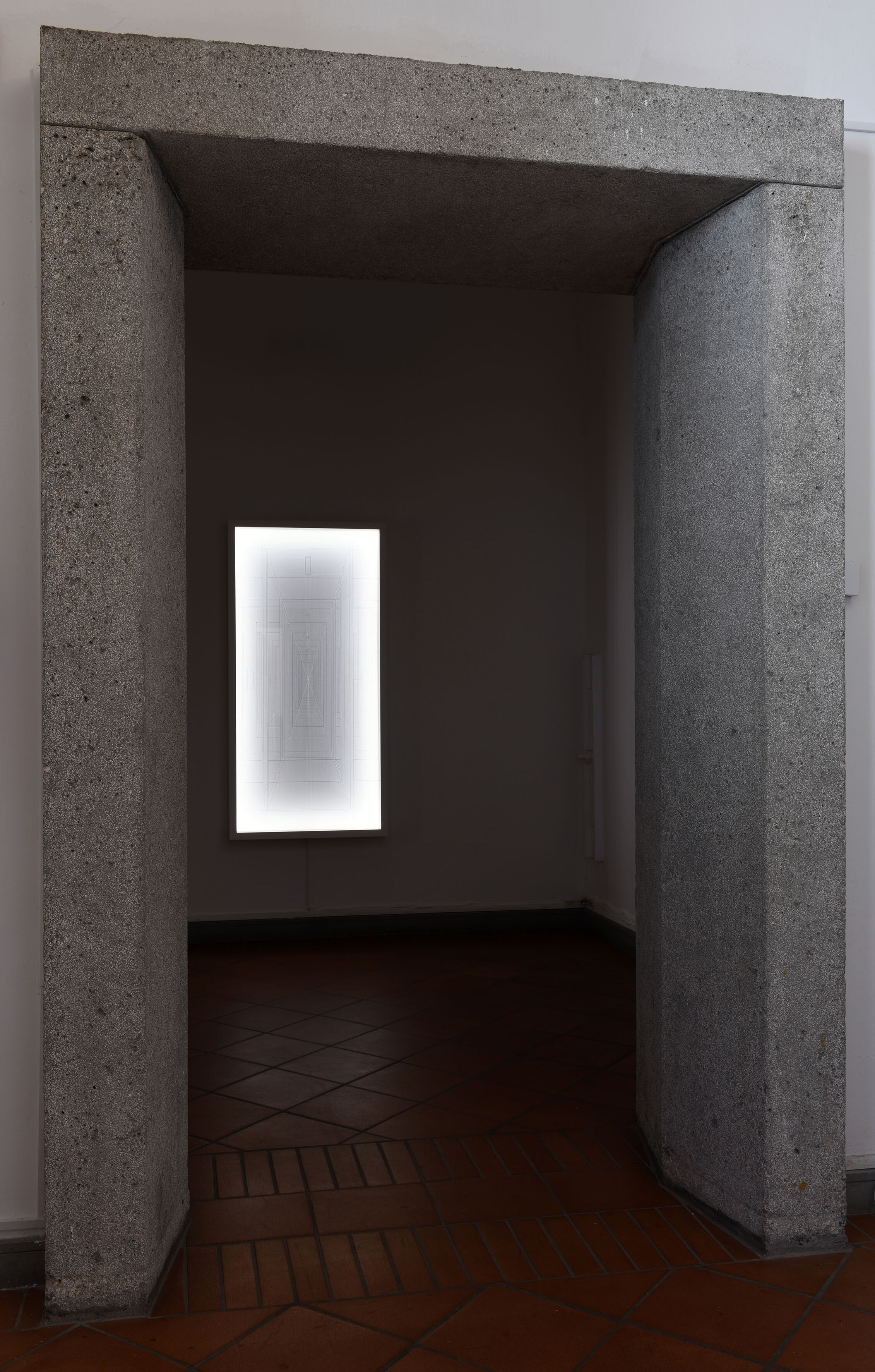 The art-work looks like a vision, a fluctuating, strongly, evanescent and impalpable spectrum. Here is our Ego, our identity. There, there is the Elsewhere, the unfathomable. A window or a door opens, a gap or a crack opens on something new that we don't know what exactly is: a chasm, an abyss. But yet, this perspective that leads to an unattainable fund, seems to refer to ourselves. The awareness of what we are then staggers. Light clarifies an area of our mind or our imagination that we would never have expected. Light and darkness. In the middle there is the Limen, or liminal space, as a waiting and meditation line of demarcation, an oscillation between two extremes. It can lead us to new knowledge.