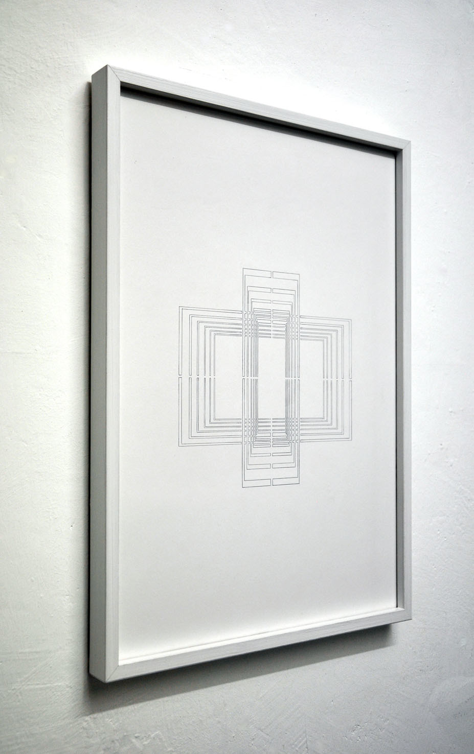 punta d'argento su carta Canson 360 gr preparata con acrilico, cornice in legno laccato bianco, vetro museale