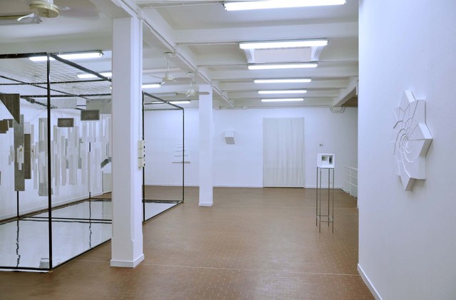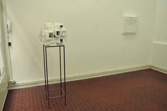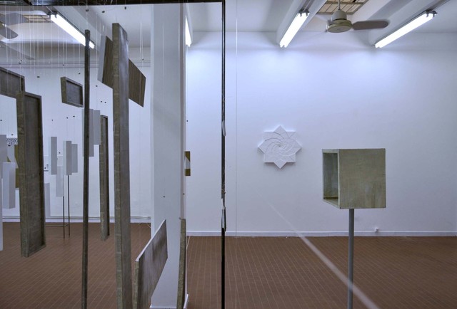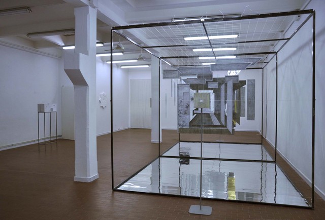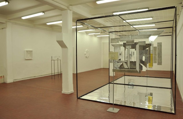 Se nelle proporzioni algebriche e nelle sezioni auree è inscritto un messaggio metafisico, il modo in cui queste si sviluppano, in un’impalcatura di materie dimesse e leggere, in costruzioni fragili e aleatorie, ci trasmettono questo messaggio come sgravato e sdrammatizzato, in un fremere di griglie e reticoli, scale e diaframmi: aleph in cui urge lo spazio cosmico, siepi d’infinito, soglie della mente, tutto significato in un intelligent design di tessere di cartoncino.