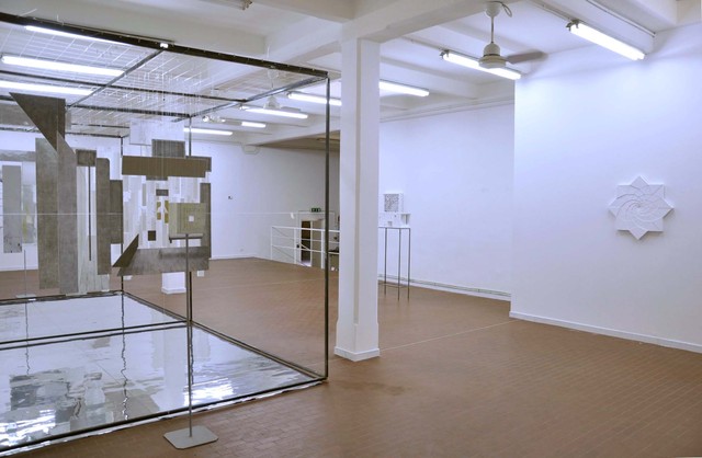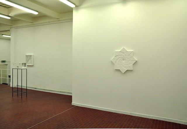 Così, se prende spunto dalle reviviscenza di credenze creazioniste che interpretano l’idea di una perfezione matematica in modo letterale e dogmatico, come quel fenomeno divulgatosi negli Stati Uniti sotto il nome Intelligent Design (dicitura che queste forme ironicamente riecheggiano) il lavoro di Cavinato appare casomai più in linea con i ripetuti tentativi di quel Dieu bricoleur ipotizzato nel seicento dai giansenisti. In questa dialettica tra tracce d’assoluto e trame di precarietà il discorso resta aperto, le superfici postulano uno sguardo profondo e al contempo erratico, ci addentriamo nella prefigurazione dell’assoluto in punta di piedi, scorrendo a balzi leggeri lungo le immacolate superfici di questi alveari di poligoni, in questi teatri in cui l’occhio ora si affonda e smarrisce, ora si libra e si allevia.