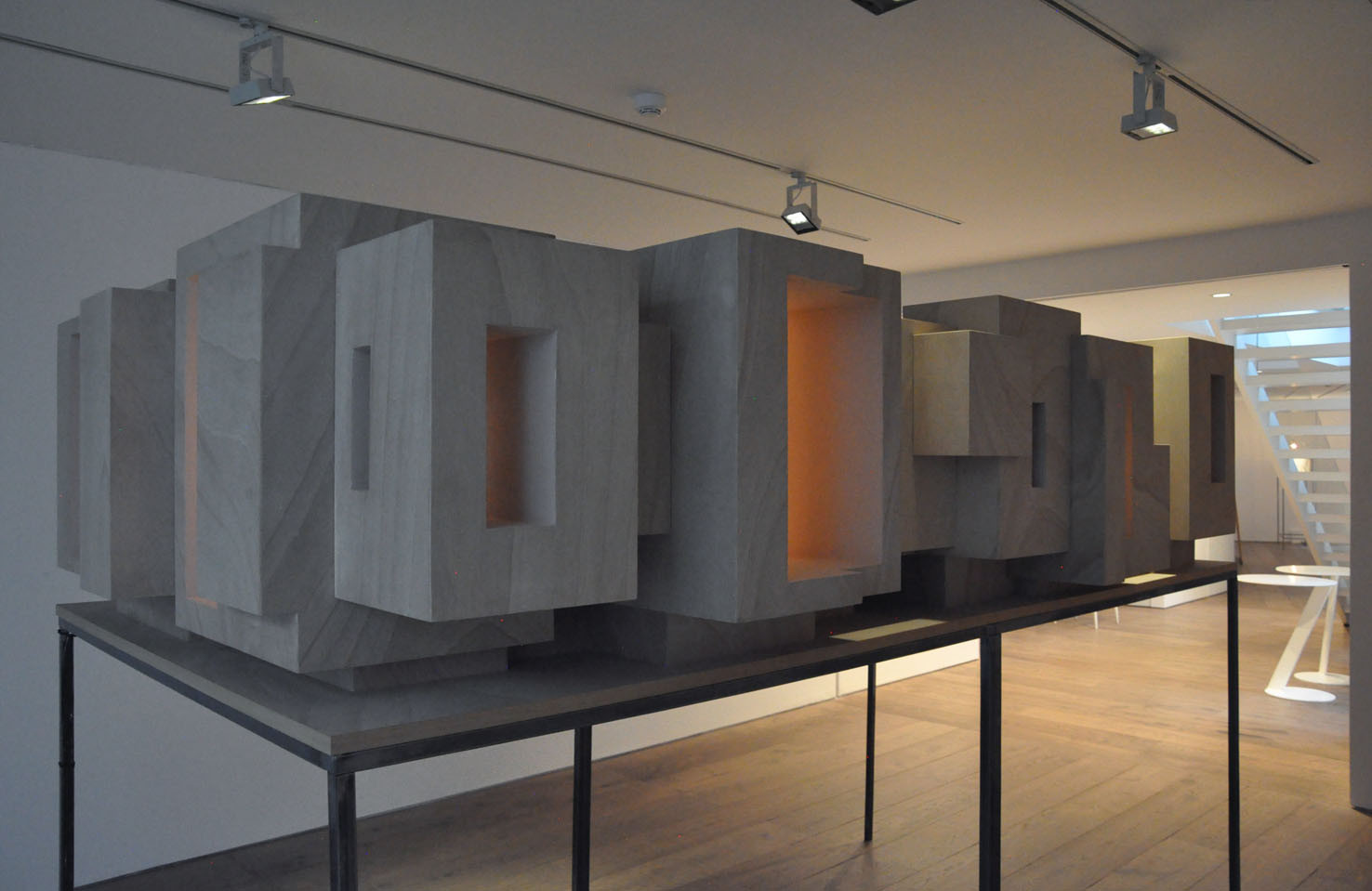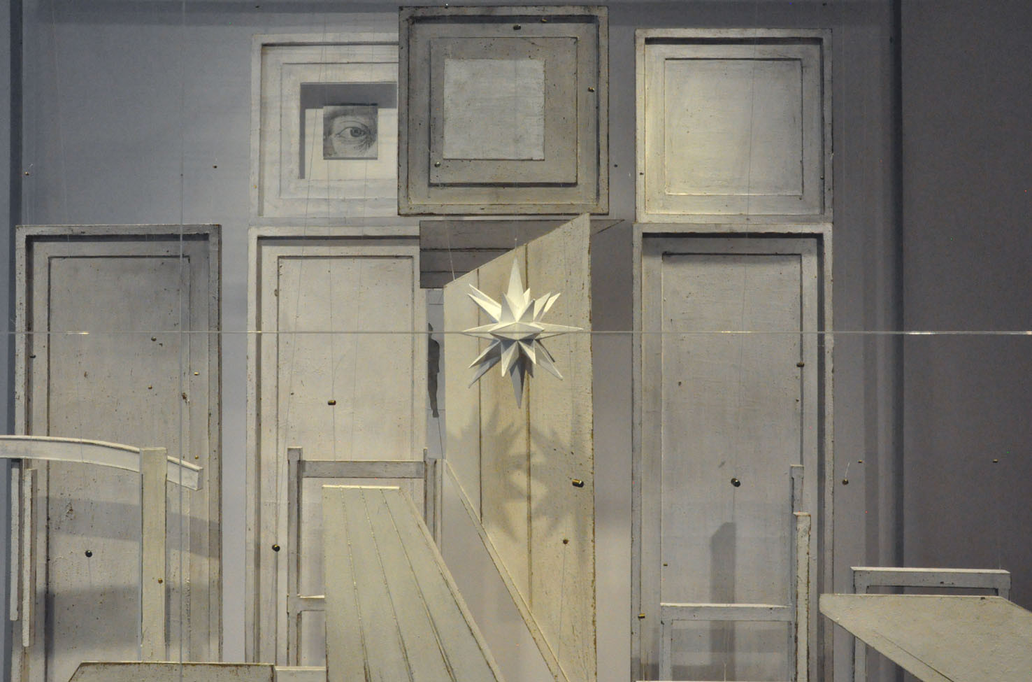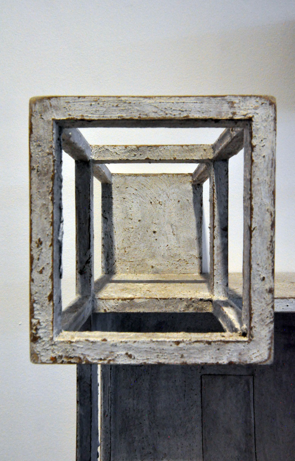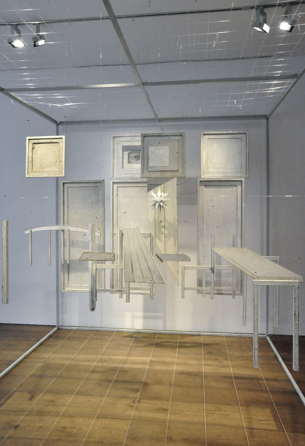 The piece Hands, a large 6 meter wall installation, is a further exploration of the Berlin based piece Icona (2010), a sound and visual installation, which featured in our Memory: Contemporary International Sculpture exhibition in 2011. To quote Paolo Cavinato’s own description, ‘The ‘universe’ I have created features many cells of varying sizes, boxes, architectural spaces and rooms, which recall both Medieval Art, Old Master Paintings (Giotto, Maso di Banco and Simone Martini), Italian Metaphysical Art, geometry, Platonic solids and Alchemy’. Memory and evocation are in a continual dialogue; each individual detail exists on its own terms but is also an integral part of the greater whole.
