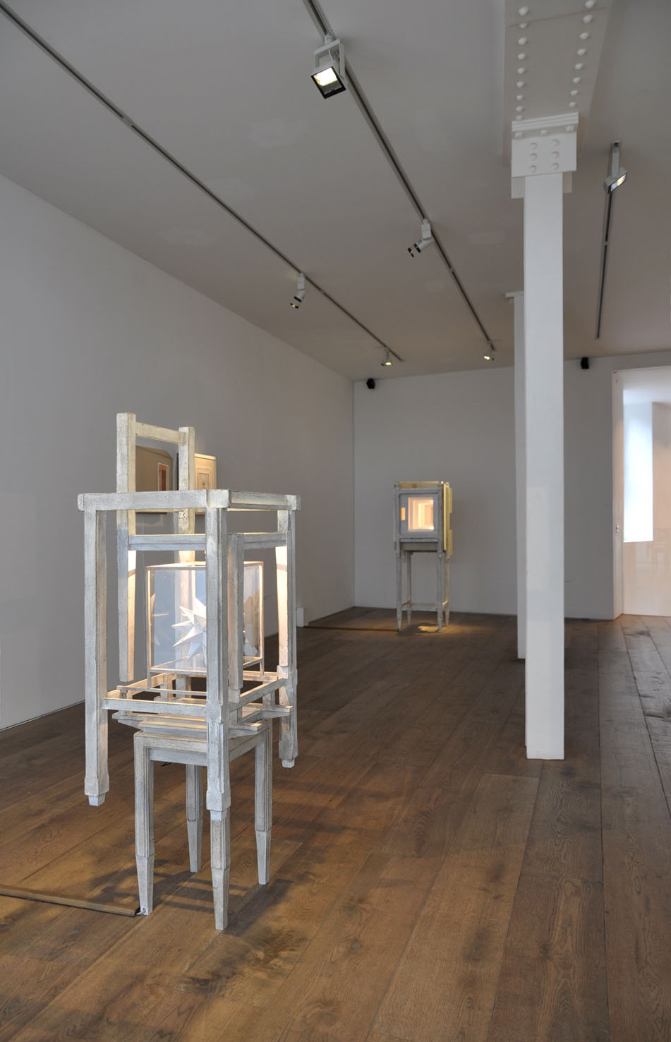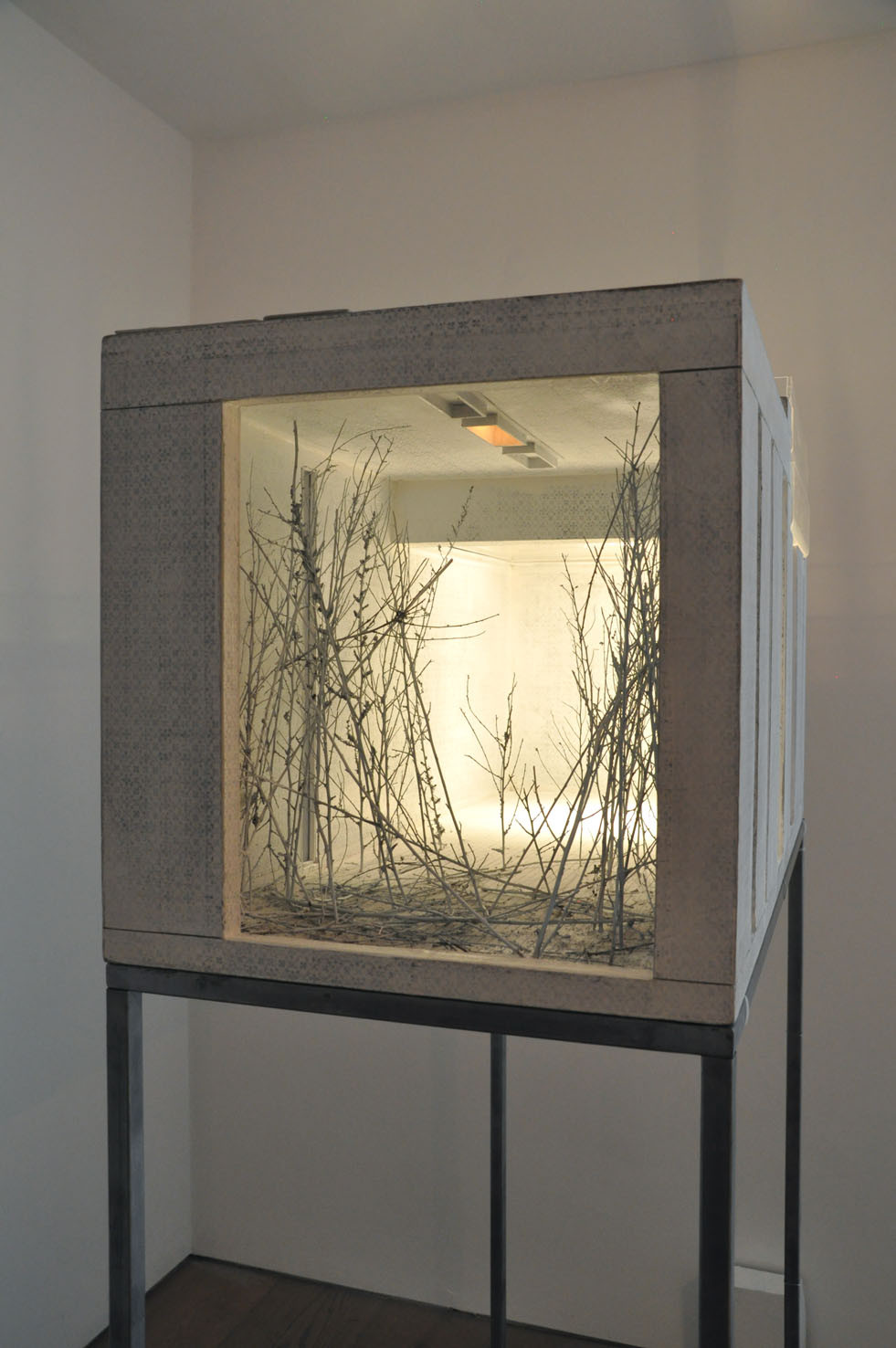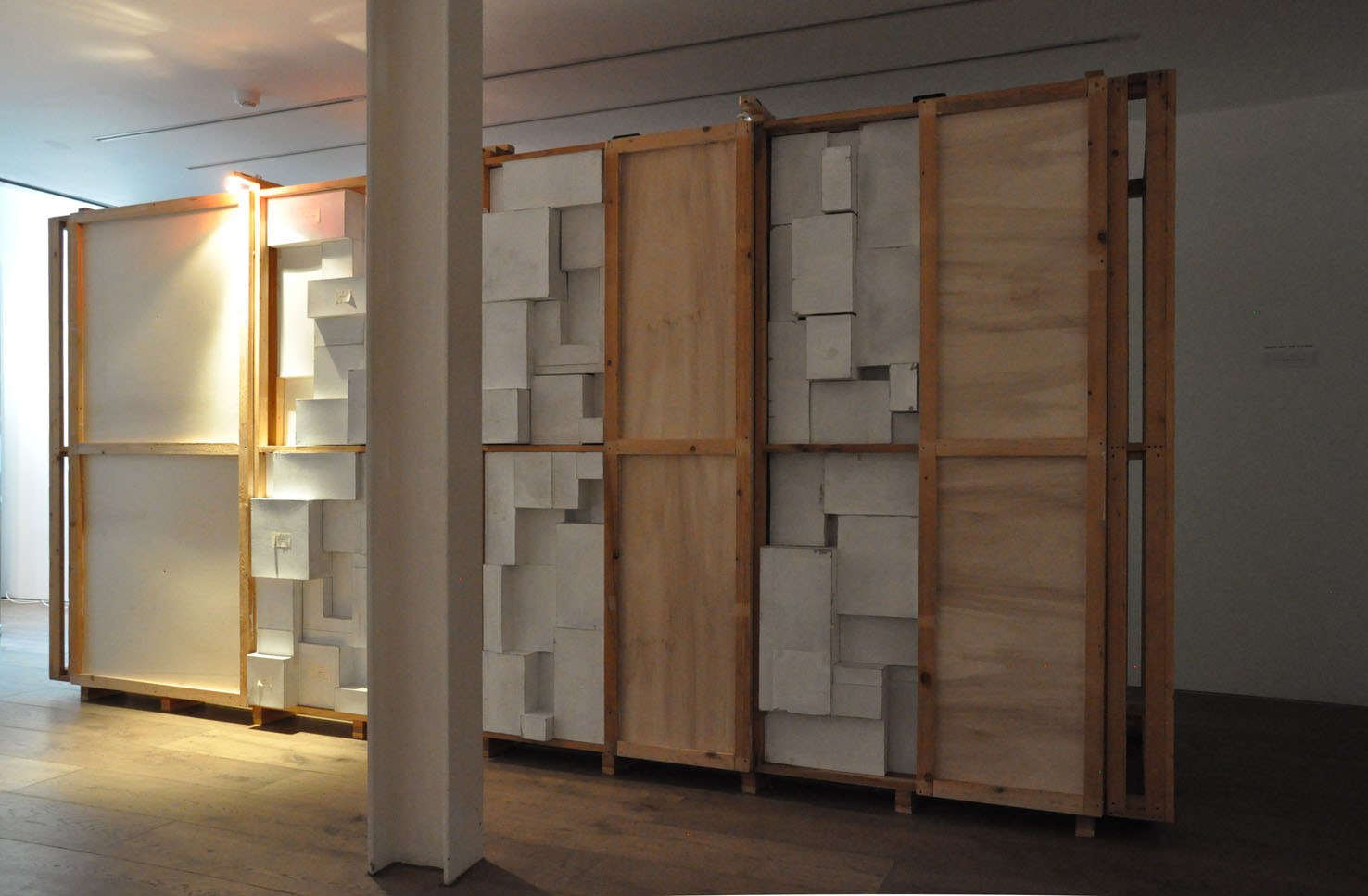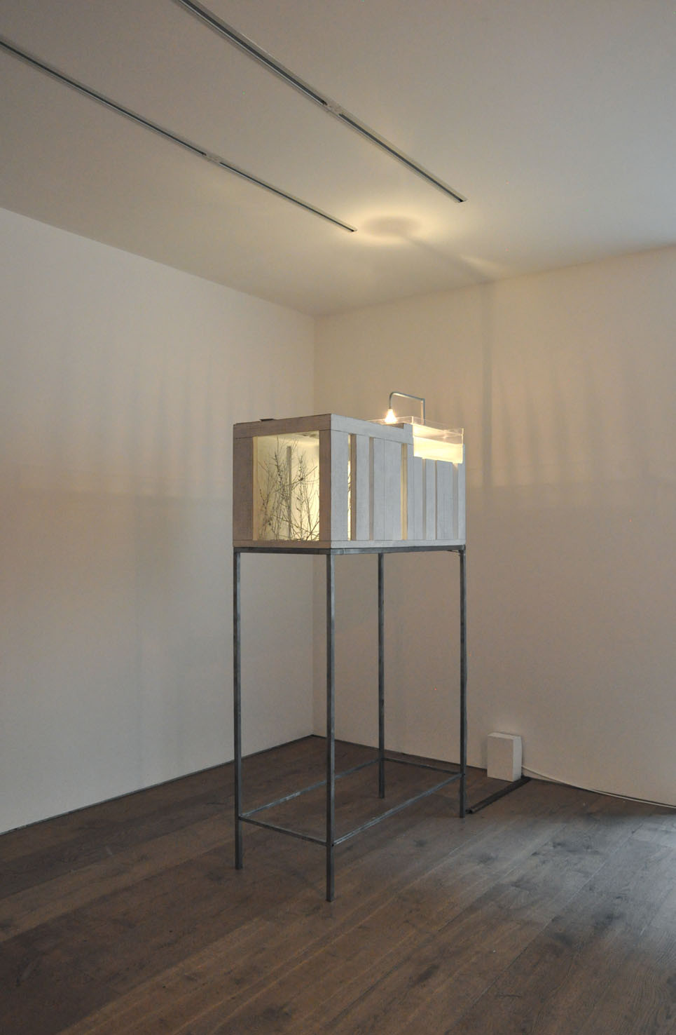 Lost, another work from this year, creates a wood labyrinth-like space where, from the outside, the spectator sees a myriad of possible corridors and thus loses any point of reference; the illusion is further exacerbated by lights, within the labyrinth, which illuminate some areas whilst others are plunged into darkness. The sound created by Trevisi will accompany the spectator both from within and outside the installation.