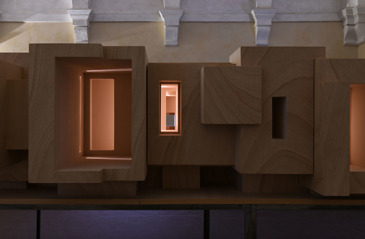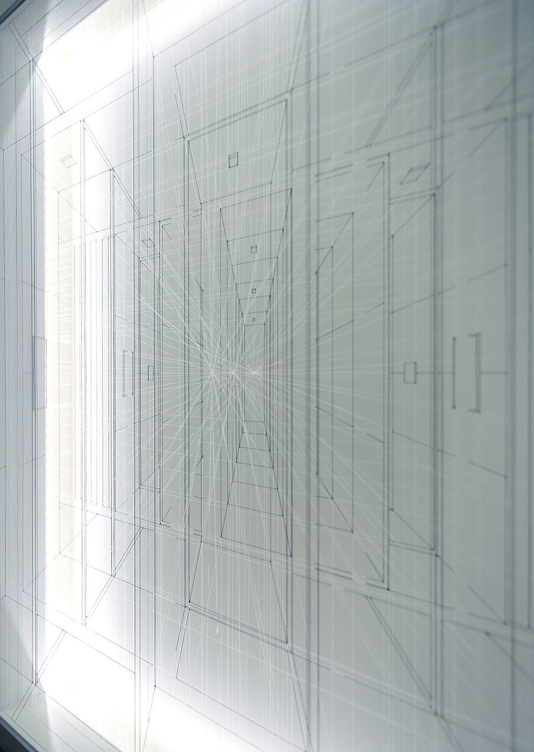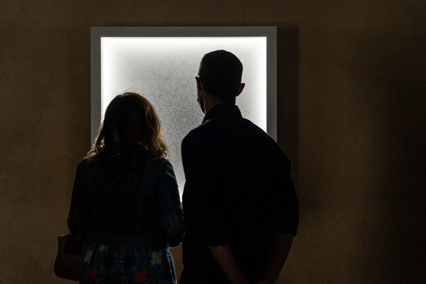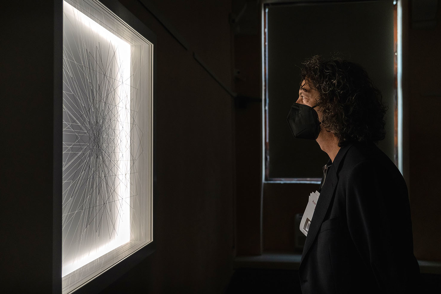 The exhibition brings together four unpublished works: the three-dimensional luminous drawing Limen (2021) which presents itself as a vision, a fluctuating spectrum, strongly evanescent and impalpable; the wooden installation Lost (2015), exhibited for the first time in Italy after Shanghai and London, in which we find the dimension of the labyrinth; the luminous three-dimensional mandala Cosmo (2021) made with fluorocarbon threads starting from precise mathematical calculations; and the small sculpture Luce (2021) which refers to ghost architectures.