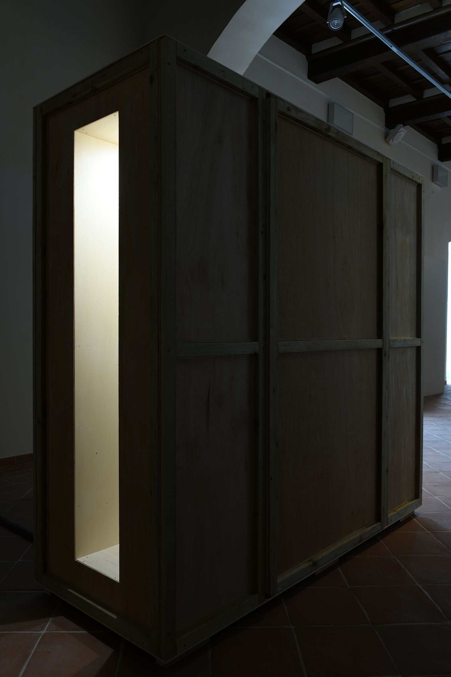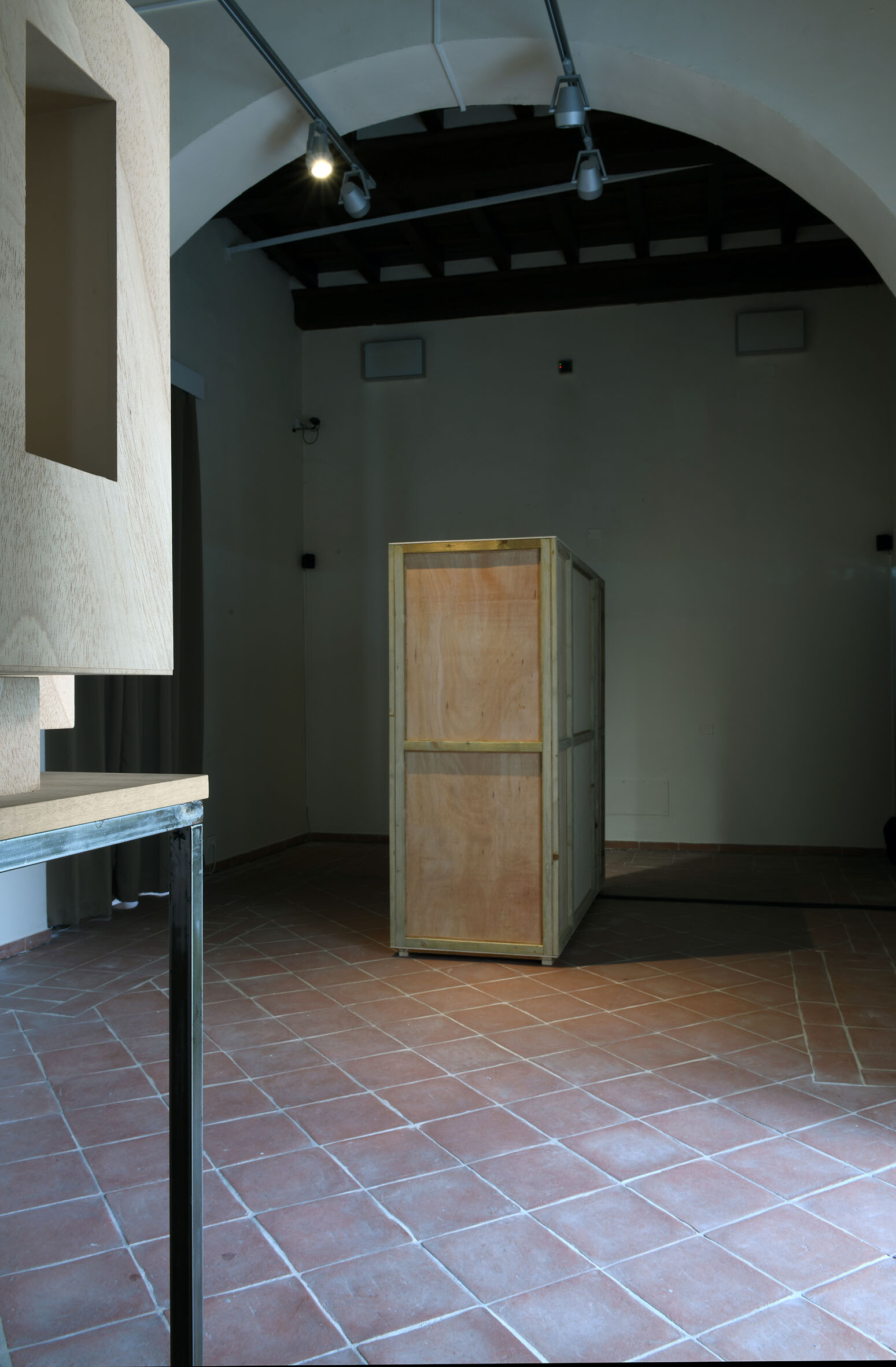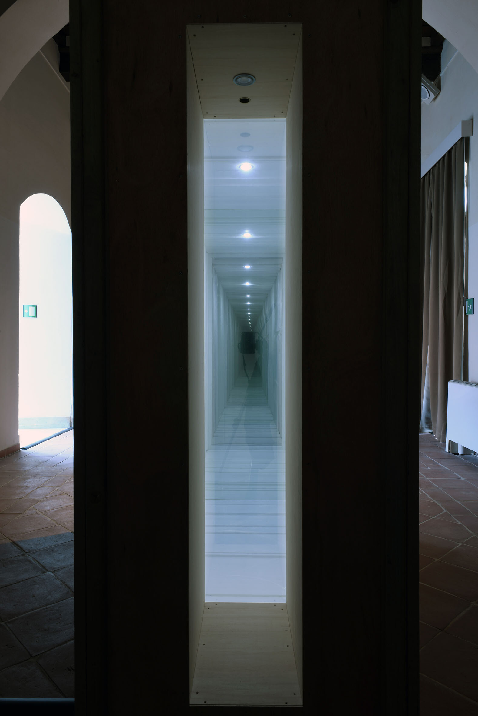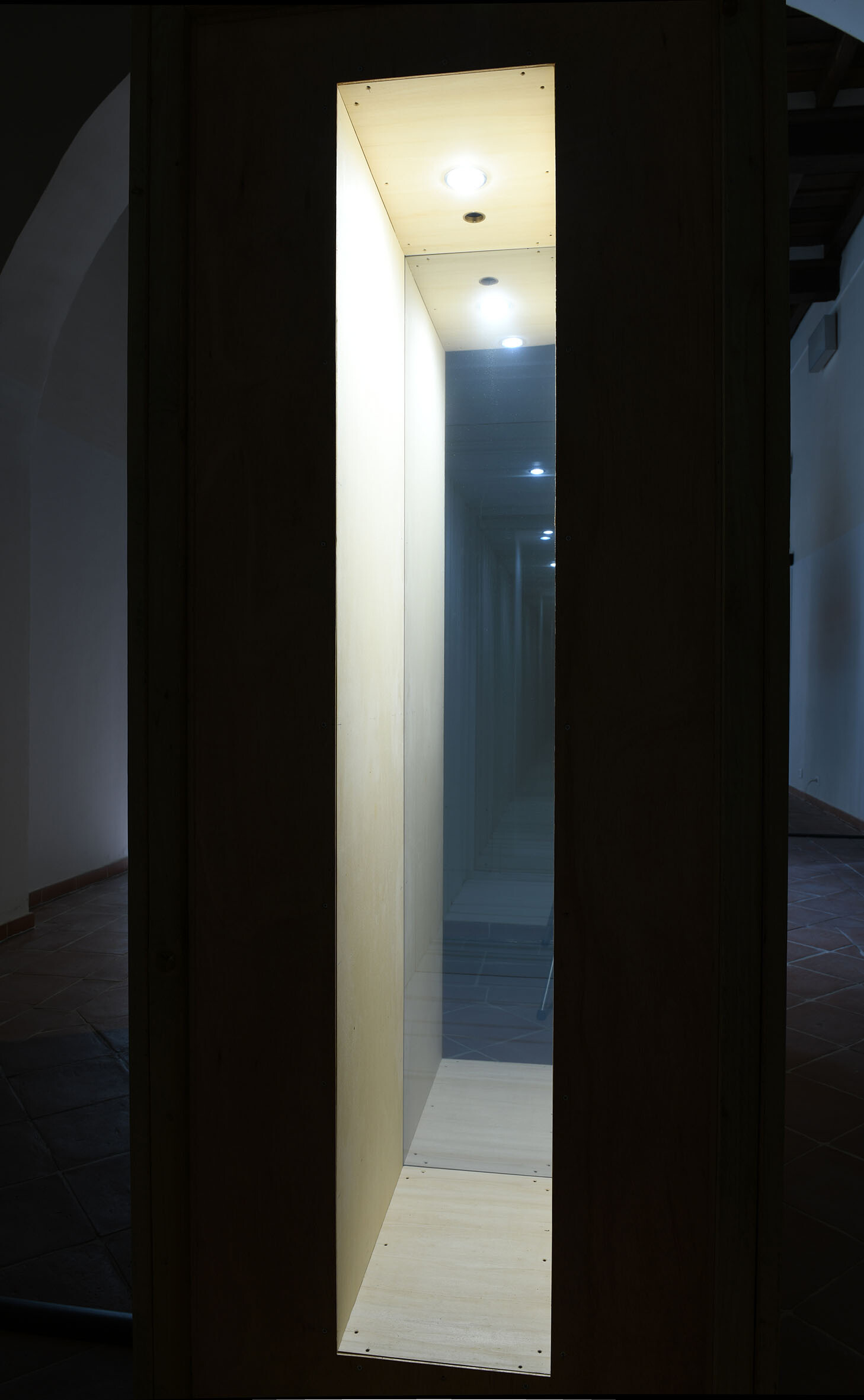 In recent years Paolo Cavinato's artistic research has developed through various disciplines, using techniques and languages of art: photography, drawings, graphic elaborations, large installations, sculptural objects. The characteristic elements regarding perspective, empty space, points of view and the relationship between finite and infinite recur as main milestones. Some of his works, designed and created in relation to the surrounding space, are complex constructions of visual and sound elements, in which the public can enjoy the interior. Sculptural elements, sounds and vocal performances, fused together to form a complex immersive experience of space. The artist is always attracted by the intrinsic possibilities of human thought, for its uniqueness and distinction. Just as the "different" gaze becomes active and critical, the installations aim to offer different angles and observation points, starting from themselves to go to a possible elsewhere, in a continuous exchange between inside and outside.