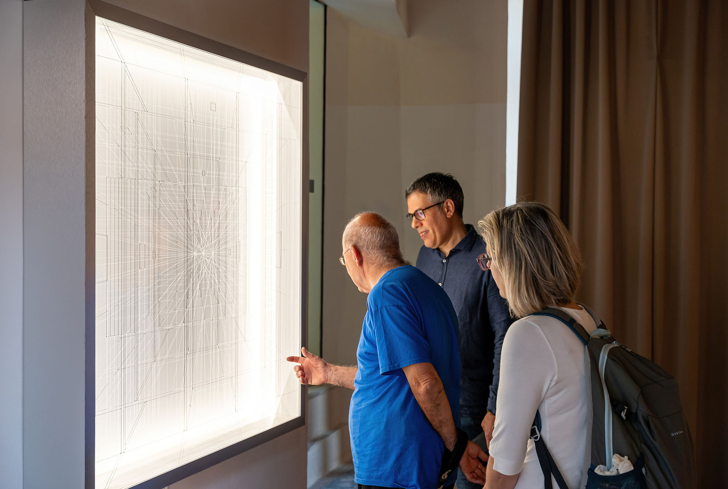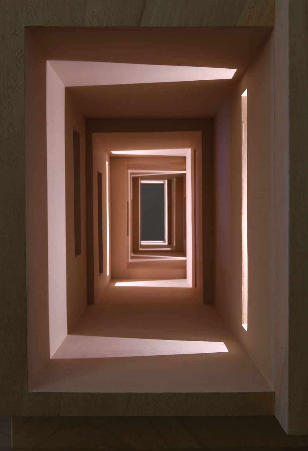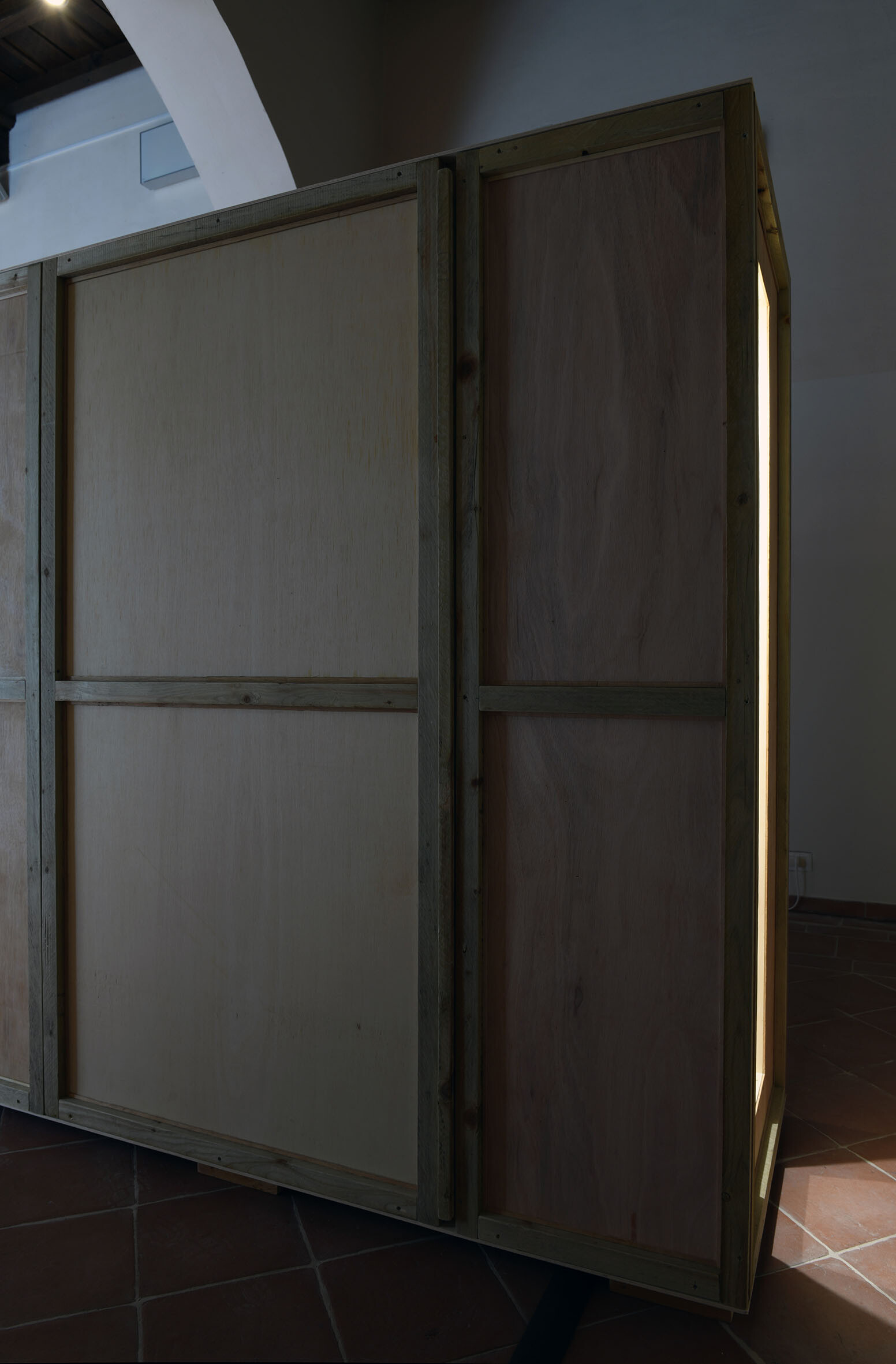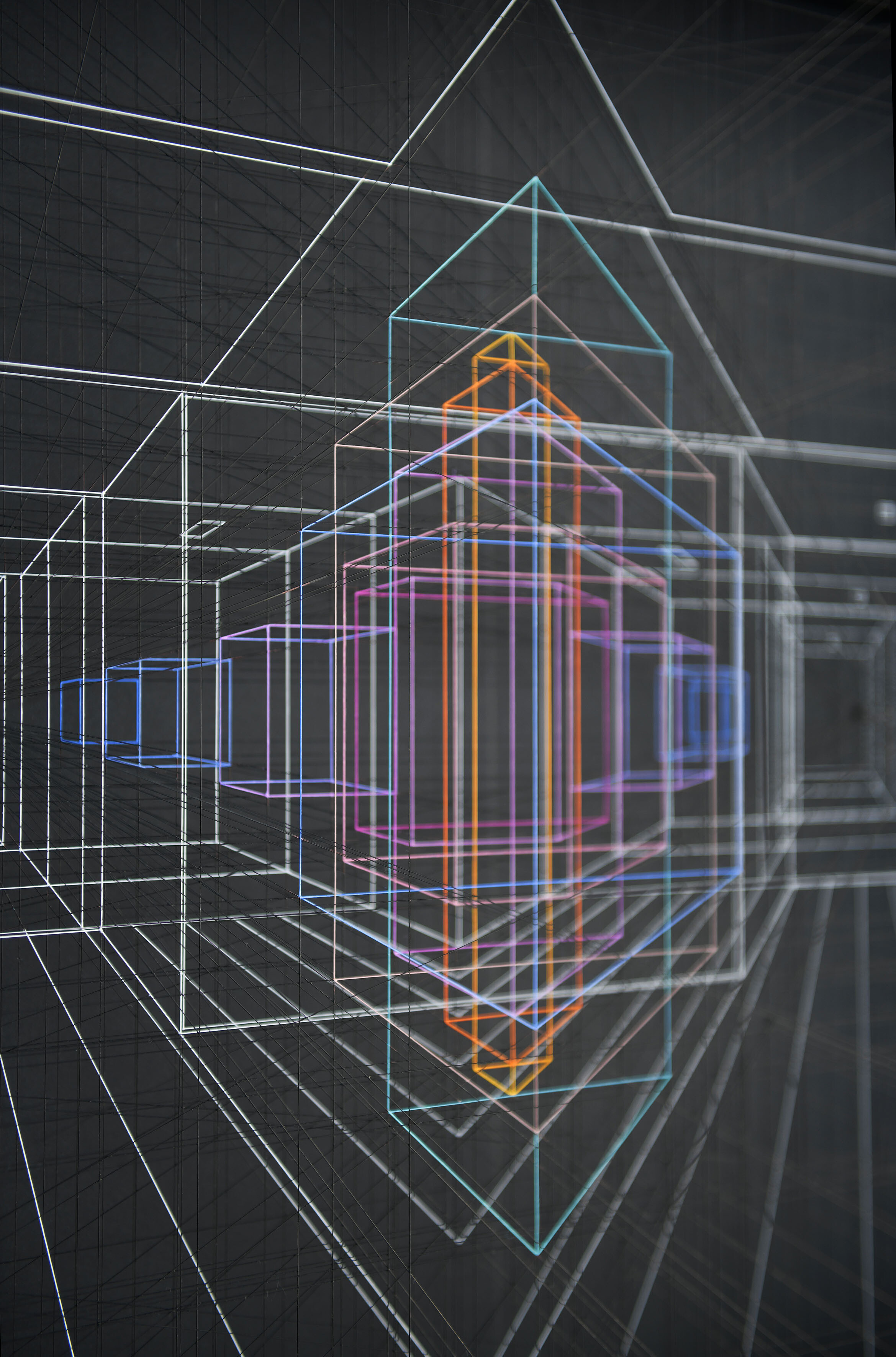 In recent years Paolo Cavinato's artistic research has developed through various disciplines, using techniques and languages of art: photography, drawings, graphic elaborations, large installations, sculptural objects. The characteristic elements regarding perspective, empty space, points of view and the relationship between finite and infinite recur as main milestones. Some of his works, designed and created in relation to the surrounding space, are complex constructions of visual and sound elements, in which the public can enjoy the interior. Sculptural elements, sounds and vocal performances, fused together to form a complex immersive experience of space. The artist is always attracted by the intrinsic possibilities of human thought, for its uniqueness and distinction. Just as the "different" gaze becomes active and critical, the installations aim to offer different angles and observation points, starting from themselves to go to a possible elsewhere, in a continuous exchange between inside and outside.