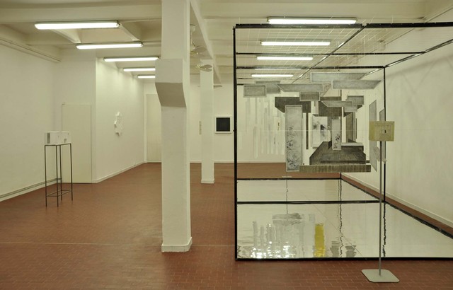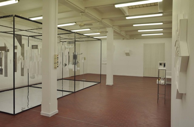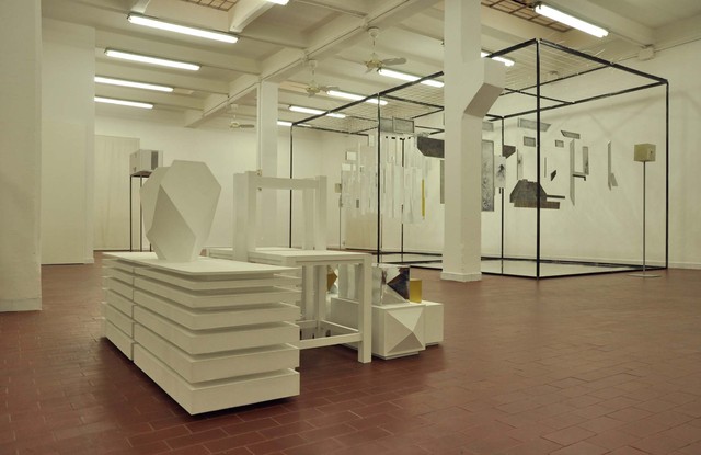 Se nelle proporzioni algebriche e nelle sezioni auree è inscritto un messaggio metafisico, il modo in cui queste si sviluppano, in un’impalcatura di materie dimesse e leggere, in costruzioni fragili e aleatorie, ci trasmettono questo messaggio come sgravato e sdrammatizzato, in un fremere di griglie e reticoli, scale e diaframmi: aleph in cui urge lo spazio cosmico, siepi d’infinito, soglie della mente, tutto significato in un intelligent design di tessere di cartoncino.