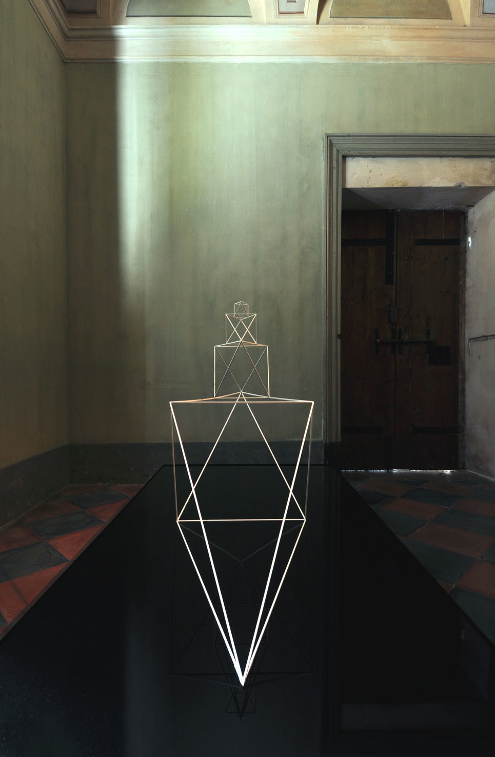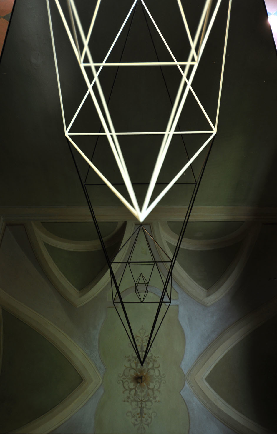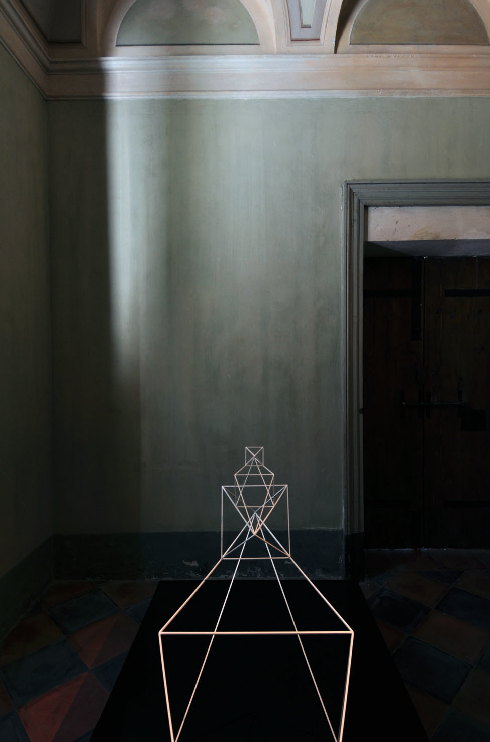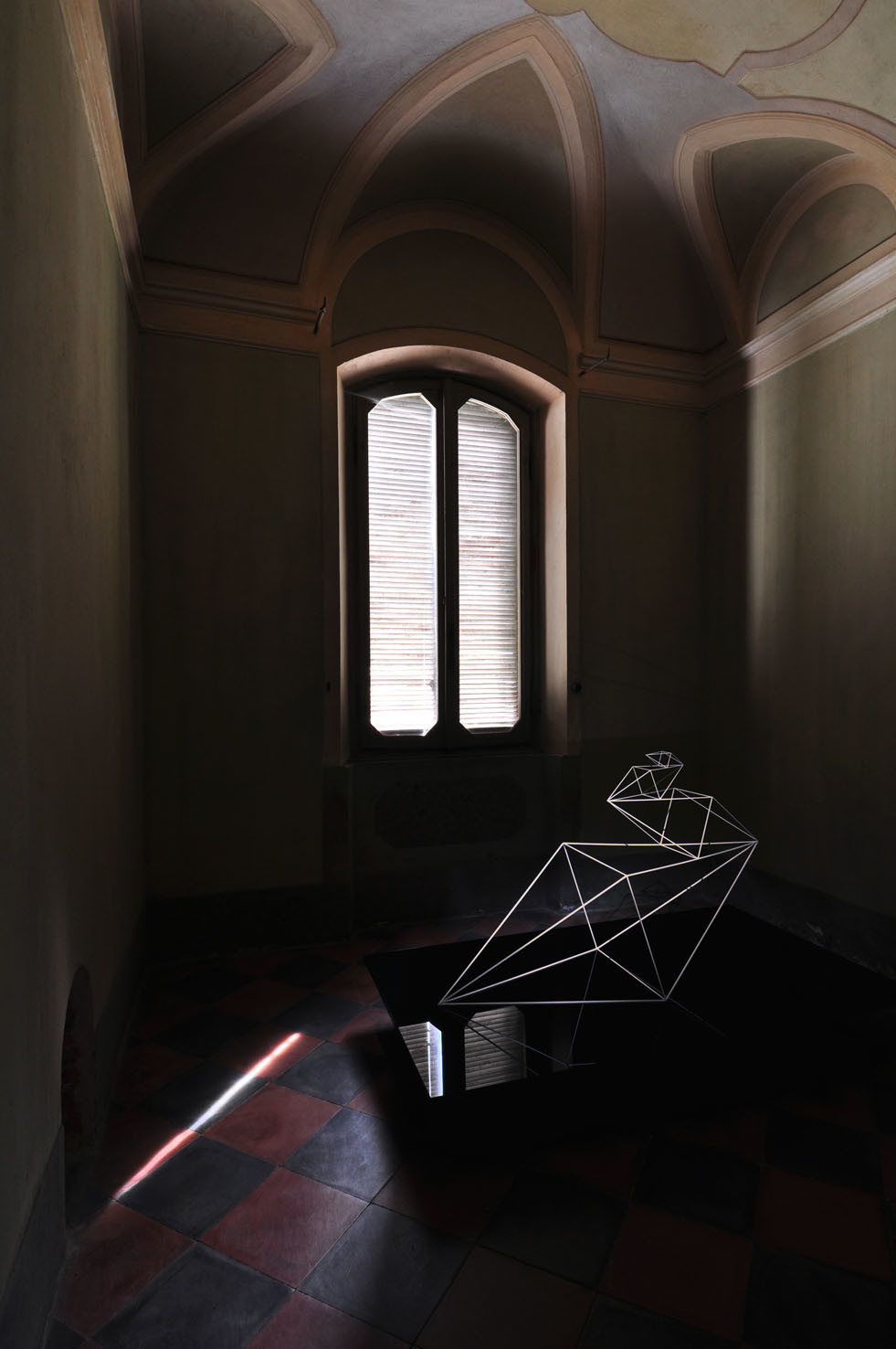 La mostra d’arte contemporanea proposta negli interni della Villa del Parco delle Bertone intende richiamarsi alla storia del luogo, che è passato nei secoli dalla presenza dell’originaria foresta planiziale con la sua spontanea e fitta vegetazione, all’addomesticamento della natura con la costruzione delle case coloniche e le loro coltivazioni agricole, fino alla costruzione della dimora nobiliare, con il passaggio dal bosco al giardino romantico voluto dai proprietari conti D’Arco nell’800. Proprio questo percorso nel tempo del contesto paesaggistico ha ispirato il titolo della mostra “Natura ad artem”. Paolo Cavinato, Anne Skole Overgaard e Franco Piavoli, ci riportano infatti con evocazioni e rimandi mentali ai tempi in cui il sito della dimora stessa era foresta, interpretando dunque il luogo primariamente come luogo della natura e delle sue trasformazioni e stabilendo una sorta di virtuale e immaginaria continuità tra gli esterni e gli interni. Le stanze per questo accolgono opere che sia con il lavoro site-specific pensato da Paolo Cavinato, sia con l’installazione di Anne Skole e l’esposizione delle opere-erbario di Franco Piavoli sono inserite in modo quasi necessario nell’intenzionalità emergente di riferirsi alla natura non solo come centralità tematica, perché cifra connotativa del posto, ma anche di rileggerla concettualmente riferendosi ai suoi principi costitutivi. Proprio sul richiamo di questi ultimi, si costruisce così una sorta di ideale percorso di circolarità simbolica: origine, crescita e morte-rinascita cui le opere nella loro intrinseca struttura di tecnica, di linguaggio, di progetto artistico alludono, aprendo diversi livelli di significato in più percorsi di possibile lettura in cui giocano fattori di memoria, evocazione e riferimenti colti. L’artista danese Anne Skole ci coinvolge con una tecnica tradizionale dei paesi nordici. Le sue incisioni xilografiche di rami e tronchi d’albero con stampe in positivo su leggere carte scendono dal soffitto a coprire le pareti di una delle prime due sale, alludendo alla presenza della foresta di un tempo in luogo della dimora, mentre nella seconda sala, come a specchio della prima, espone le stesse matrici al nero incise su legno. Ci sembra di poter dire che dall’idea di matrice si possa trarre il concetto di origine, di nascita riferibile alla natura stessa anche come inizio di quell’ideale percorso mentale, sotterraneamente allusivo, che va oltre all’idea della foresta storica cui si riferisce. A prevalere nel suo lavoro è soprattutto una dimensione temporale nel passaggio dalla matrice alle varie fasi delle sue stampe multiple fino a quelle al chiaro che ci presenta. Paolo Cavinato invece, artista mantovano attivo anche all’estero, costruisce tridimensionalmente a terra una sorta di “giardino” di forme astratte, seguendo la sua poetica legata al rigore della geometria dello spazio, questa volta applicata alla geometria dei frattali. L’elemento naturale viene richiamato nel concetto di crescita, nella “germinazione” di forme che da un semplice modulo si ripetono e si collegano, aggregandosi secondo un ipotetico ordine ma non di univoca percezione. I volumi astratti, espandendosi fino quasi a coprire a tappeto il pavimento dello spazio espositivo pongono, giocando sulla dimensione spaziale, l’accento sull’idea di sviluppo della natura nel riferimento traslato alla foresta, intesa come luogo dell’indistinto verso la separazione, l’individuazione di parti e di un ordine delle stesse. L’altra opera “Germoglio”, una leggera e quasi grafica scultura del vuoto di ascendenza costruttivista, allude sempre al principio di una geometria della natura ma forse anche ad un sotteso ordine cosmico regolatore, come altra faccia della medaglia del caos iniziale primigenio e insieme ci riporta all’idea di trasformazione alchemica. Se all’emergere dalla materia nera informe come terra sembra simbolicamente alludere il bianco delle strutture-oggetto, all’elemento acqua si riferisce la scura superficie dello specchio, simbolo di un profondo indistinto contraltare al razionale della forma che vi si specchia, ma soprattutto topos dell’elemento di vita e dunque di nuovo di un principio generatore. In un’altra tappa di un un altro “viaggio”, quello nella storia del luogo, l’opera nel suo complesso rappresenterebbe l’ideale giardino contrapposto al bosco. Franco Piavoli, noto regista cinematografico, espone una parte del suo erbario “artistico” in cui curiosità scientifica e creazione estetica si legano in un efficace connubio. Elementi minori della vegetazione come piccoli rami e foglie di erbe essiccate e con molta cura conservate intatte dalle radici alle piccole chiome, sottratte al ciclo naturale e bloccate nel tempo, sembrano esprimere il principio di una fine stessa della natura. Esse diventano l’emblema di una trasmutazione nella loro essenza, di una rigenerazione superiore che è poi alla fine quella dell’arte stessa, quella che conferisce loro il gesto fondamentale dell’artista che le preleva, le sposta anche da un ideale contesto scientifico, le indica e mettendole in cornice le assume nella dimensione estetica, le fa diventare ideali “nature morte” fissate nel tempo “assoluto” dell’arte. Nel loro aspetto quasi grafico-pittorico richiamano in modo scarno e minimale il mondo della vegetazione circostante nella parte meno spettacolare ma altrettanto significativa di tale contesto. Con esse si fa anche un passo allusivo nella storia, richiamando l’interesse del grande naturalista quale fu il padrone di casa Carlo D’Arco, con i suoi studi scientifici sulla natura e gli interventi concreti. Oltre infatti alla piantagione nel suo giardino di rare specie arboree secolari, realizzò un prezioso erbario custodito nel palazzo di città. La proiezione infine del cortometraggio “Là dove scorre il Mincio”, realizzato da Franco e Mario Pia