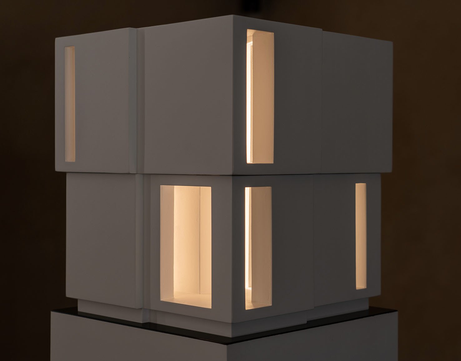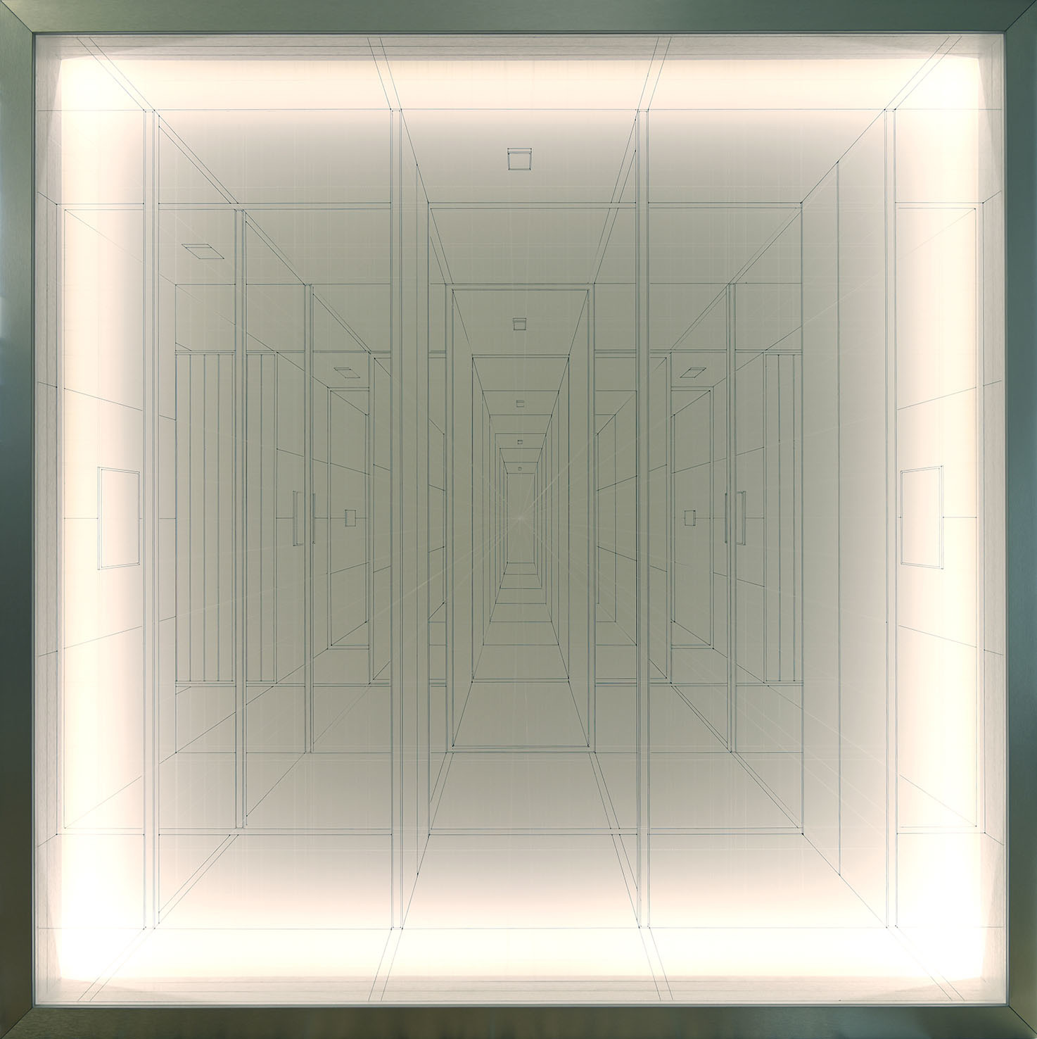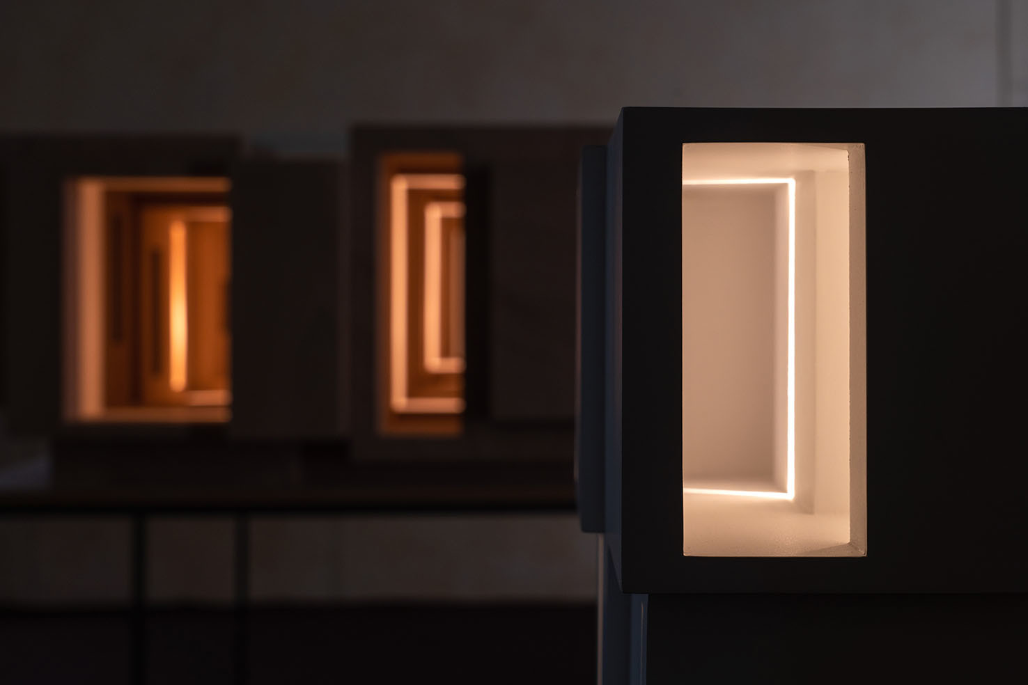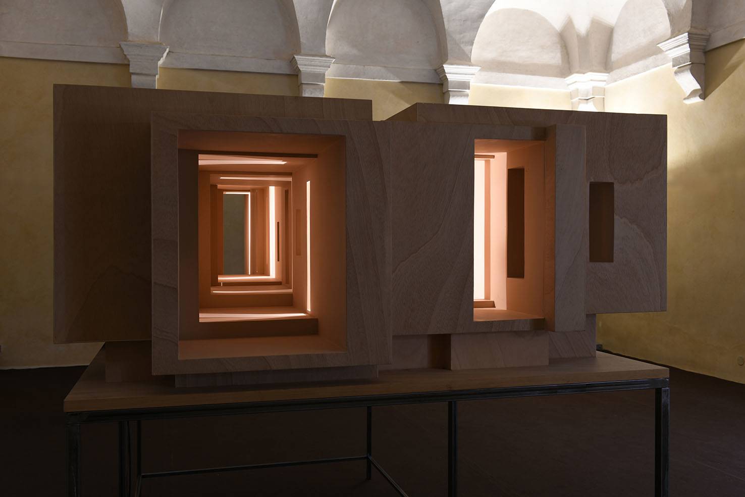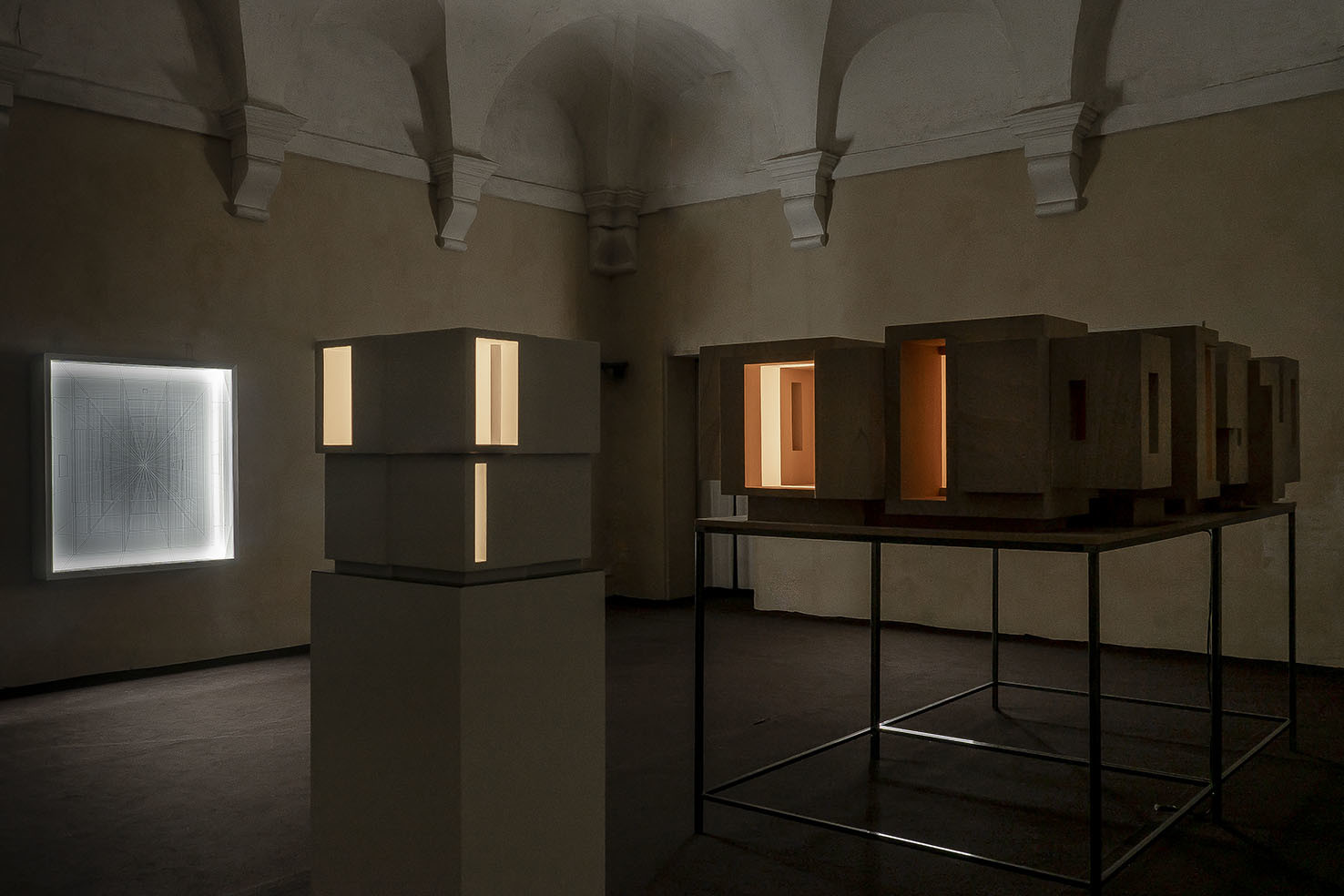 La rassegna raccoglie quattro opere inedite: il disegno tridimensionale luminoso Limen (2021) che si presenta come una visione, uno spettro fluttuante, fortemente evanescente e impalpabile; l’installazione lignea Lost (2015), per la prima volta esposta in Italia dopo Shanghai e Londra, in cui si ritrova la dimensione del labirinto; il mandala tridimensionale luminoso Cosmo (2021) realizzato con fili di fluorocarbonio a partire da precisi calcoli matematici; e la piccola scultura Luce (2021) che rimanda alle architetture fantasma.