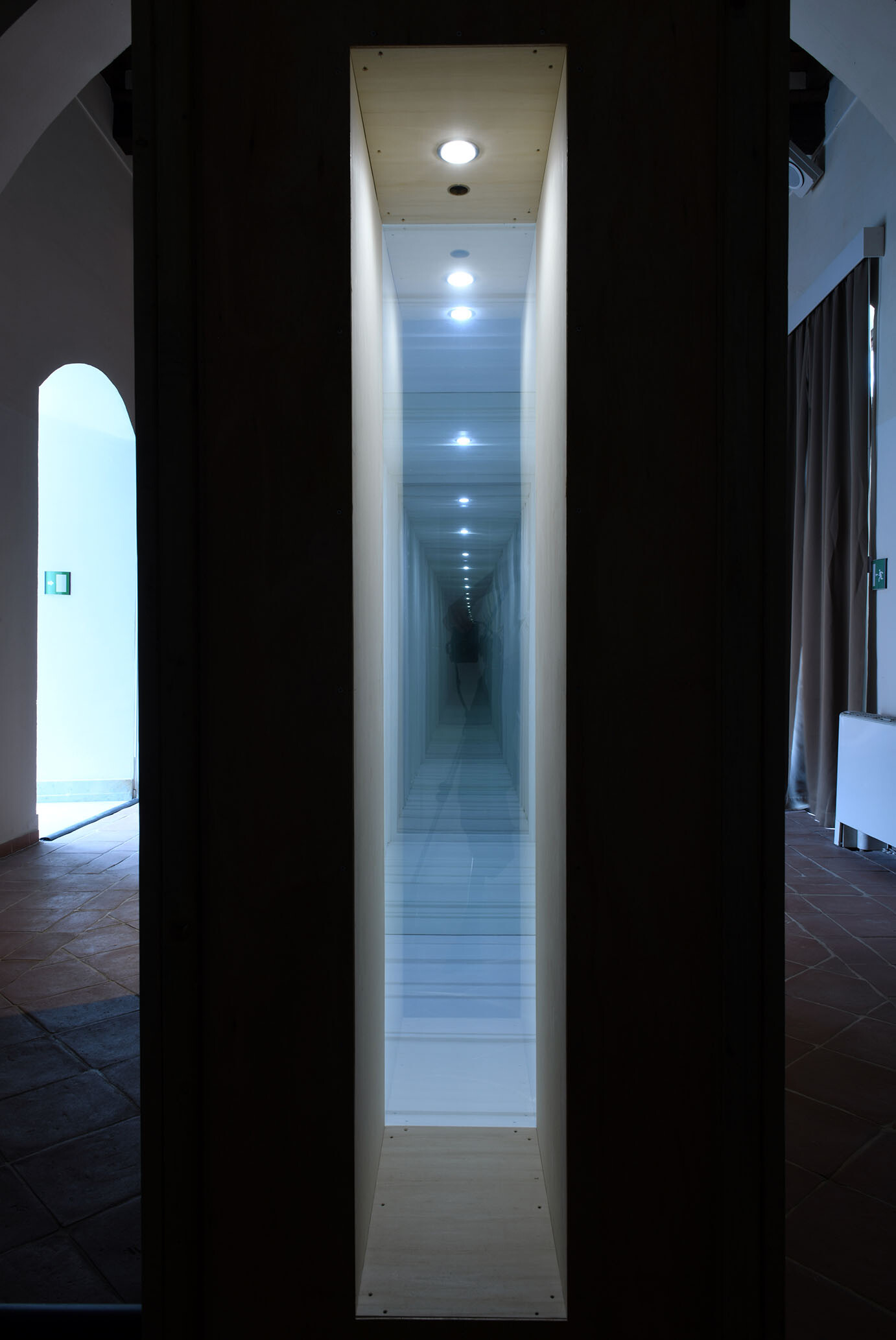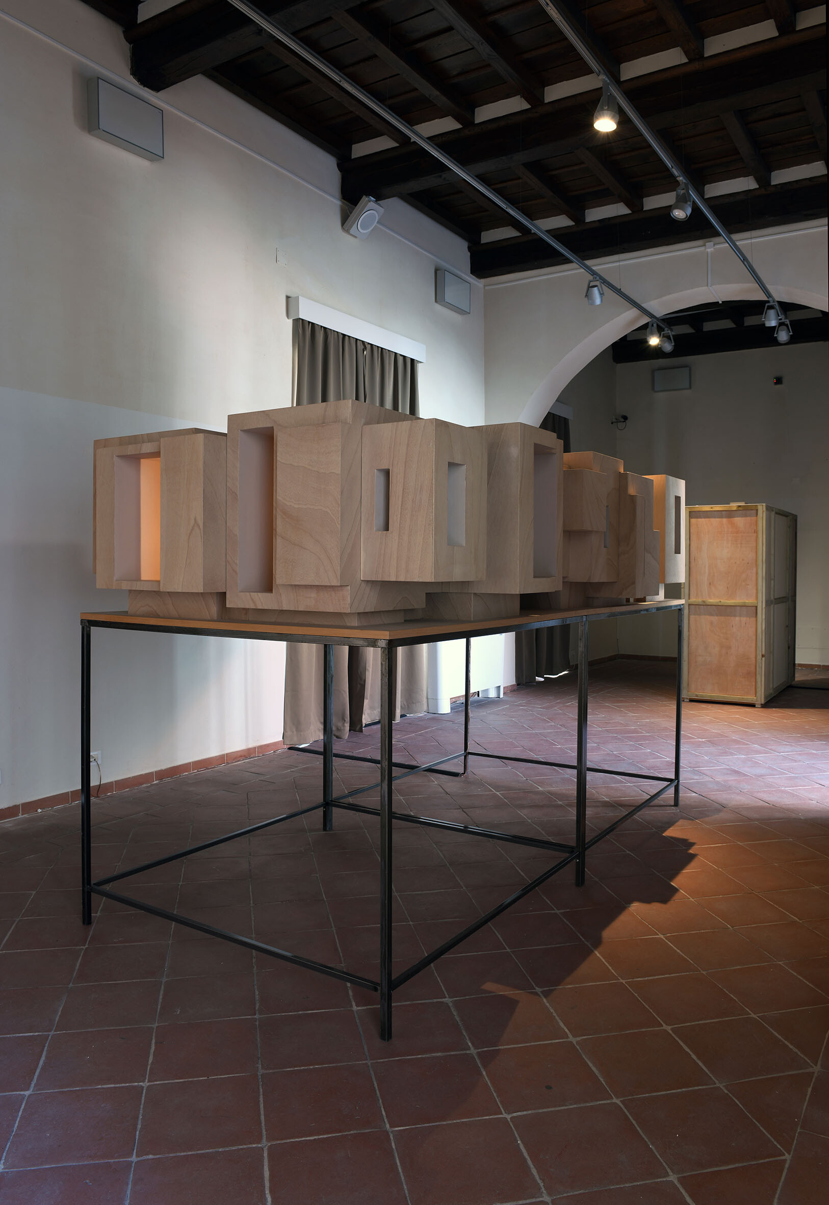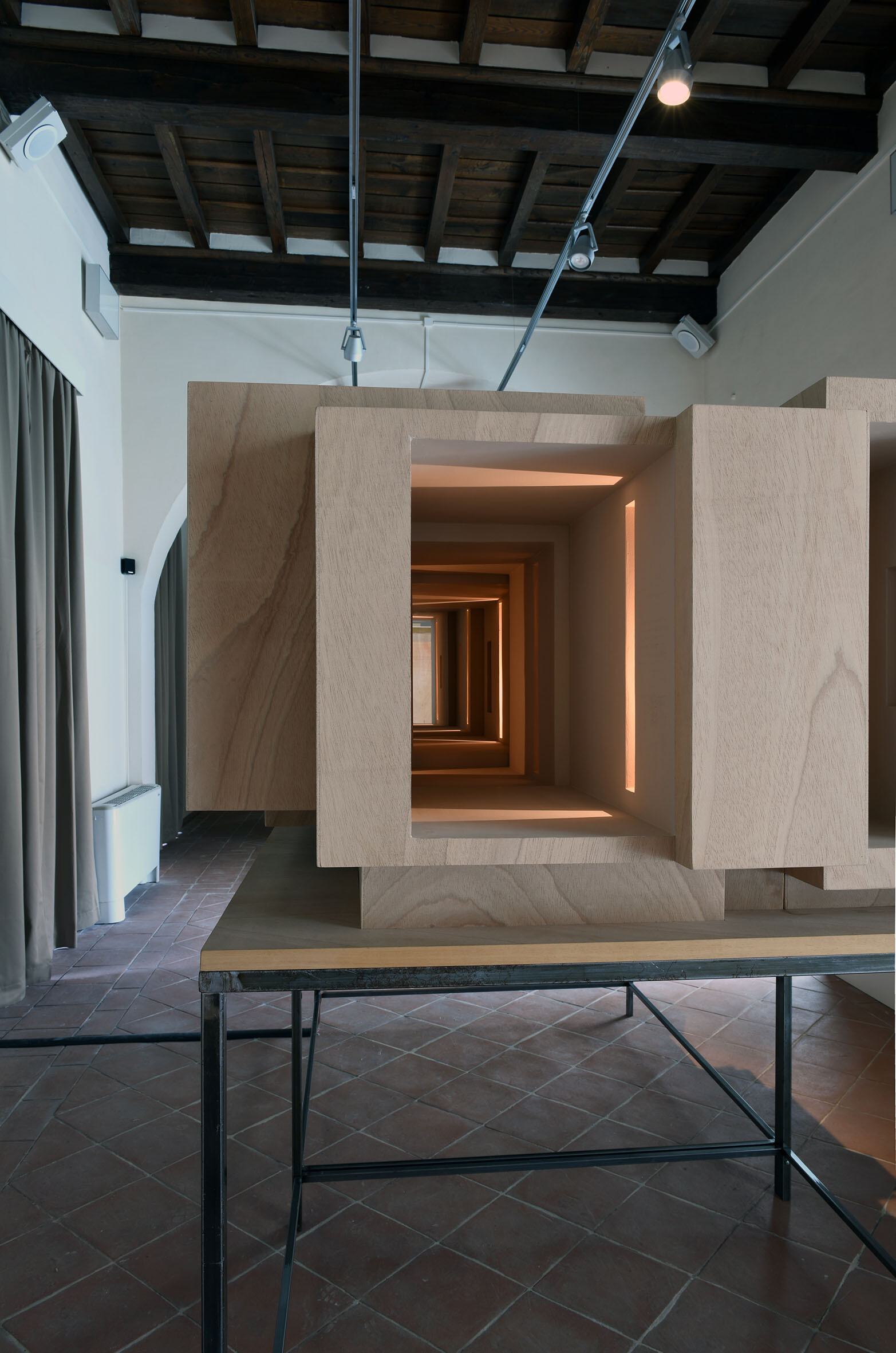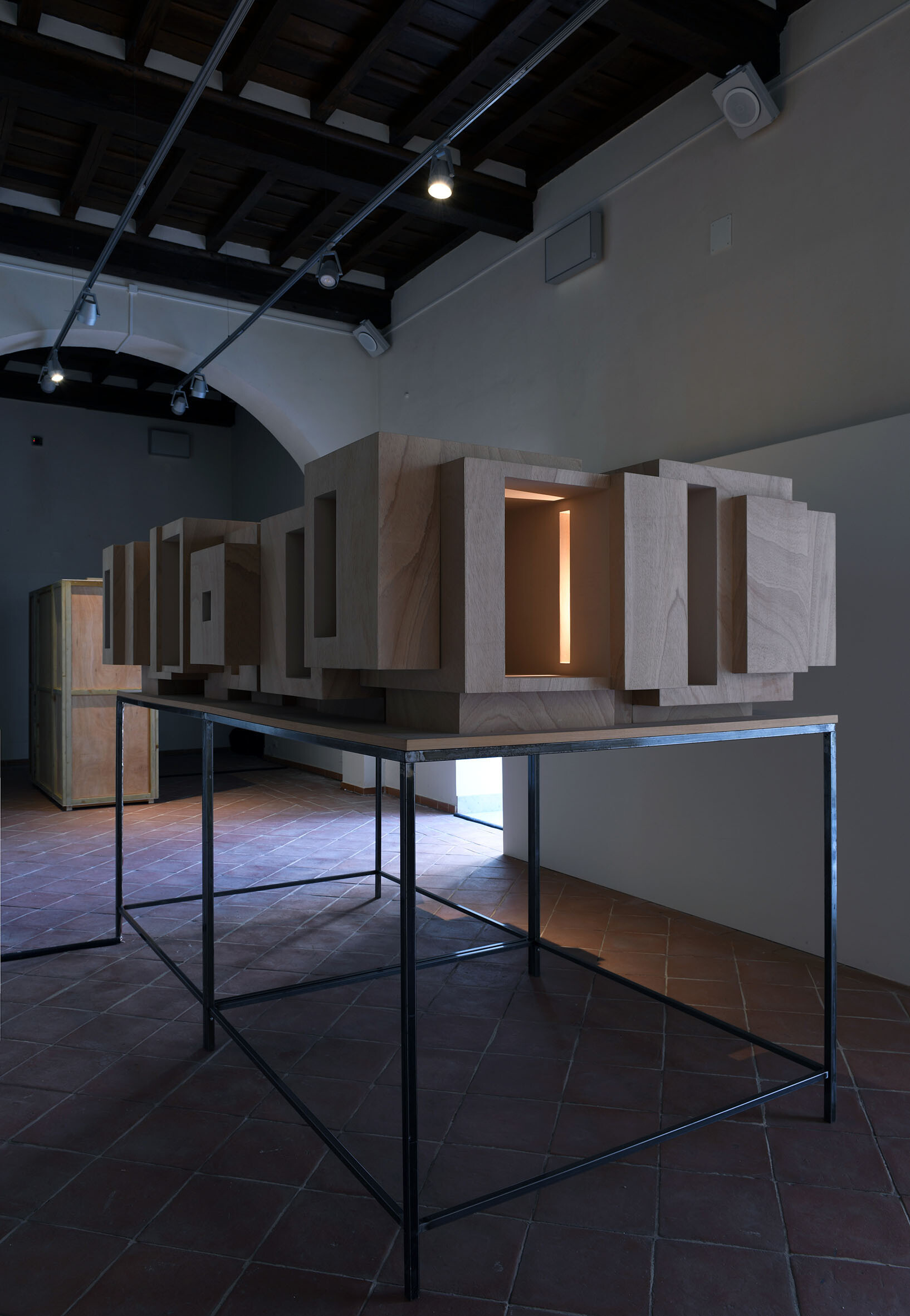 Paolo Cavinato con un approccio maieutico sembra offrirci un mondo preordinato in cui l’artista ha avuto un ruolo da demiurgo. Attraverso opere musealizzate e recenti, tra cui Solaris#5 prodotta site specific per il mudaC, la mostra rappresenta l’opportunità di entrare direttamente in contatto con la produzione dell’artista lasciando spazio a nuove visioni, soglie, limiti e prospettive. Il museo, ospitato in un convento seicentesco, diviene simbolicamente luogo di sperimentazione, spazio di incontro tra l’irreale, il percepito e l’inverosimile trasformando o evolvendo il consueto concetto di realtà, accompagnandoci alla scoperta di un mondo interiore nel quale, una volta ordinato il caos, ci si ritrova. Le opere coniugano spazi vuoti e pieni, percorribili o illusori, forme geometriche o antropizzate. Distante da categorizzazioni, Cavinato individua la sua cifra in un linguaggio visivo unico che unisce pittura, scultura, fotografia, architettura, scenografia e musica. Esplora lo spazio e il tempo, il dentro e il fuori, stimolandoci a indagare i limiti e le potenzialità del nostro rapporto con il mondo che ci circonda e a prendere coscienza di temi antitetici come corpo e mente, natura e artificio. Le sue installazioni destano meraviglia e inquietudine, mettendo in dubbio ogni certezza e spronandoci a confrontarci con la complessità.