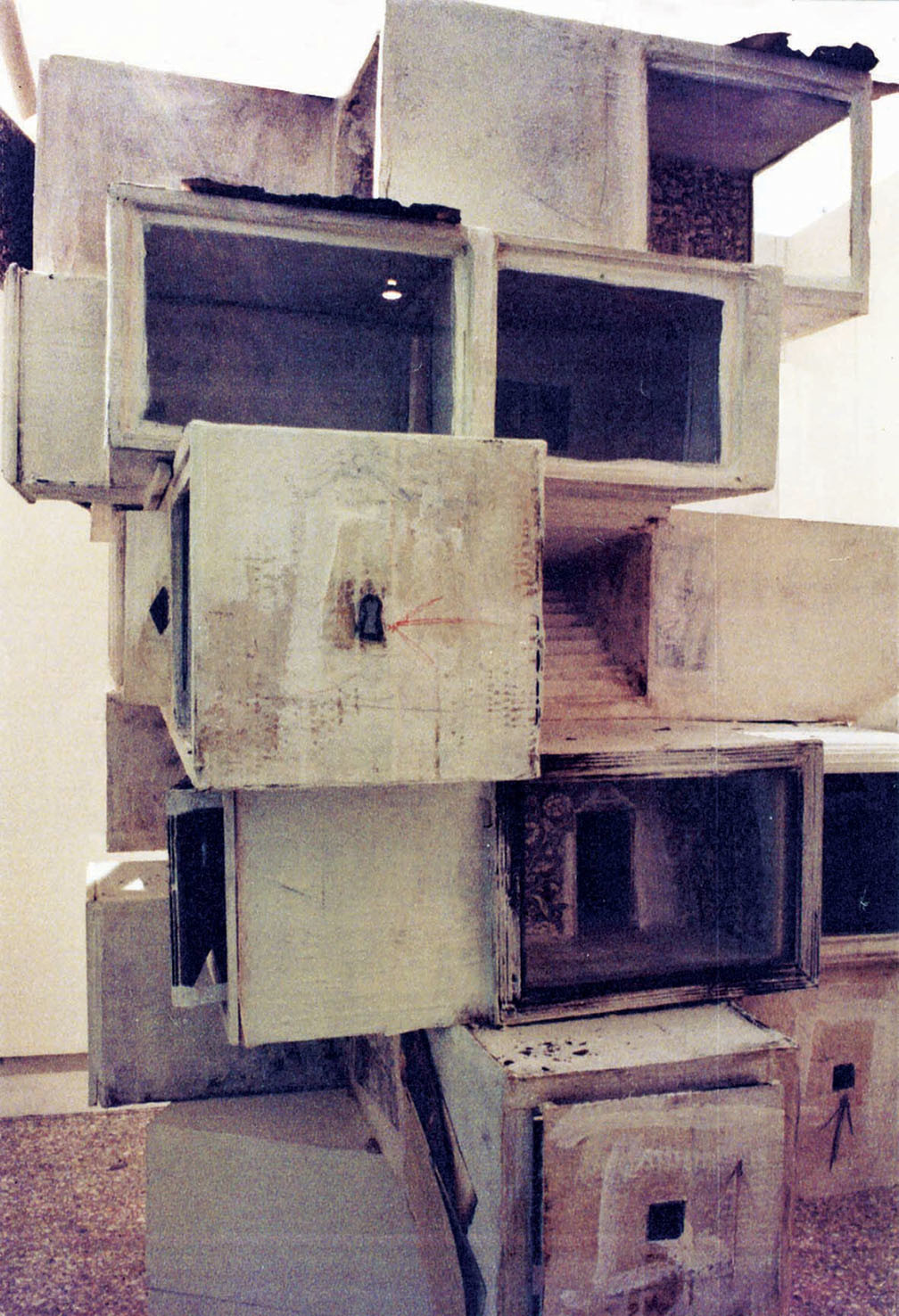 È un assemblaggio di scatole ottiche, nelle quali sono ricostruiti corridoi e stanze: tramite giochi di specchio, alludono a spazi virtuali.