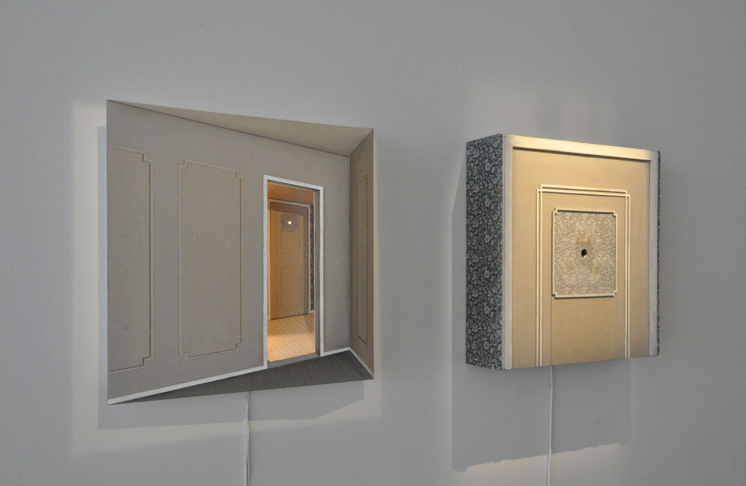 Cartoncino, legno, carta, acrilico, specchio, luce e timer