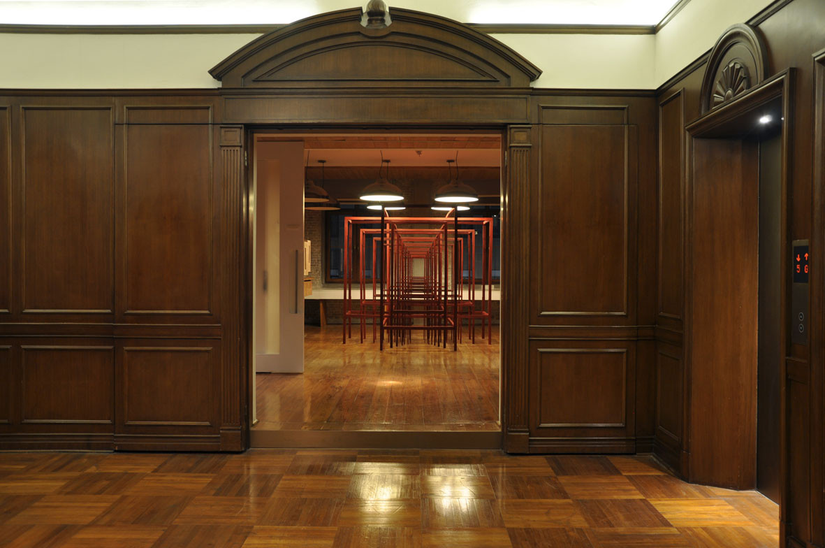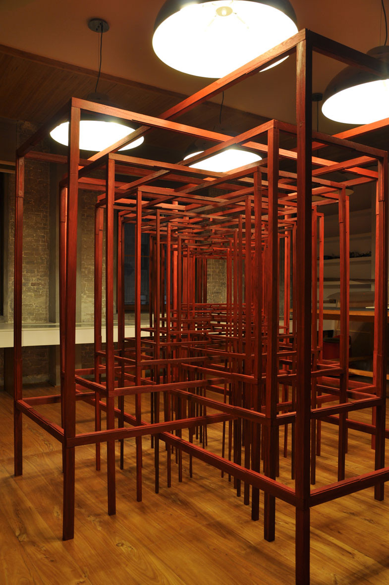 Realizzata durante una residenza di sei mesi a Shanghai, Protection riflette i concetti di complessità, ordine, caos, vuoto, ecc.. mettendo in relazione elementi della cultura occidentale e orientale. Essa è composta da 16 “tavoli”, contenuti gli uni negli altri e aventi stessa forma ma differenti dimensioni. Nell’insieme, vanno a formare, con ritmo e ripetizione, uno speciale mantra tridimensionale.