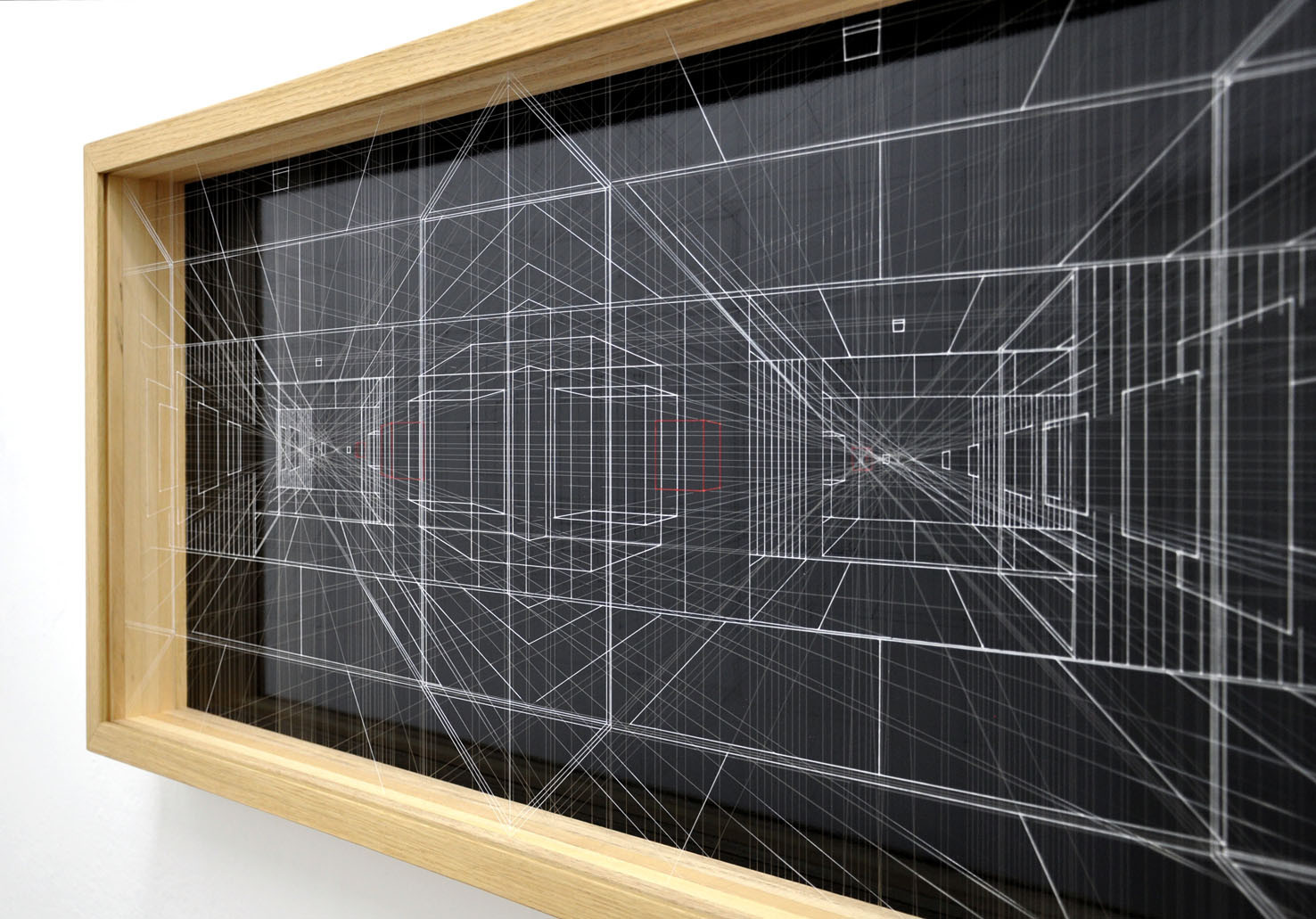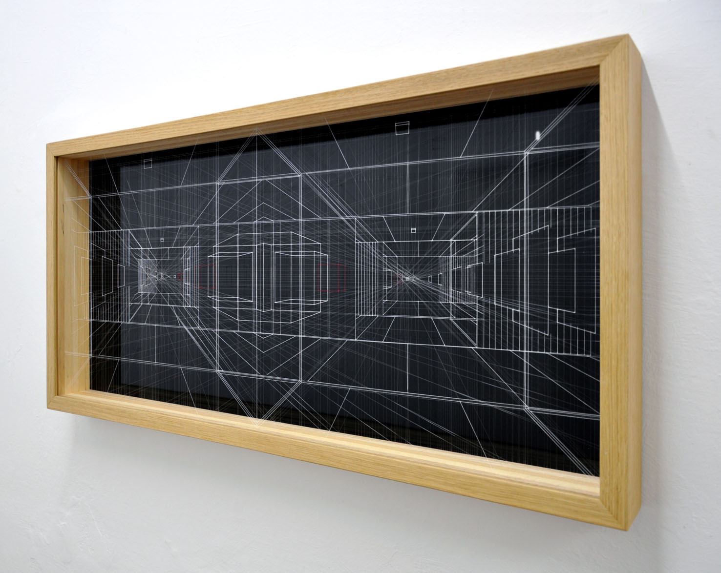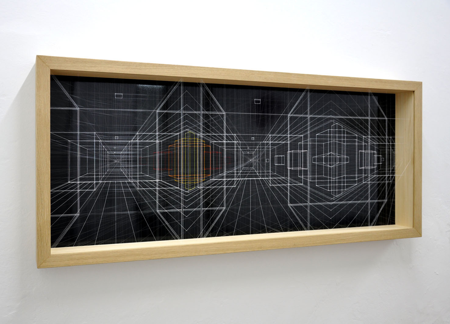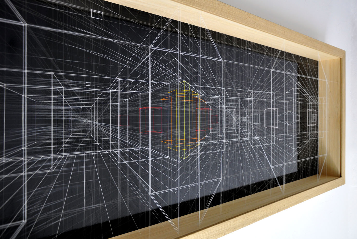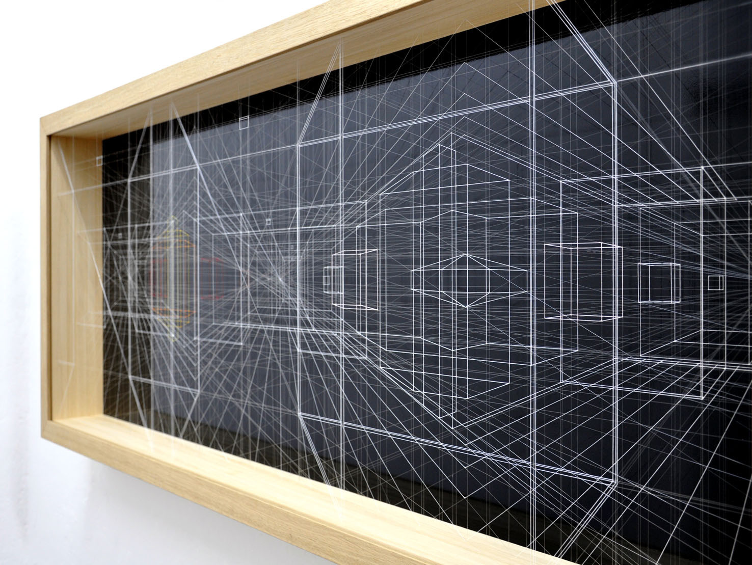 acrilico su filo in fluorocarbonio, cornice in legno, fondo in alluminio verniciato, plexiglas protettivo esterno