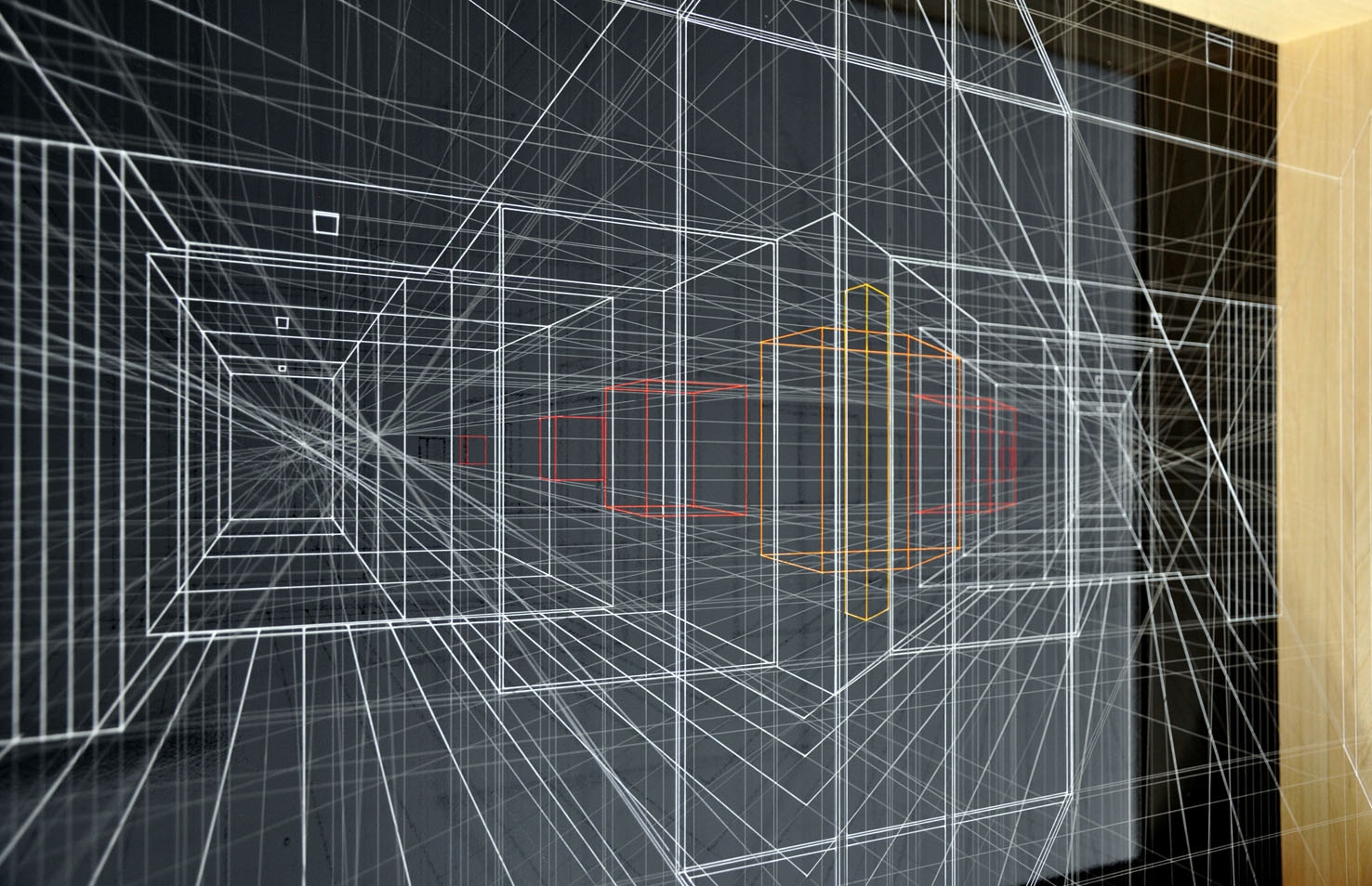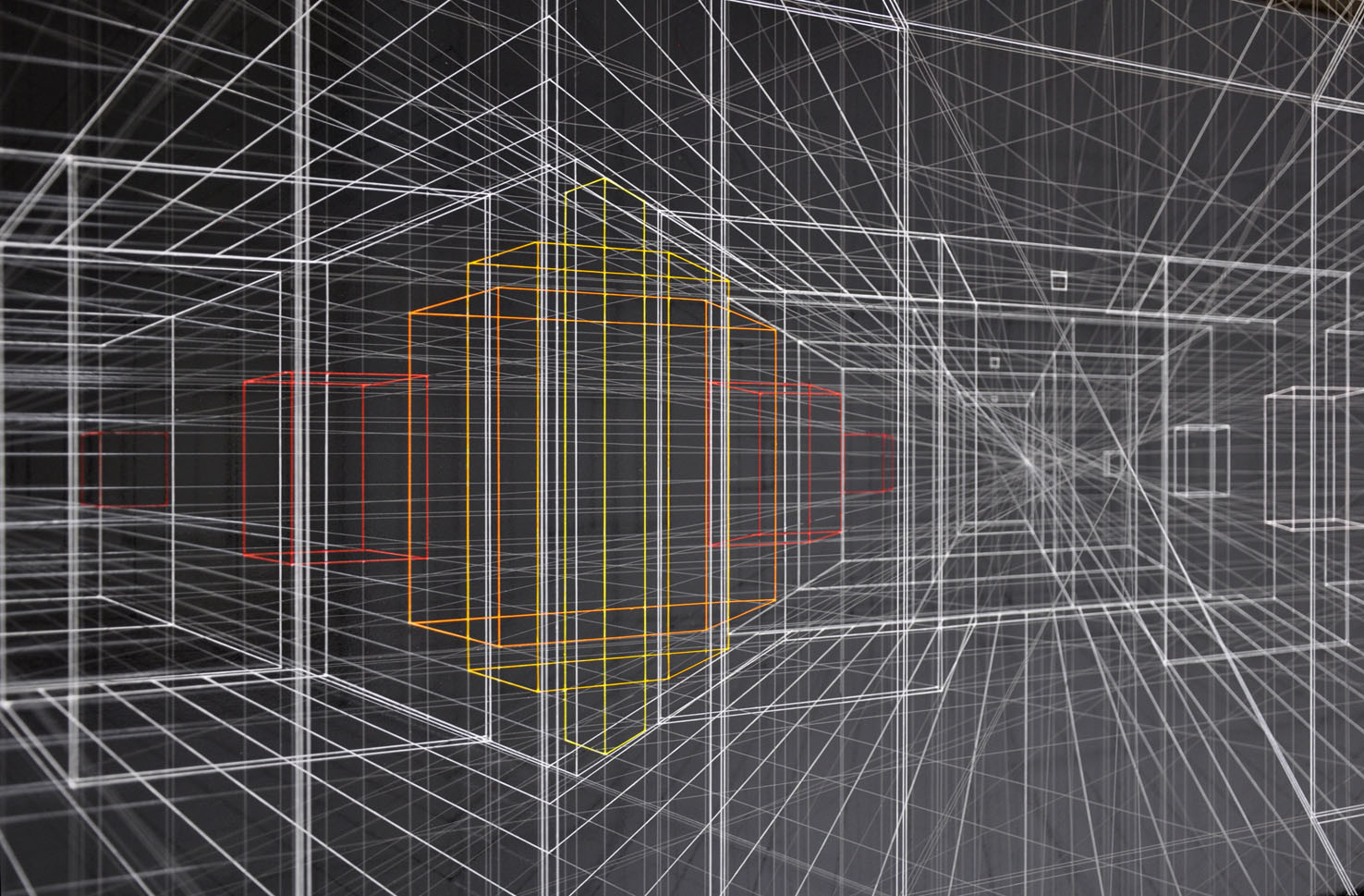 Continuous City è un sofisticato disegno tridimensionale realizzato con fili sottili e trasparenti in fluorocarbonio, dipinti e fissati su vari telai sovrapposti. Presenta spazi architettonici o ipotetici spazi urbani, come limbi, spazi metafisici, astrazioni, spazi liminari.