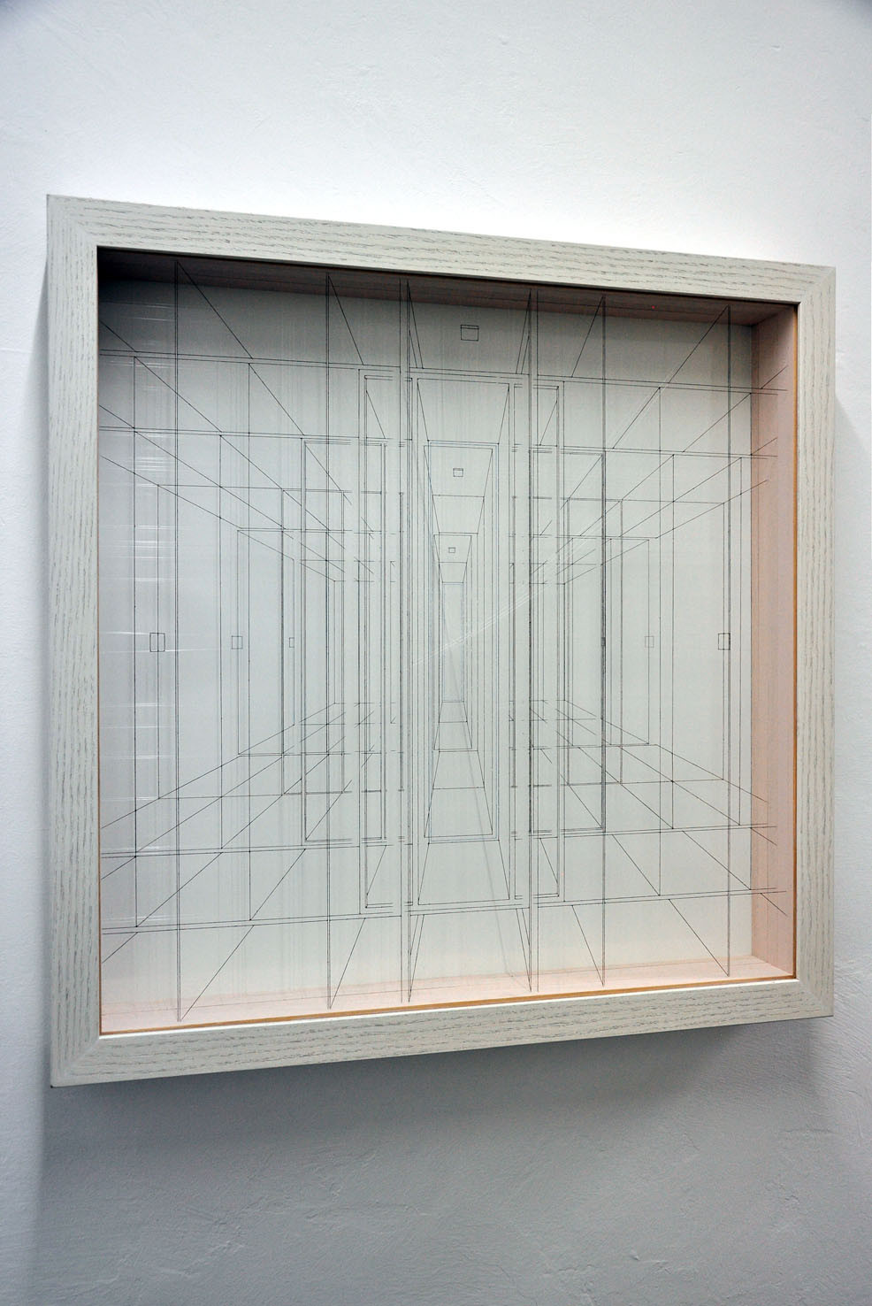 acrilico su filo in fluorocarbonio, cornice in legno, fondo in alluminio verniciato, plexiglas protettivo esterno