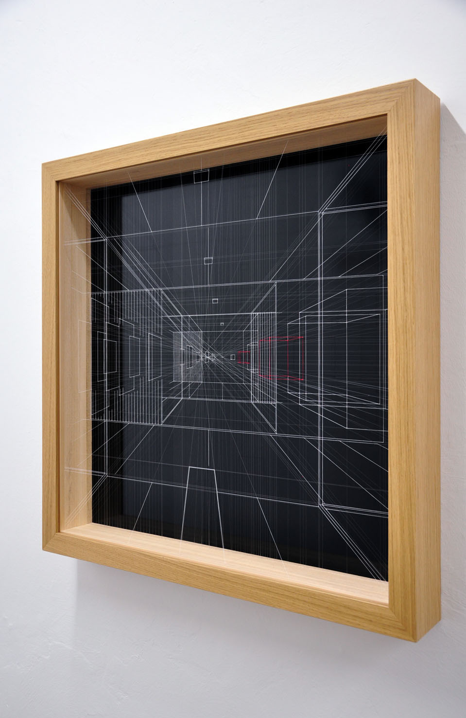 acrilico su filo in fluorocarbonio, cornice in legno, fondo in alluminio verniciato, plexiglas esterno protettivo