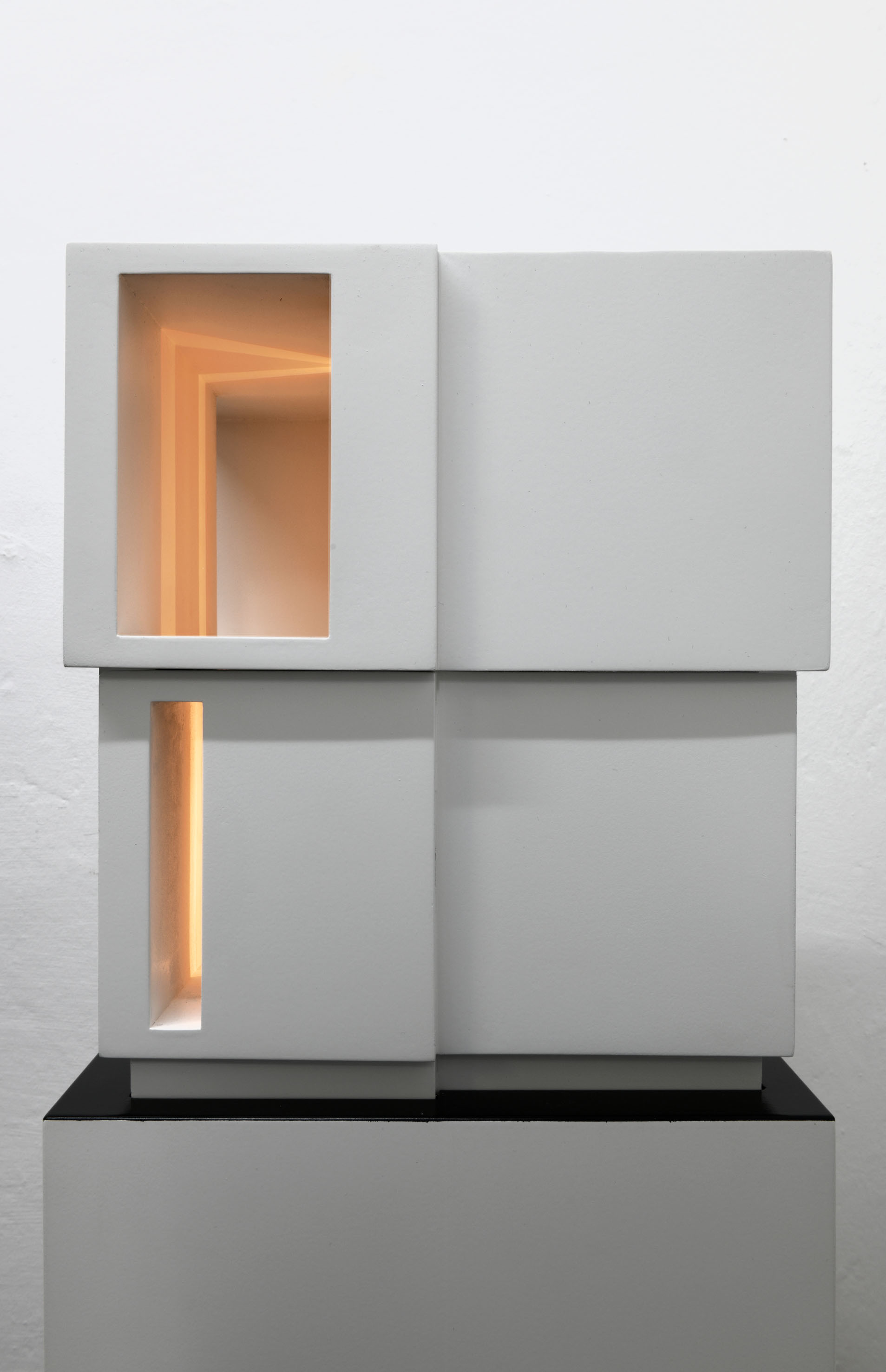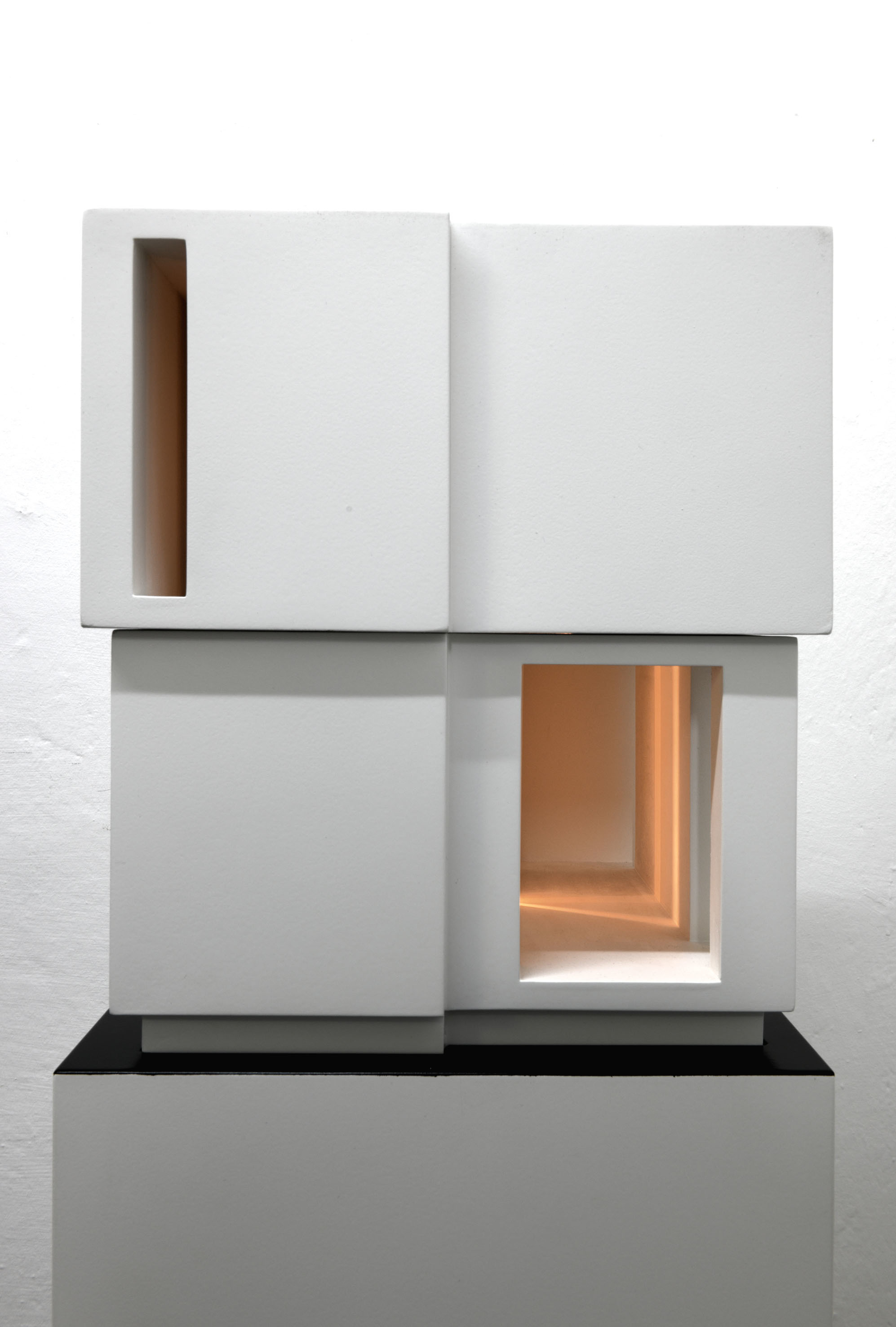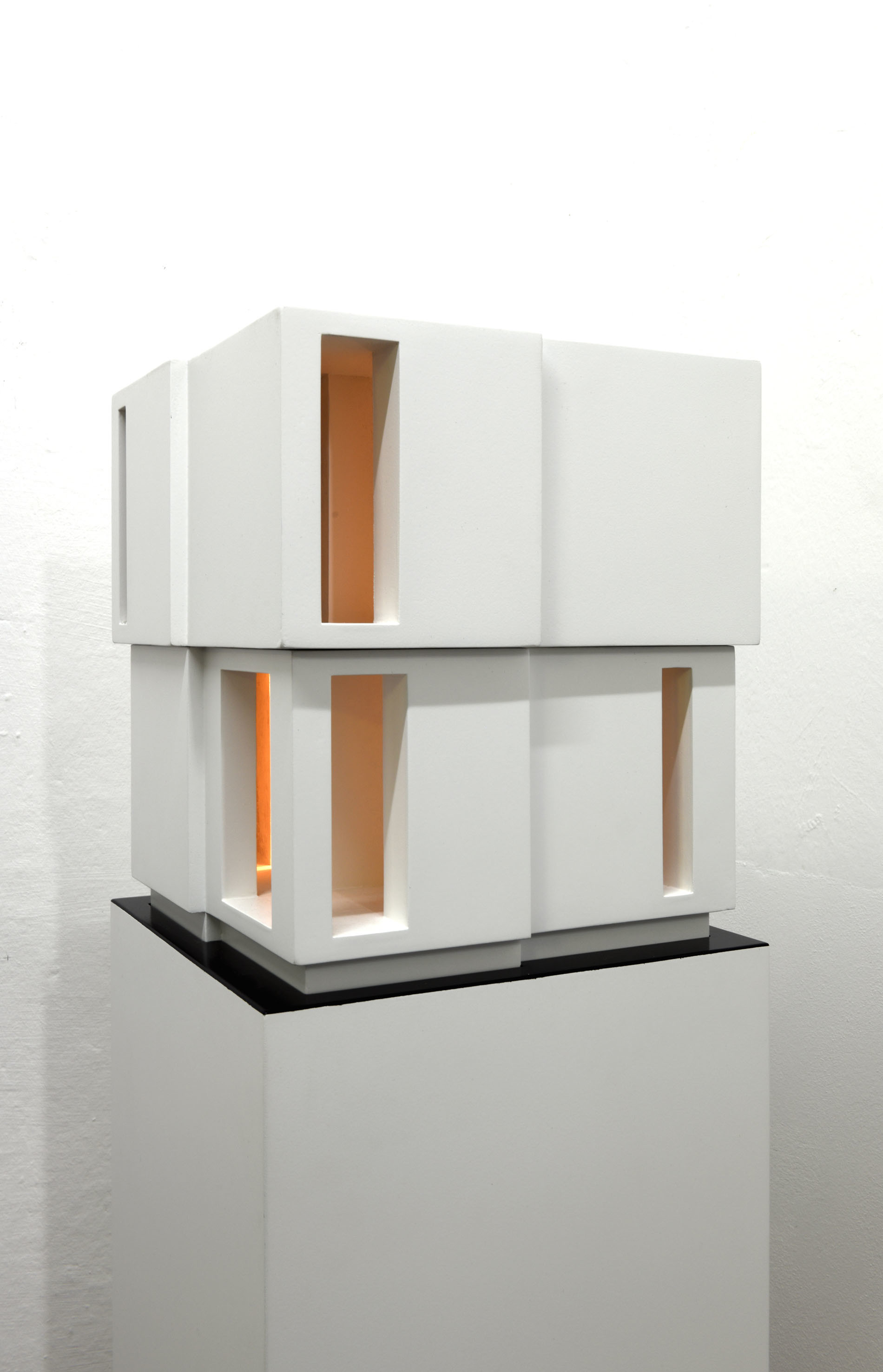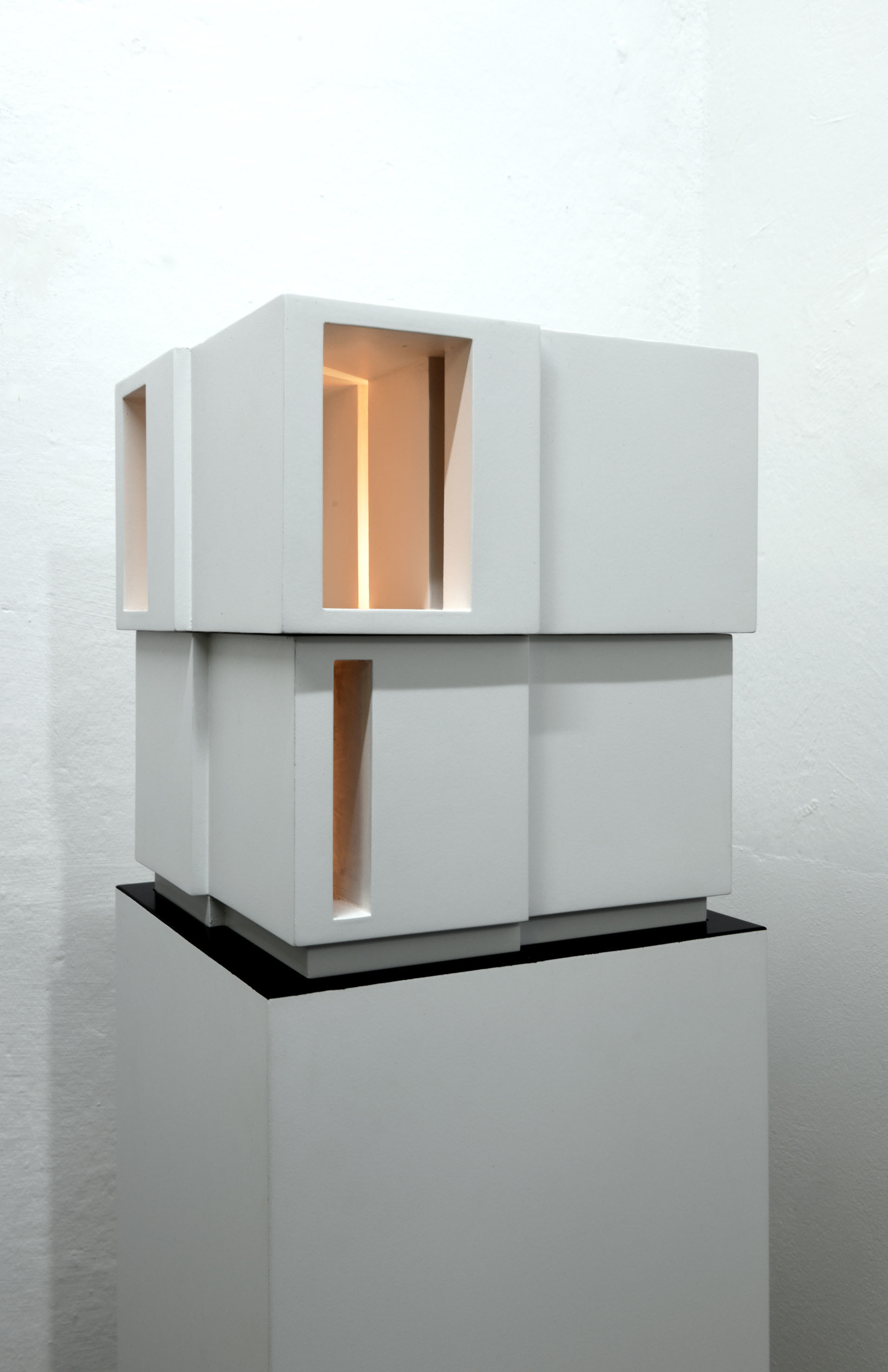 Cartoncino stuccato, trattato con resina e laccato. Legno laccato, circuito luminoso con temporizzatore per dissolvenze