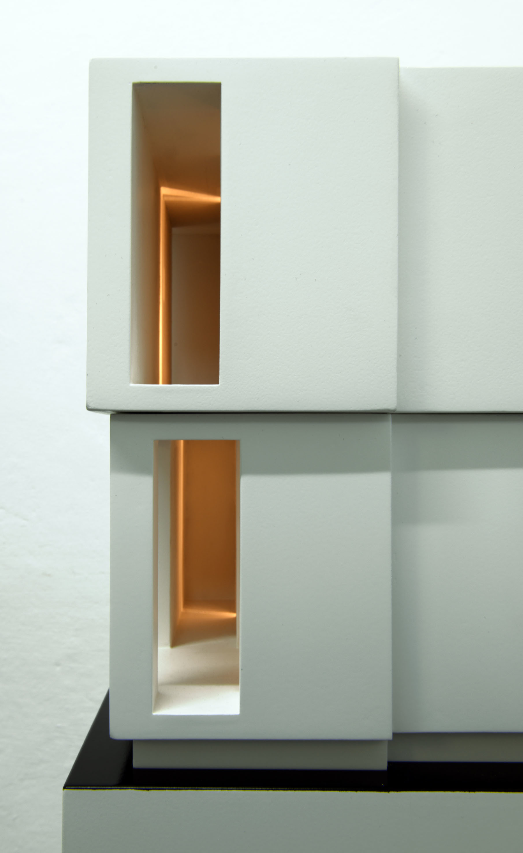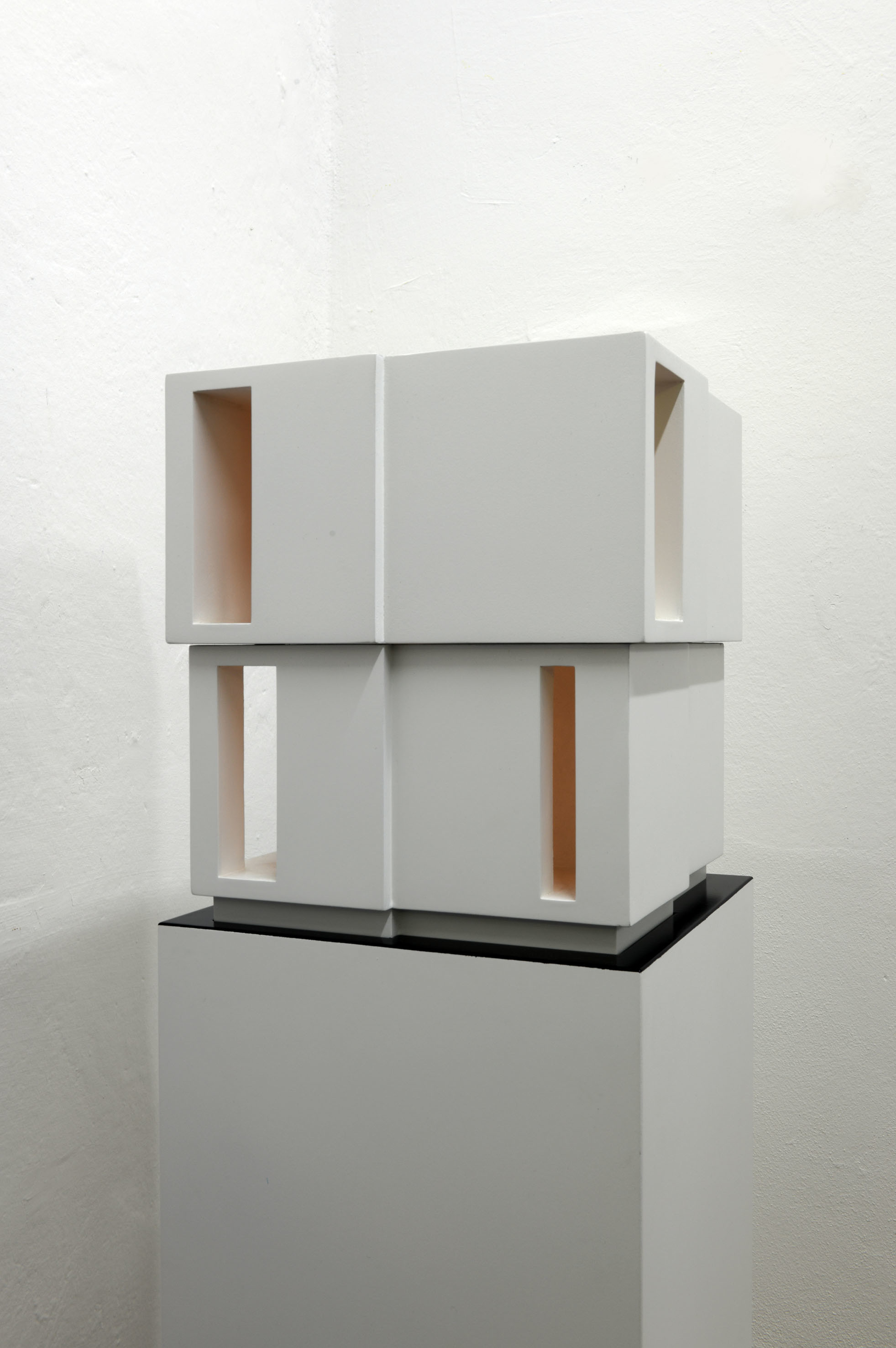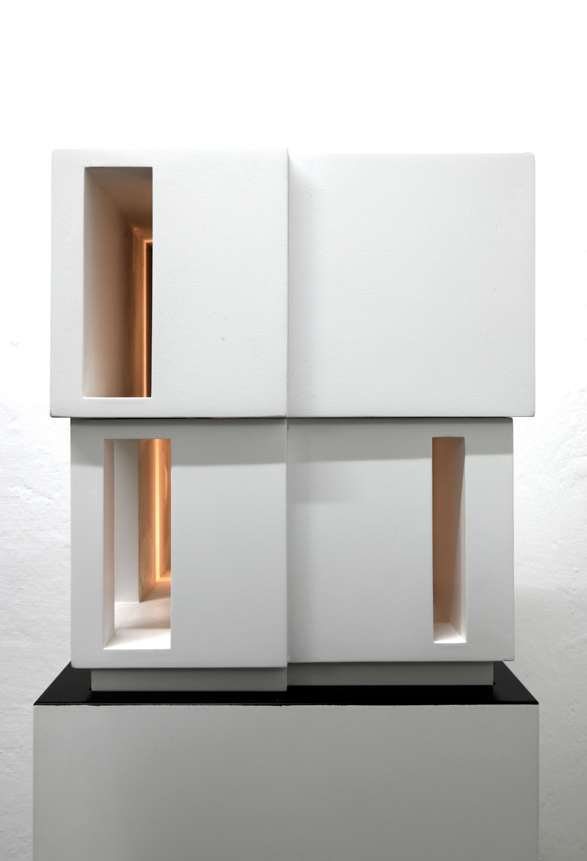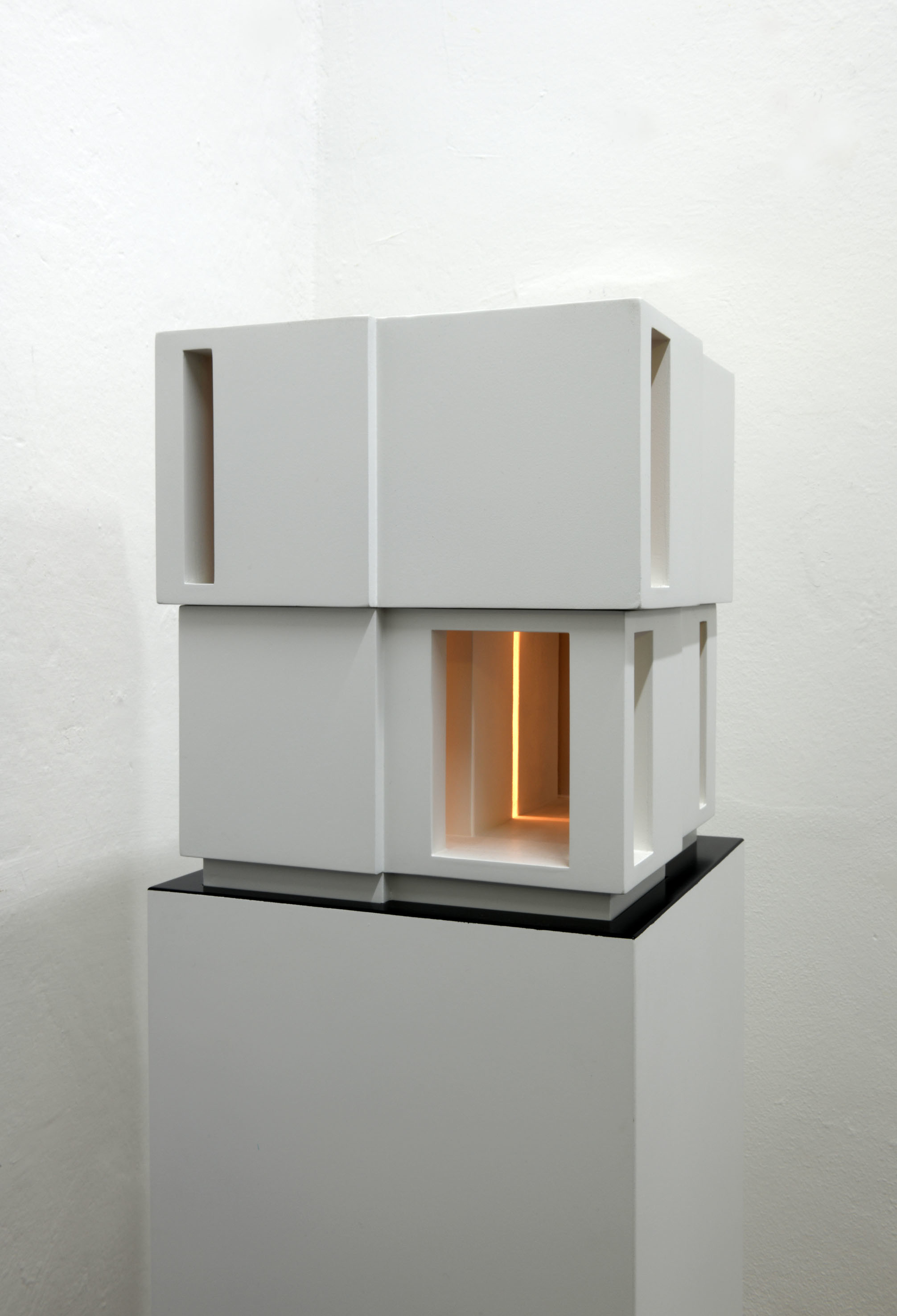 Cartoncino stuccato, trattato con resina e laccato. Legno laccato, circuito luminoso con temporizzatore per dissolvenze