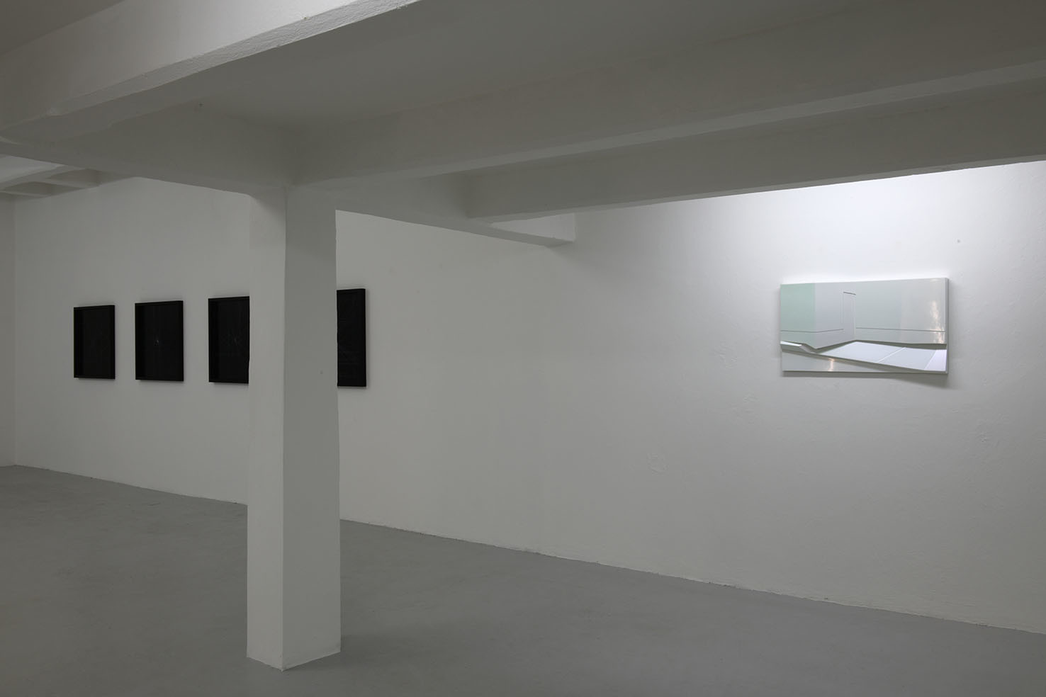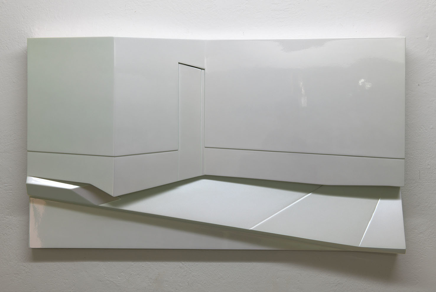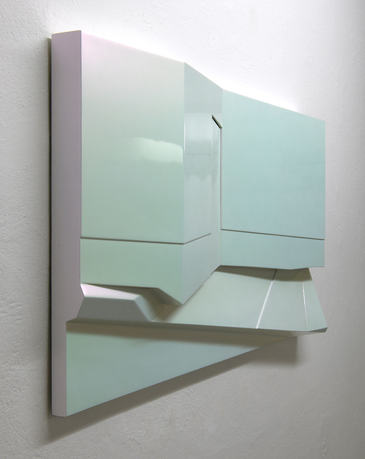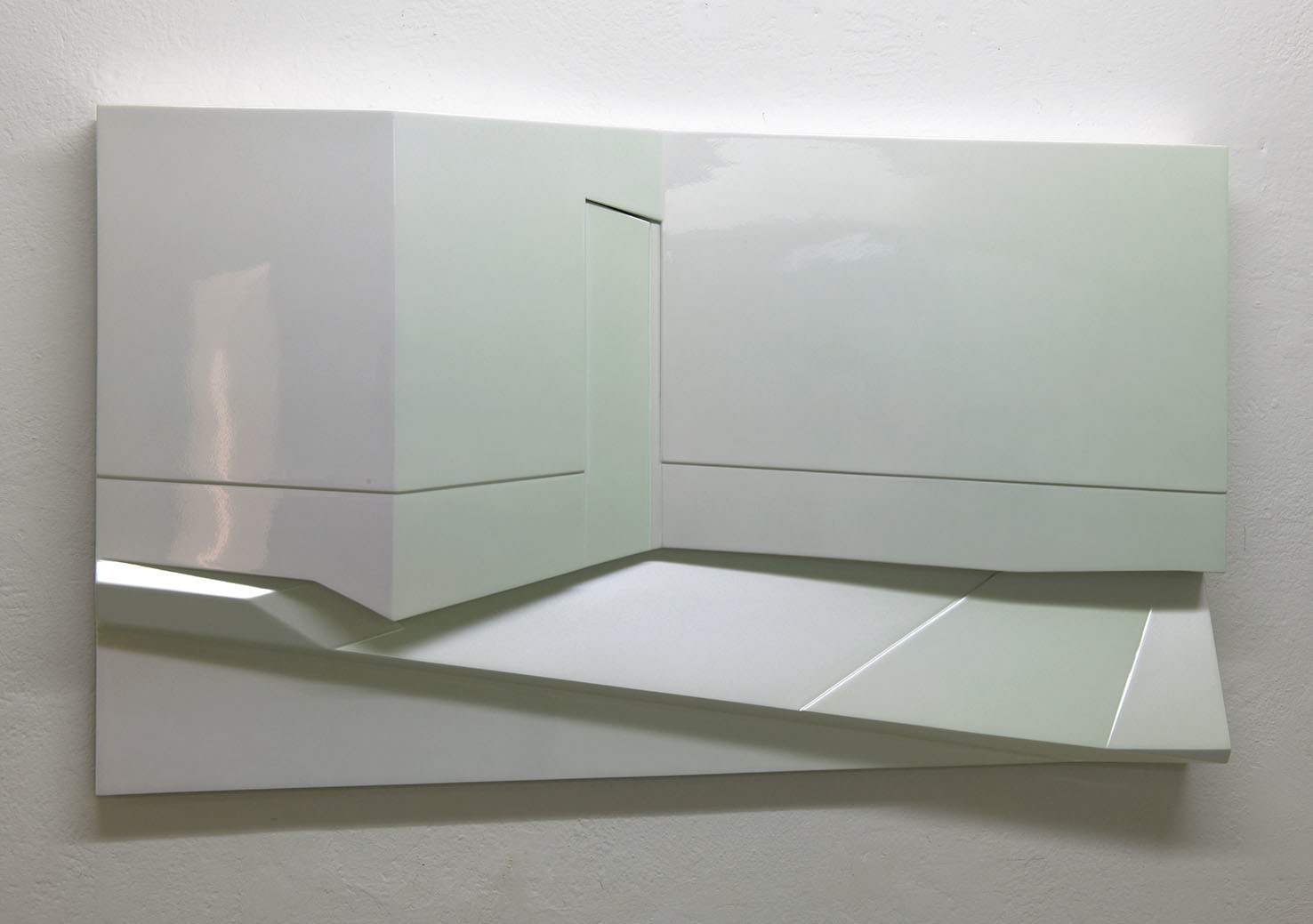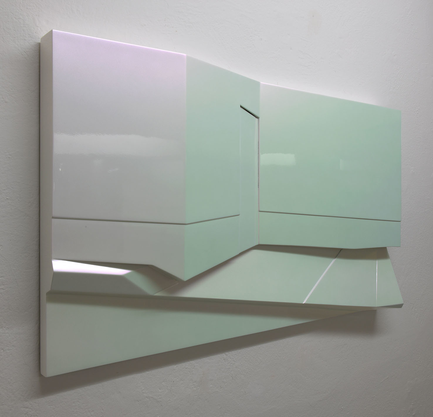 La rappresentazione di uno spazio esterno urbano, in cui vi è un muro, una porta, un marciapiede, si concretizza in un dipinto tridimensionale minimale fatto di linee, spigoli ed angoli. Sidewalk è realizzato nel suo disegno essenziale e la sua superficie, trattata con una vernice speciale iridescente metallica, cambia tonalità e lucentezza a seconda di come la si osservi.