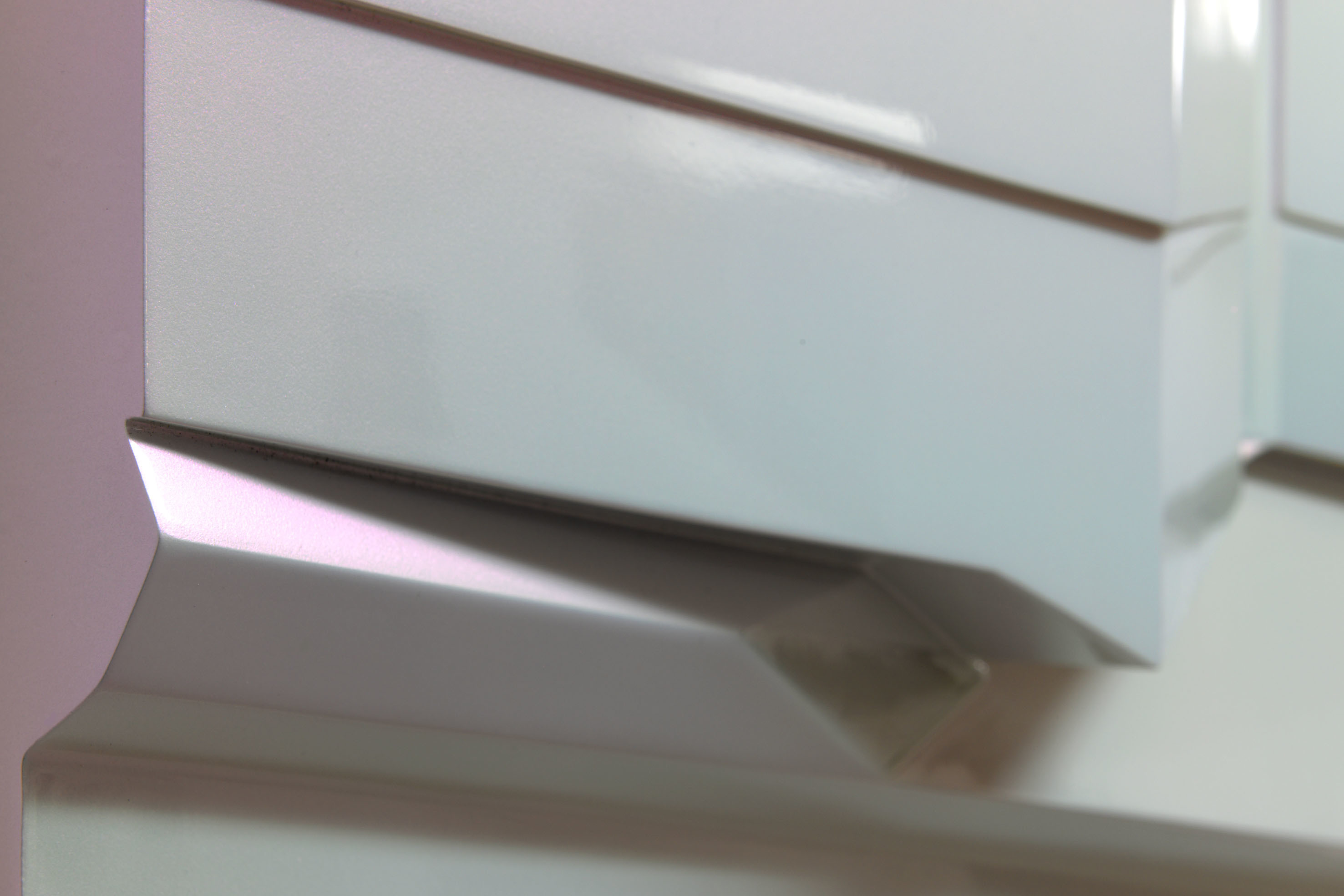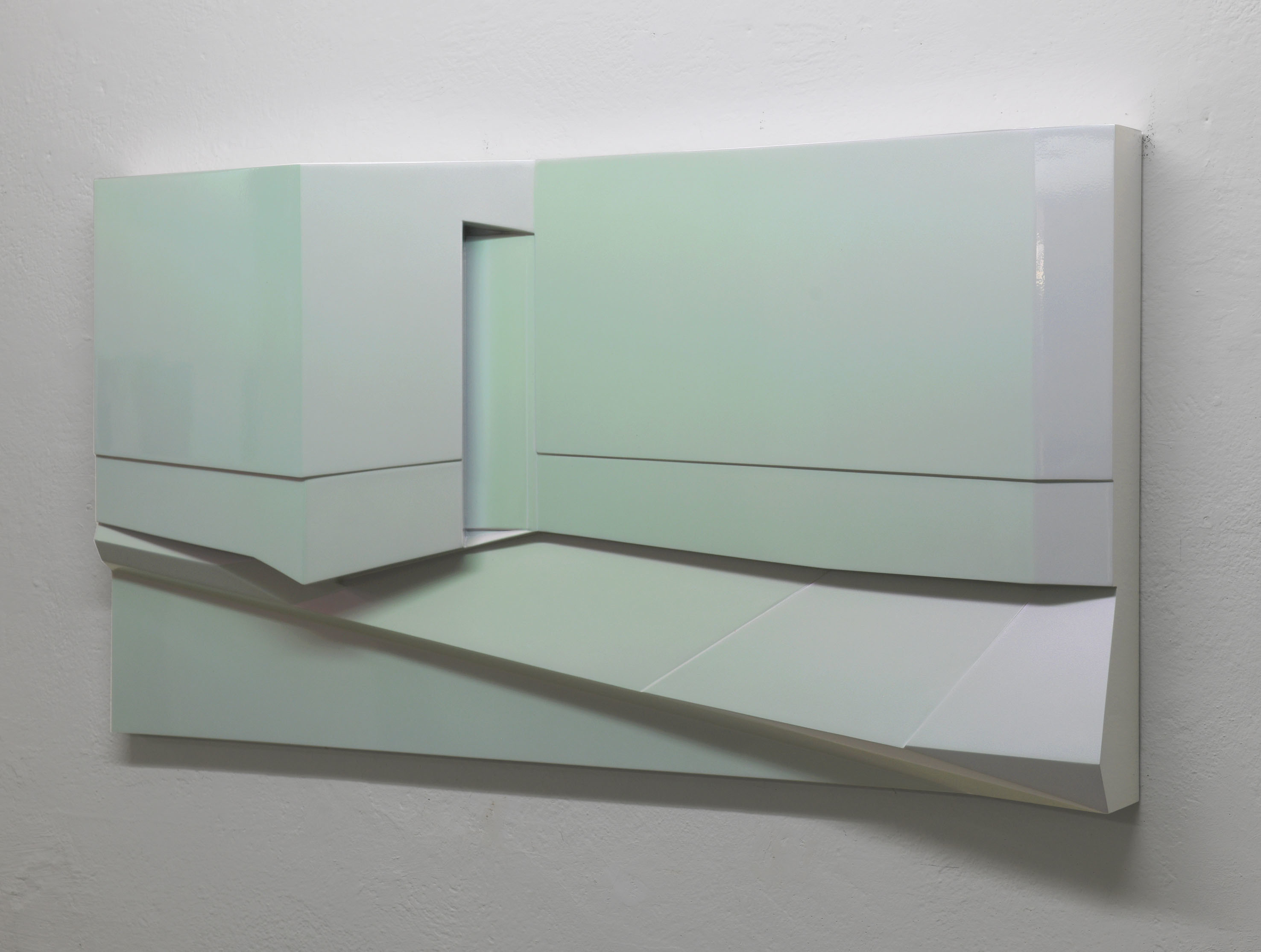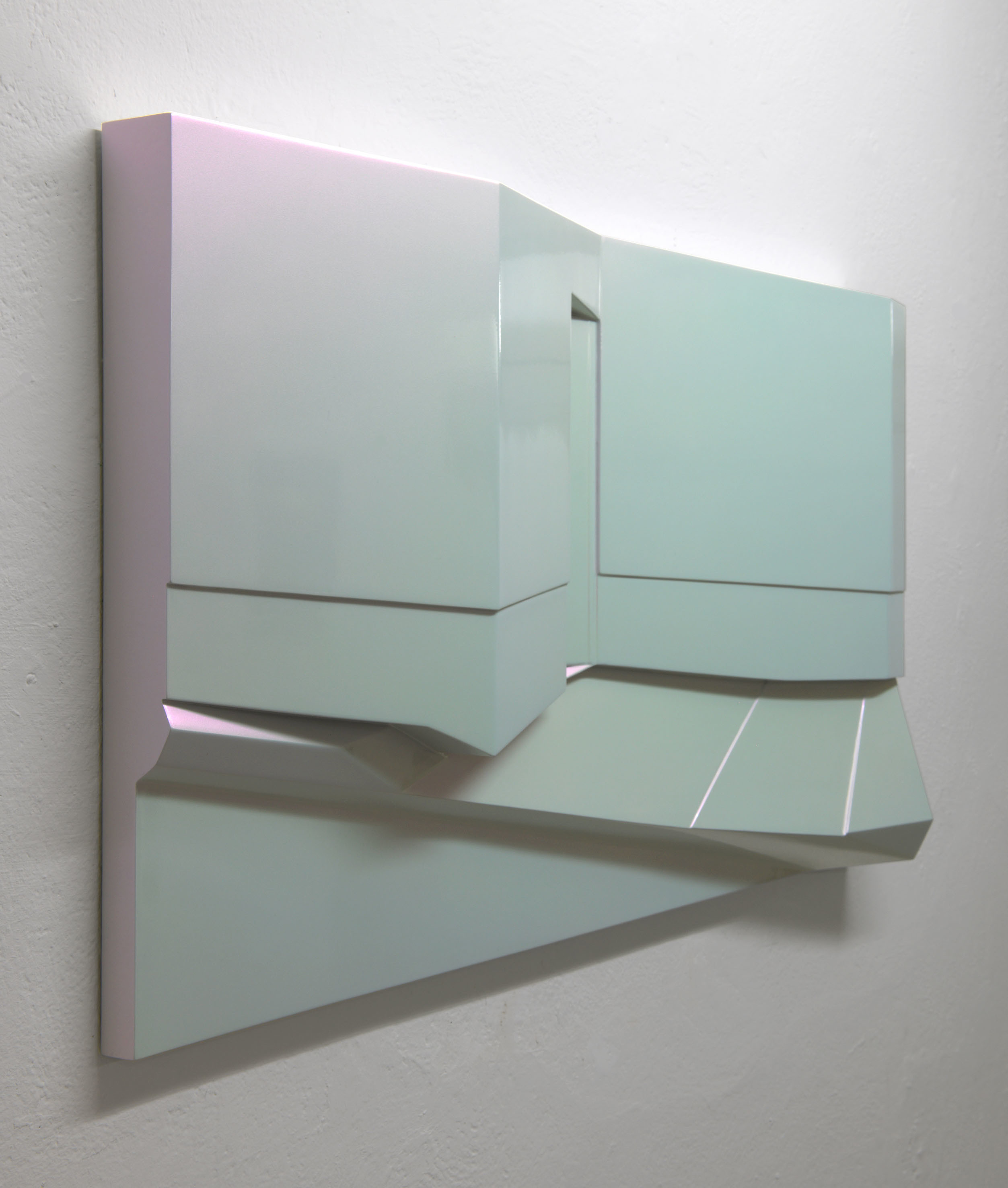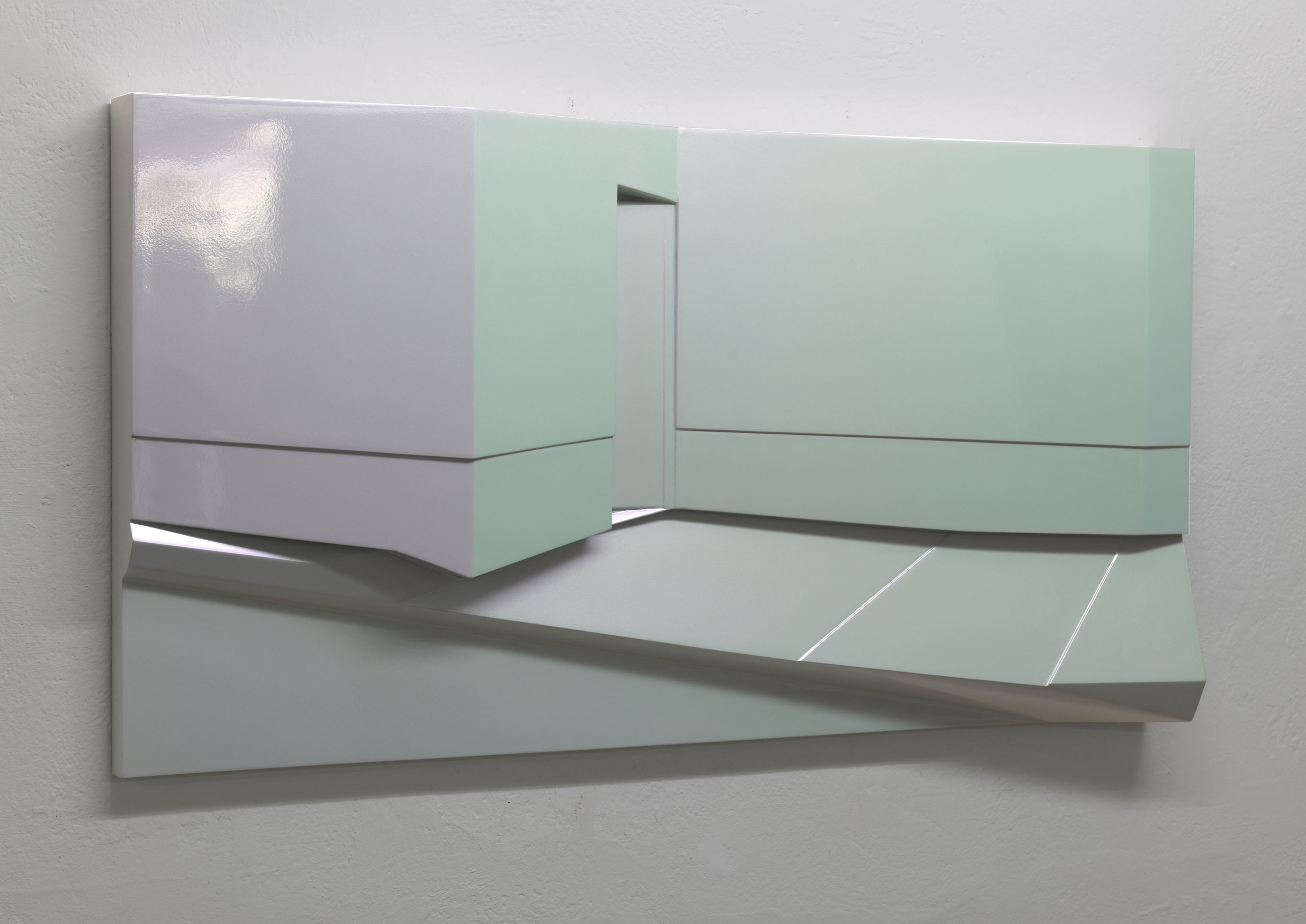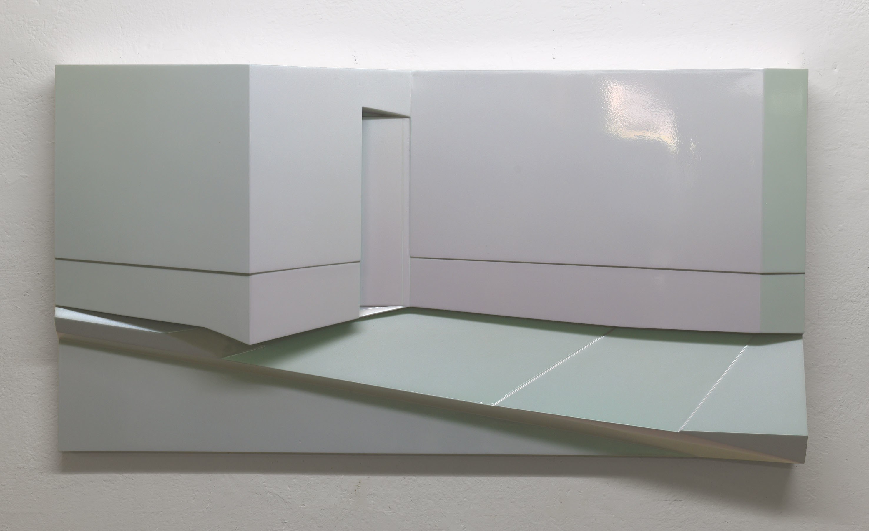 La rappresentazione di uno spazio esterno urbano, in cui vi è un muro, una porta, un marciapiede, si concretizza in un dipinto tridimensionale minimale fatto di linee, spigoli ed angoli. Sidewalk è realizzato nel suo disegno essenziale e la sua superficie, trattata con una vernice speciale iridescente metallica, cambia tonalità e lucentezza a seconda di come la si osservi.