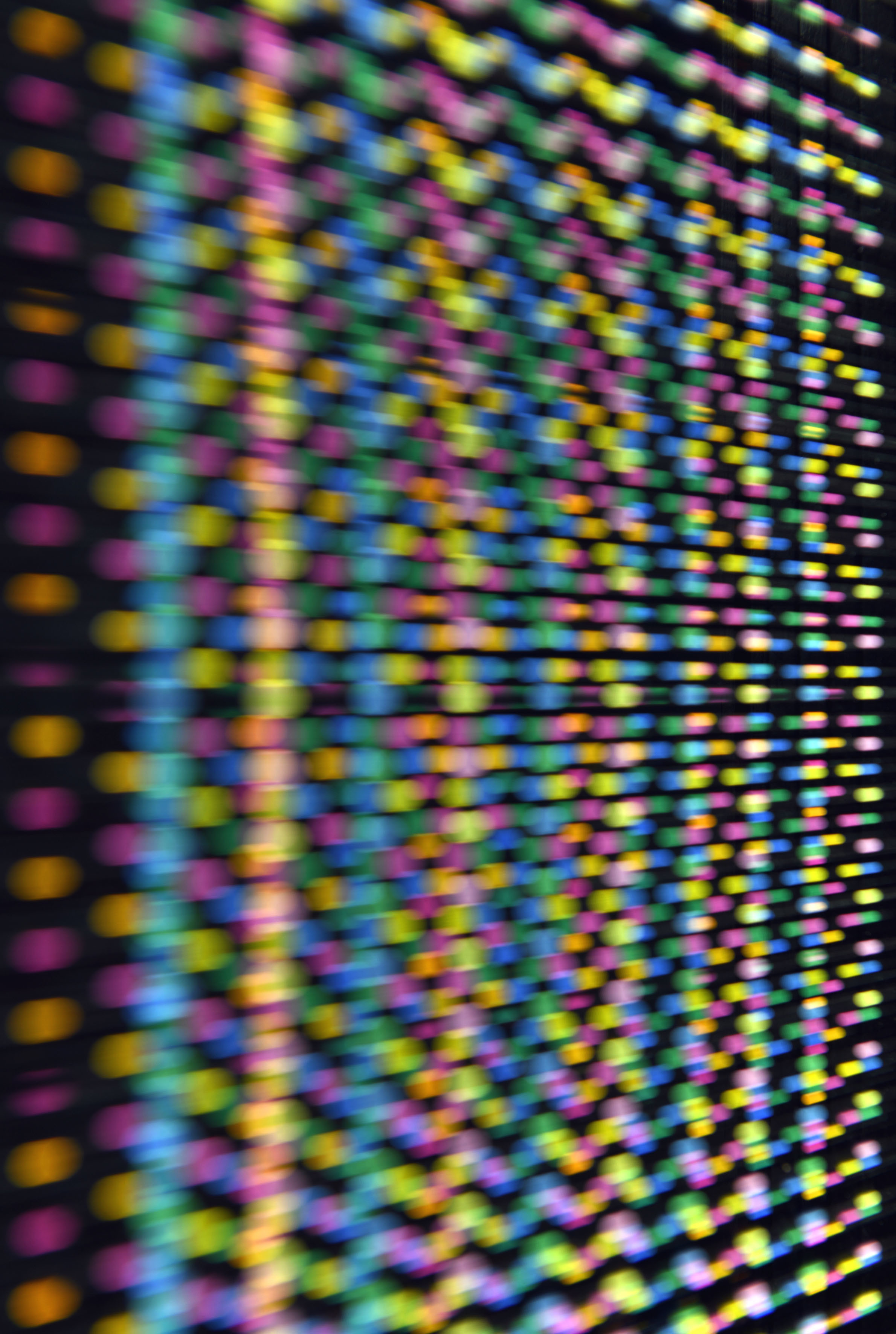 Una piccola porzione di spazio è costituita e suddivisa ritmicamente da piccole e minuscole particelle di colore che si alternano in sottili differenti tonalità, come strette in continue relazioni di codici segreti.
