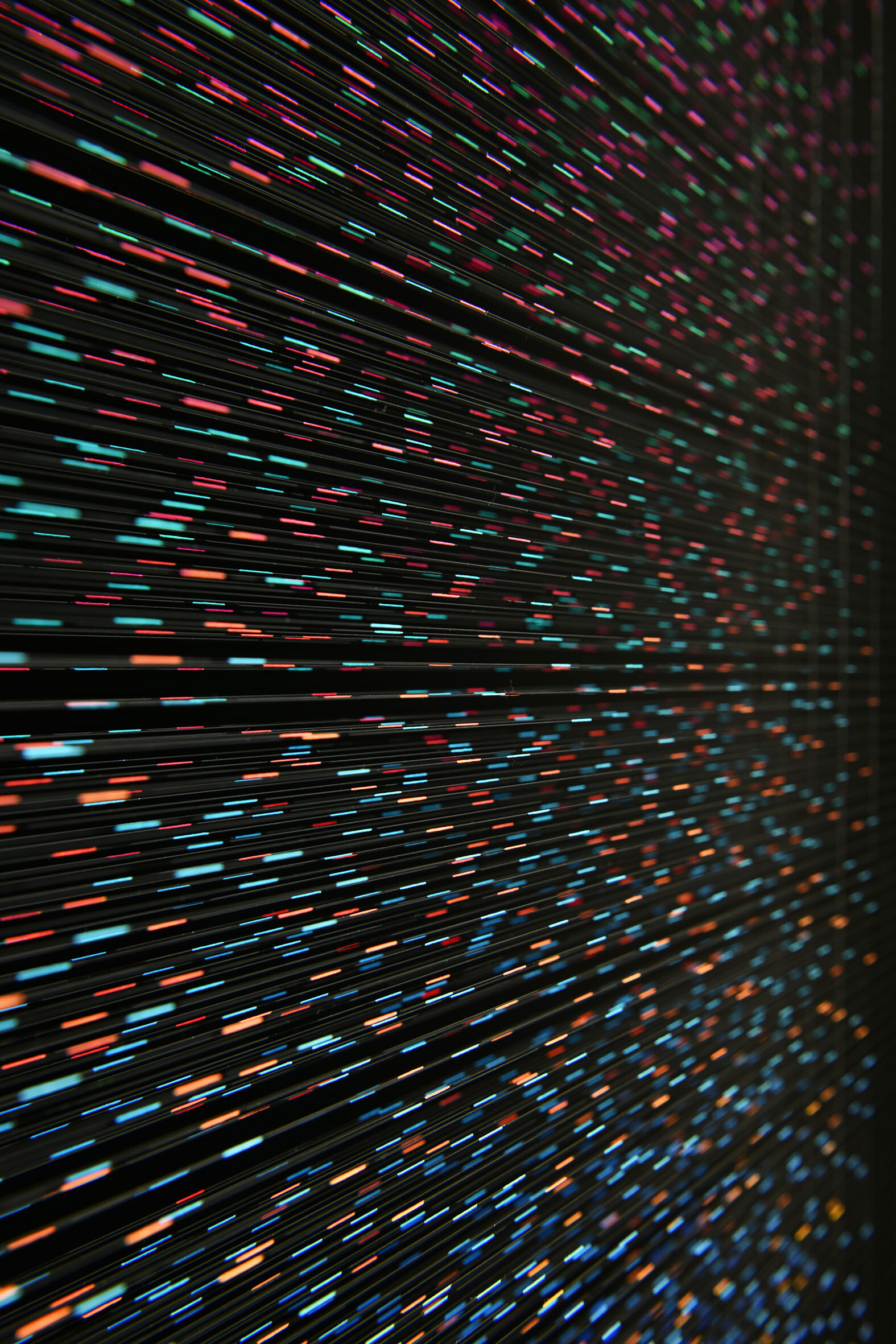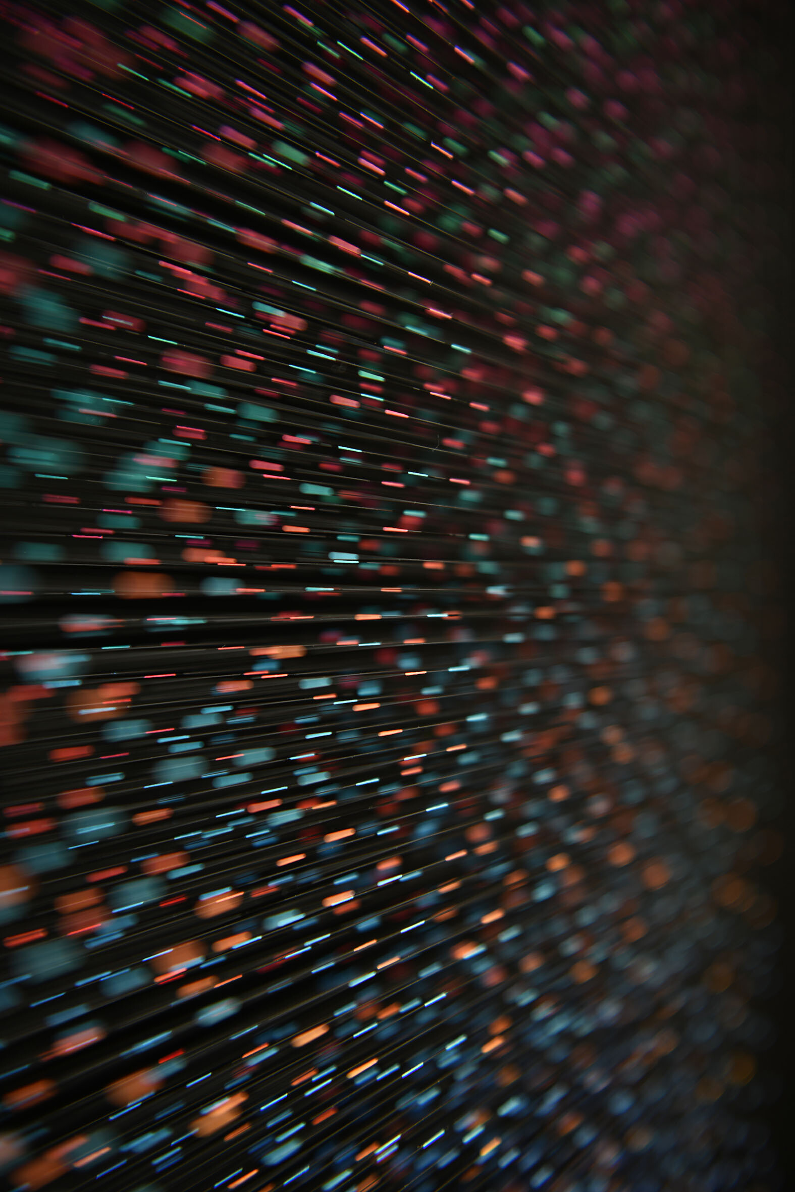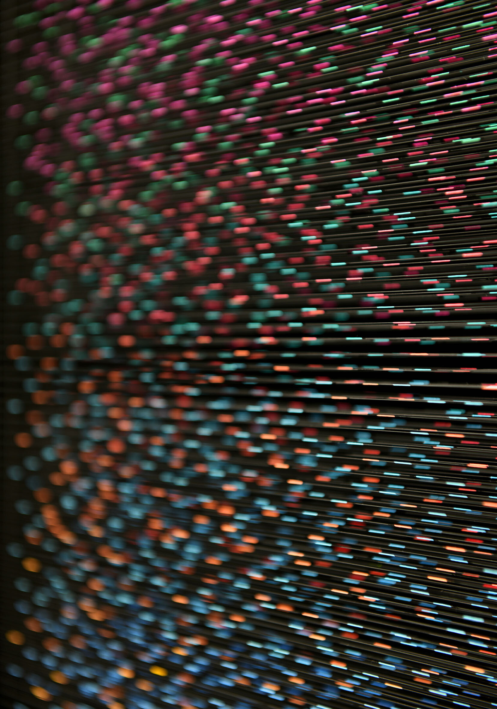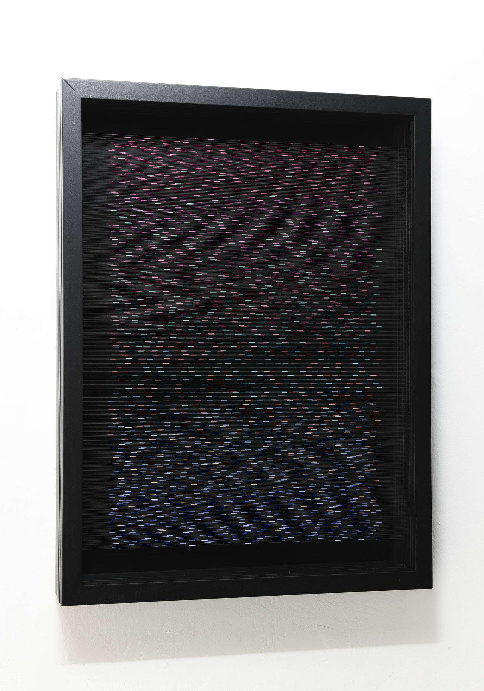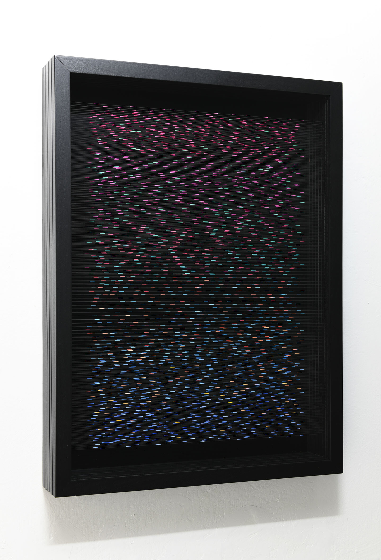 Smalto e acrilico su filo in fluorocarbonio, cornice in legno, fondo in alluminio verniciato, vetro museale protettivo esterno