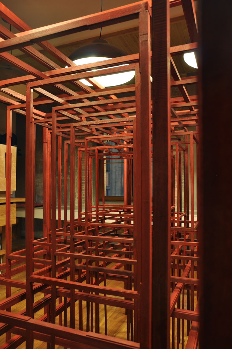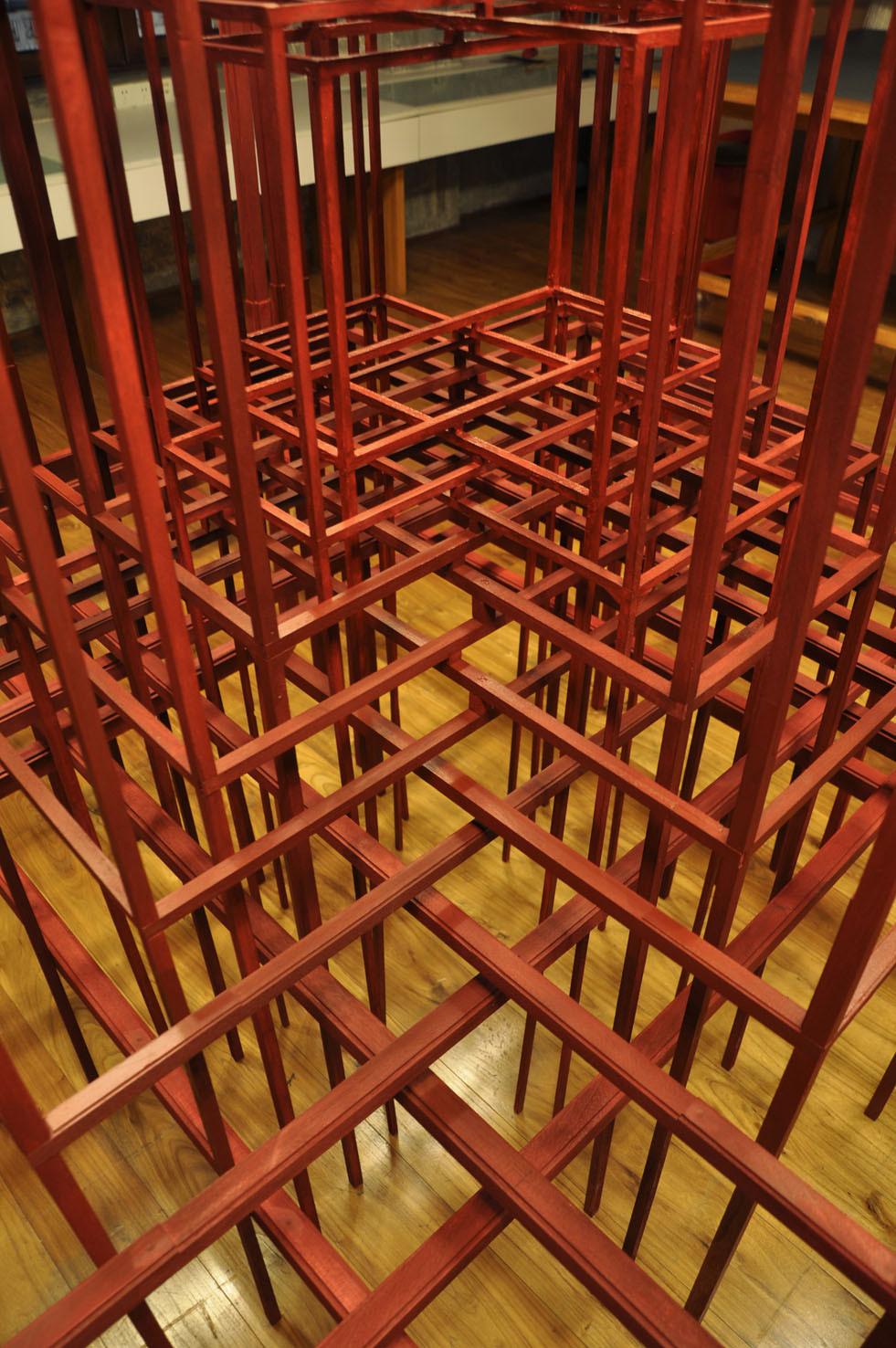 Created during a six-month residence in Shanghai, Protection reflects the concepts of complexity, order, chaos, emptiness, etc. by relating elements of western and eastern culture. It is composed of 16 "tables" contained in each other, having the same shape but different sizes. Taken together, they form, with rhythm and repetition, a special three-dimensional mantra.