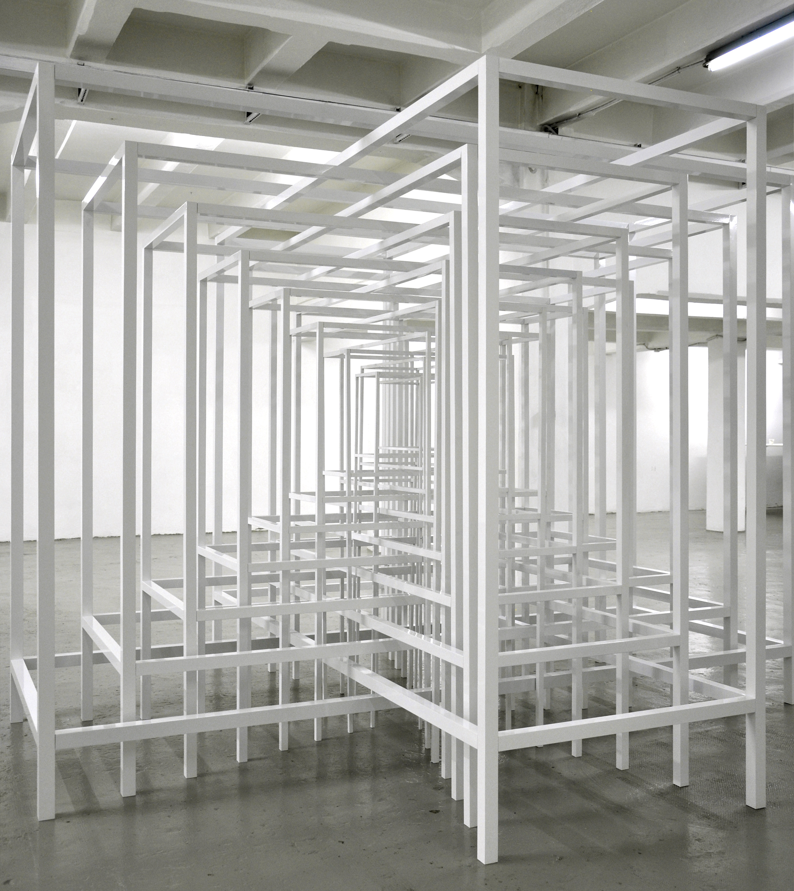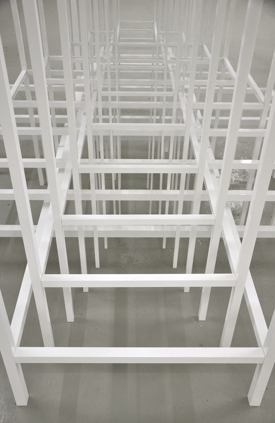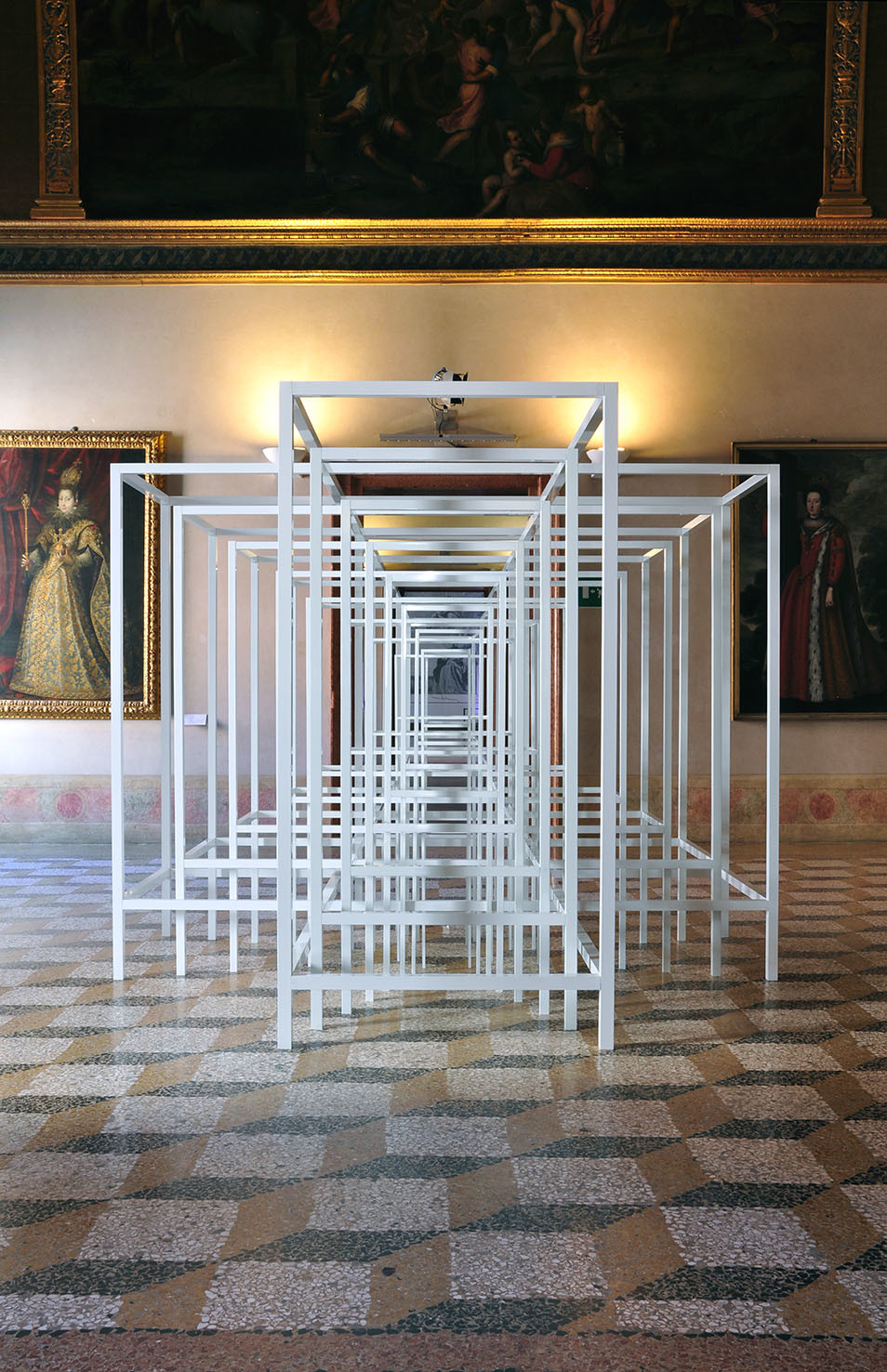 Conceived and designed during a six-month residence in Shanghai, Protection reflects the concepts of complexity, order, chaos, emptiness, etc. by relating elements of western and eastern culture. It is composed of 16 "tables" contained in each other, having the same shape but different sizes. Taken together, they form, with rhythm and repetition, a special three-dimensional mantra.