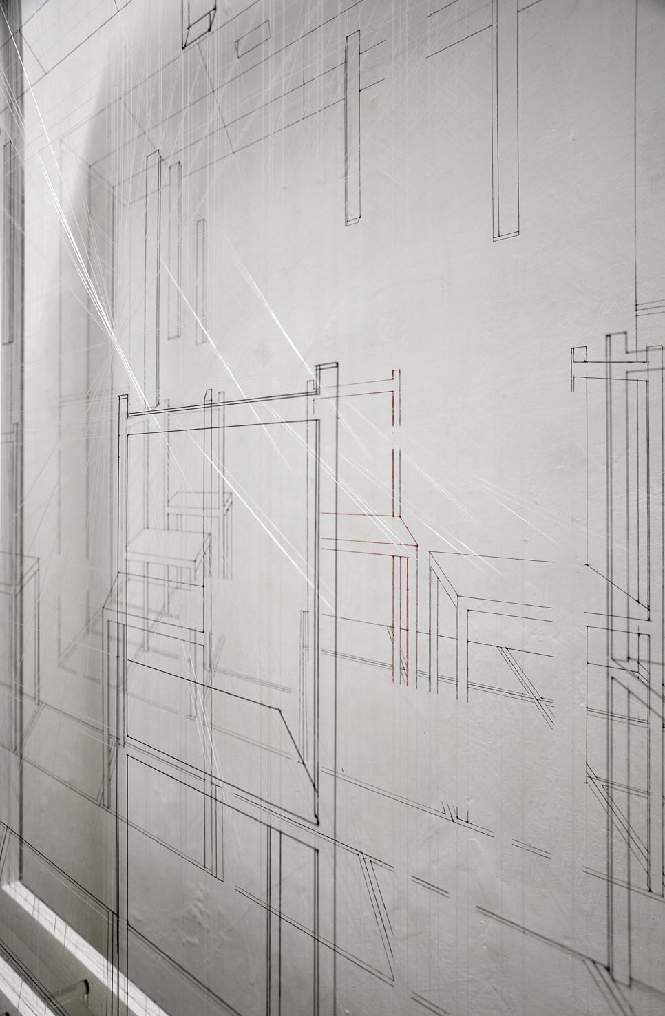 Acrylic on fluorocarbon thread, wood and aluminum frame, elements in plexiglas