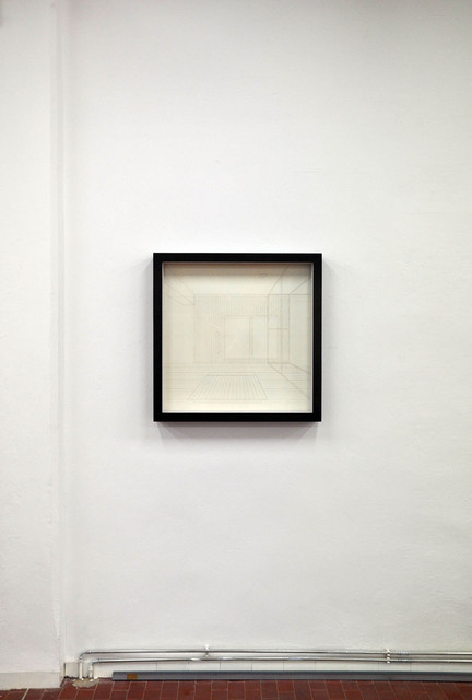 acrylic on fluorocarbon line, wood frame, metal background, plexiglas