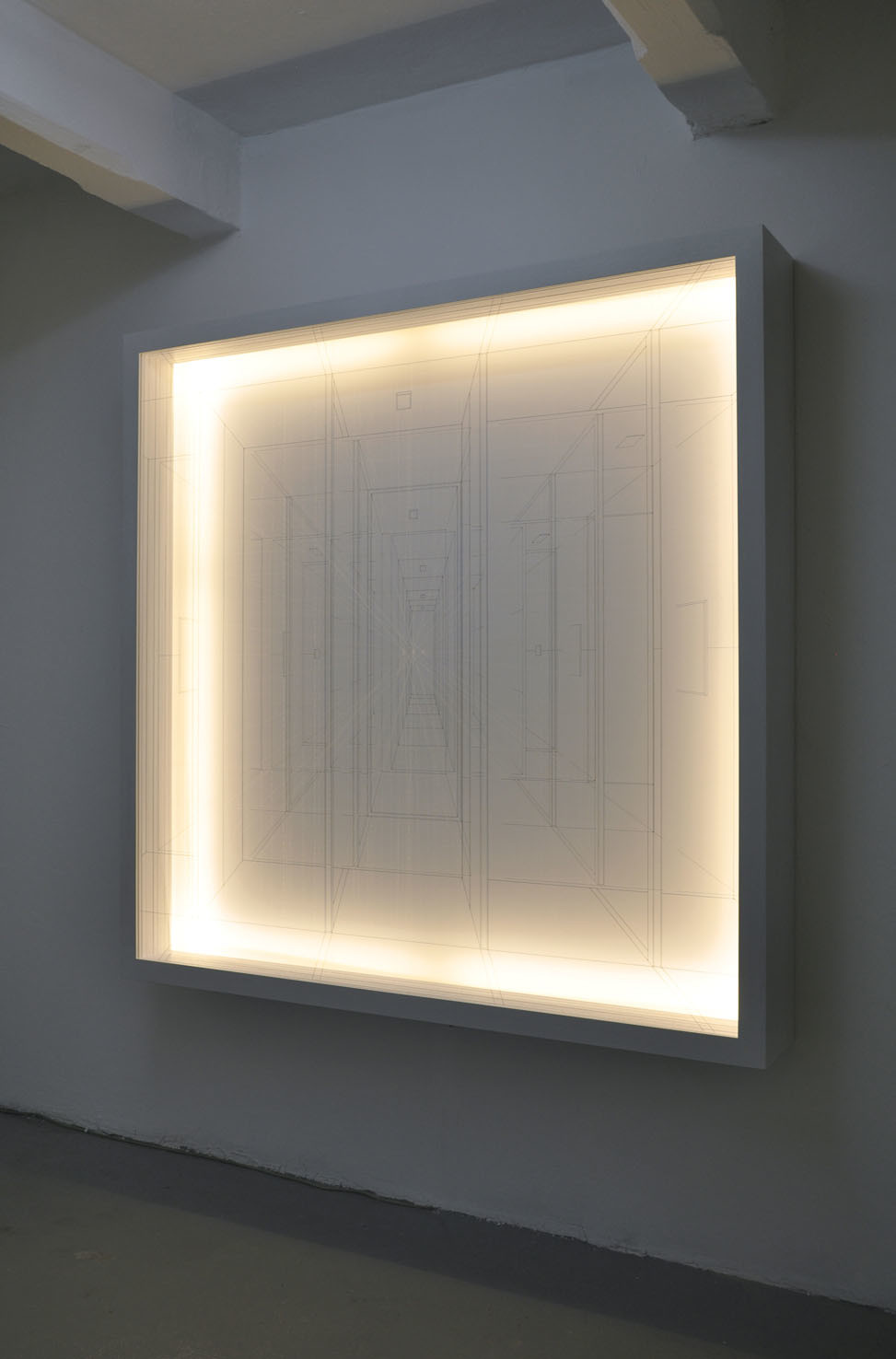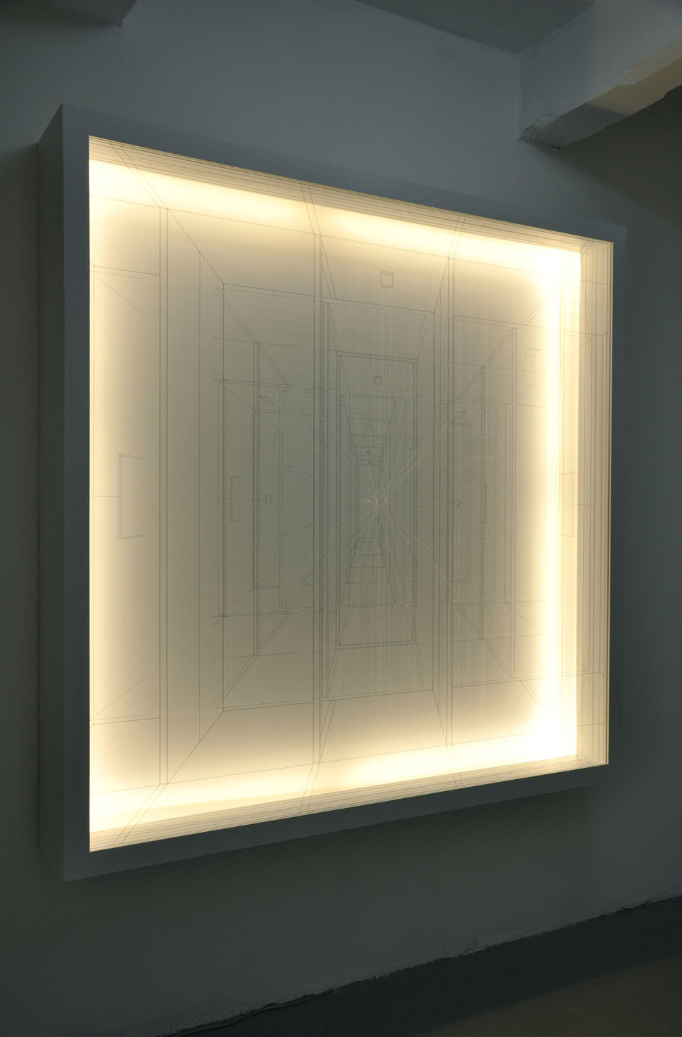 The art-work looks like a vision, a fluctuating, strongly, evanescent and impalpable spectrum. Here is our Ego, our identity. There, there is the Elsewhere, the unfathomable. A window or a door opens, a gap or a crack opens on something new that we don't know what exactly is: a chasm, an abyss. But yet, this perspective that leads to an unattainable fund, seems to refer to ourselves. The awareness of what we are then staggers. Light clarifies an area of our mind or our imagination that we would never have expected. Light and darkness. In the middle there is the Limen, or liminal space, as a waiting and meditation line of demarcation, an oscillation between two extremes. It can lead us to new knowledge.