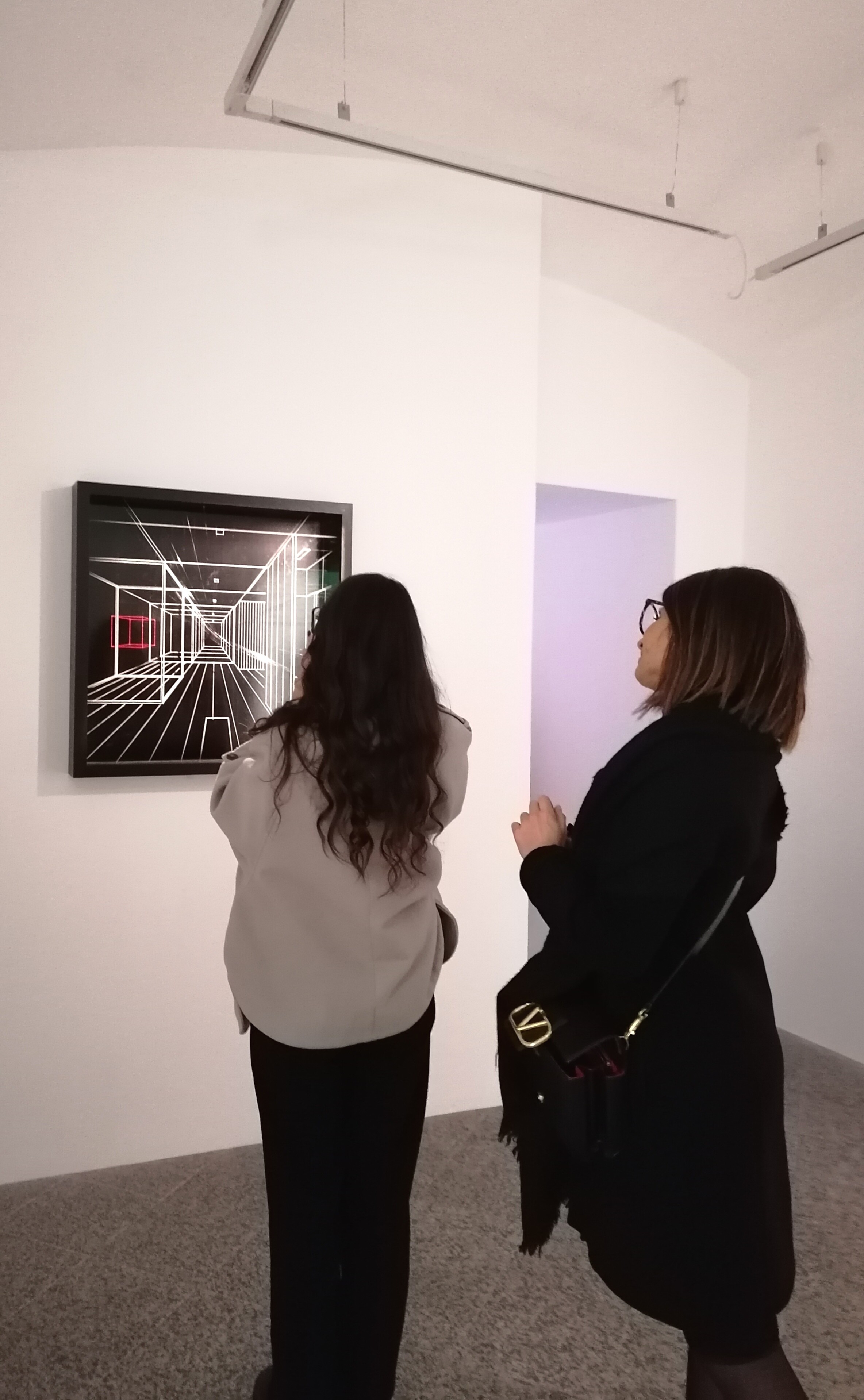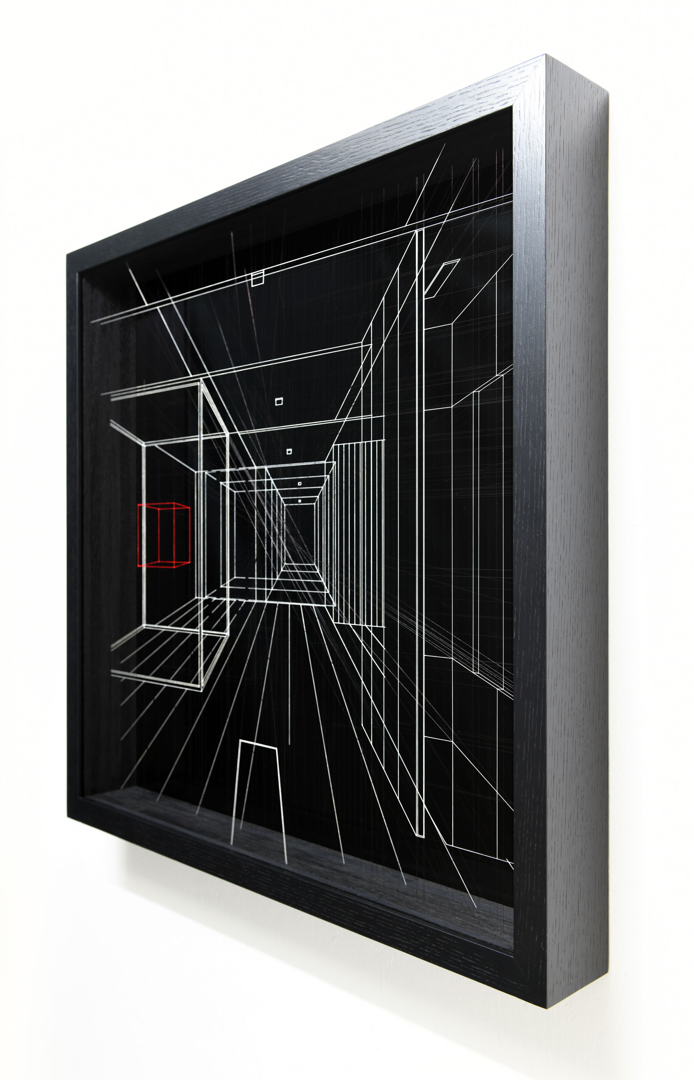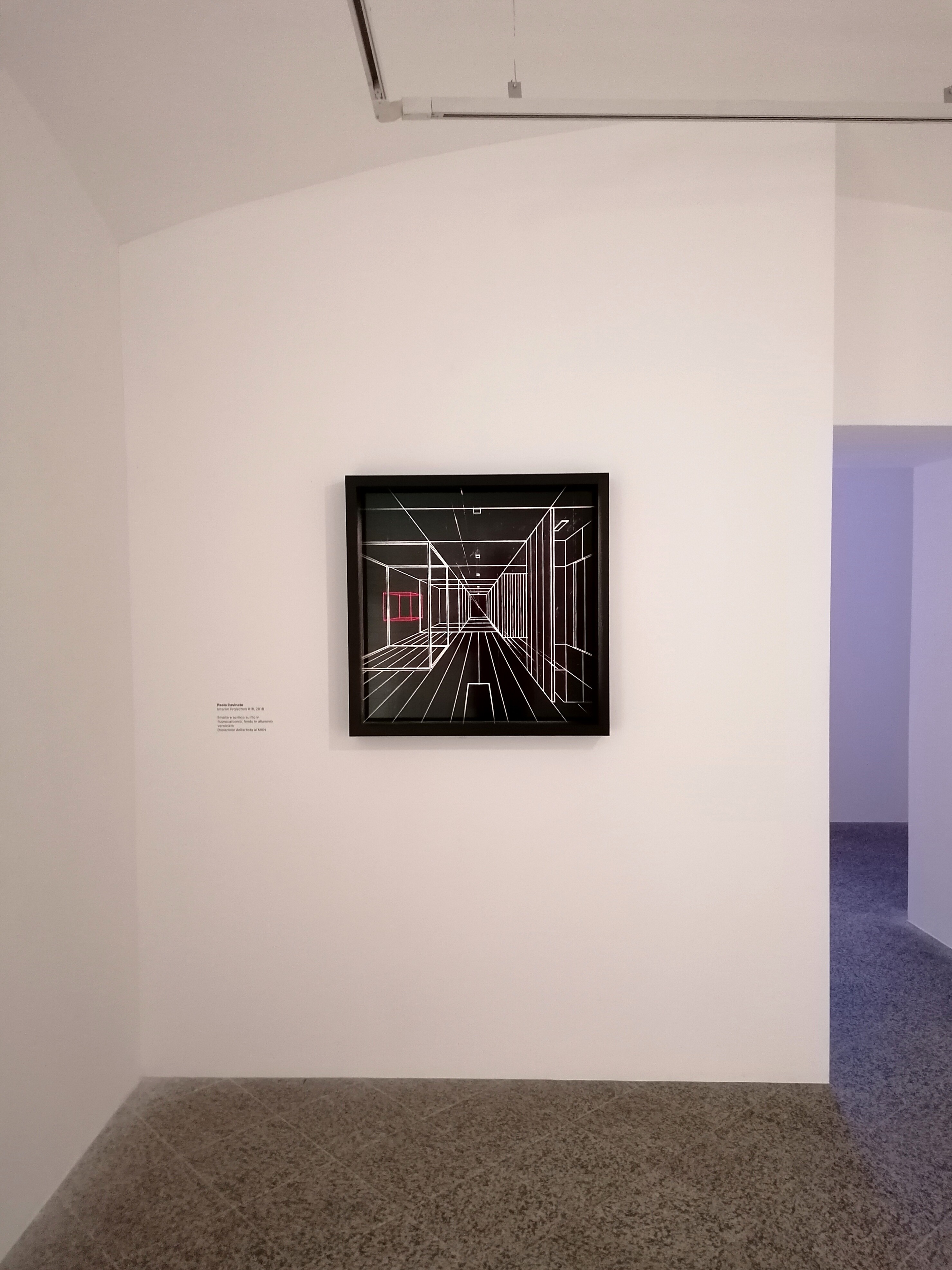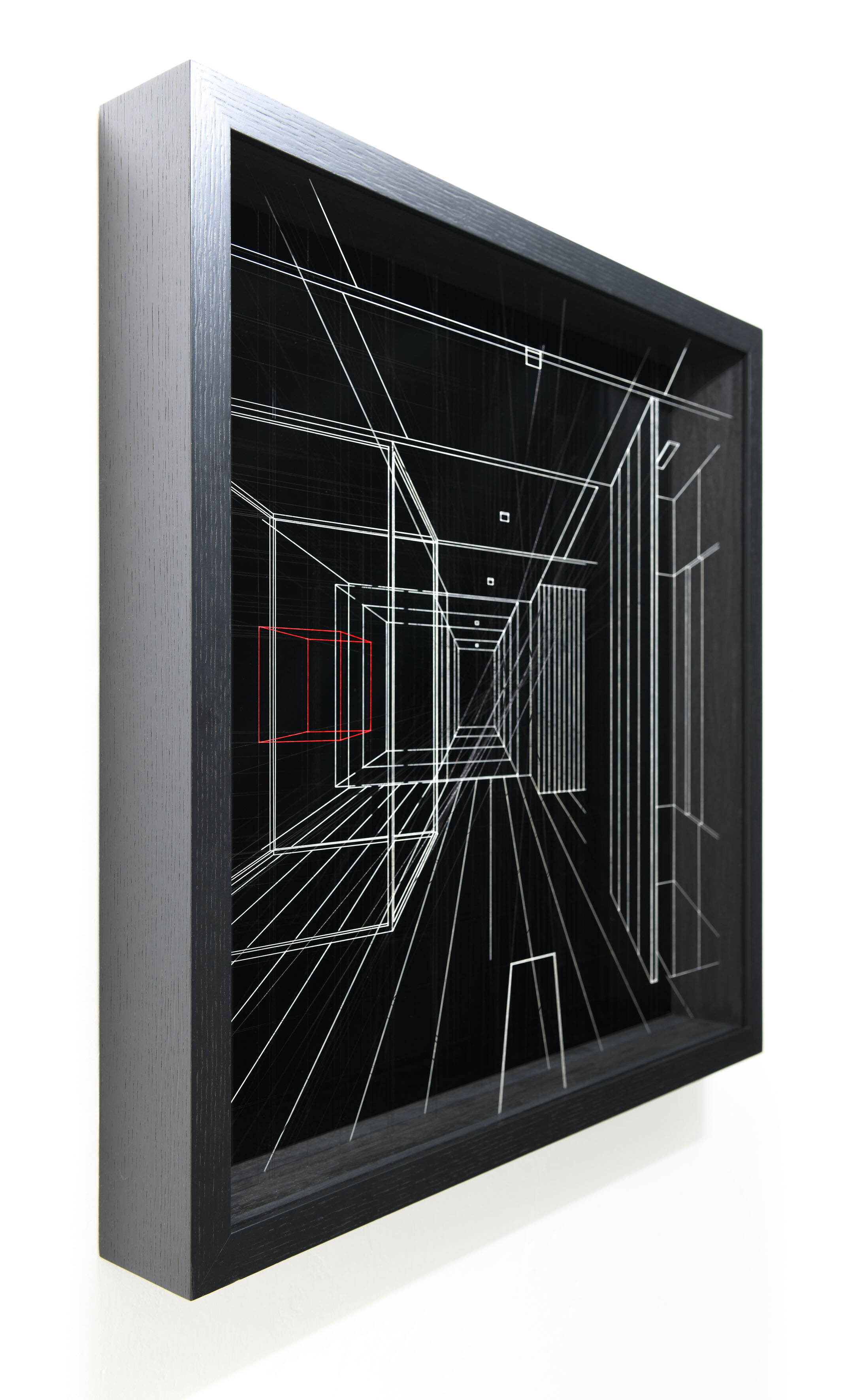 Enamel and acrylic on fluorocarbon thread, internal frames and frame in lacquered wood, painted aluminum background, Museum Glass